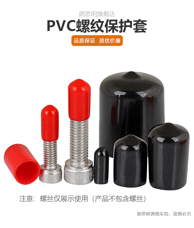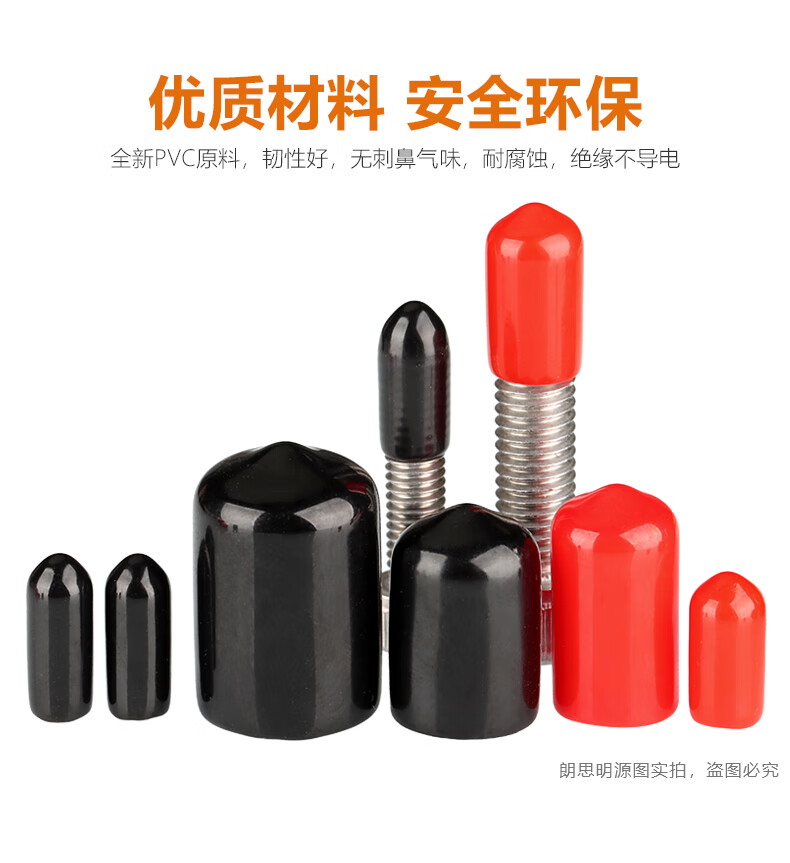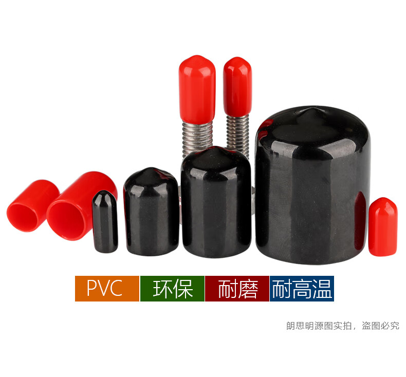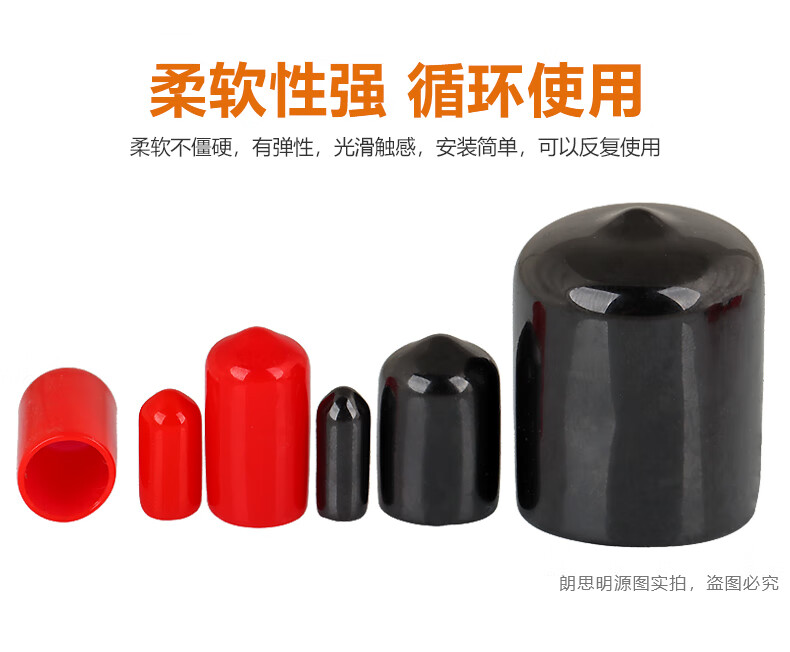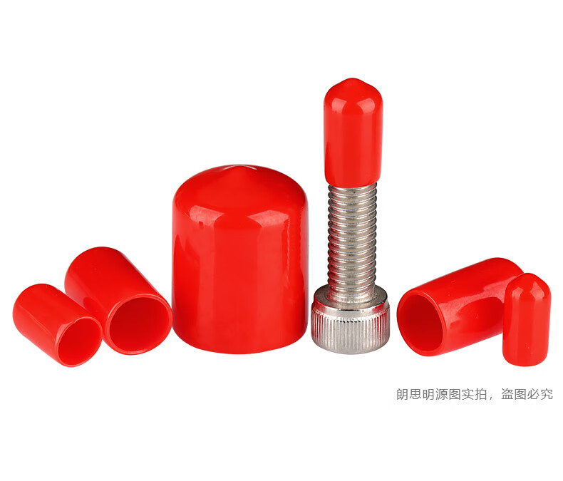 Langsiming soft rubber protective cap external thread screw protective sleeve screw rod round PVC cap plastic pipe casing cap plug inner diameter 9.5mm (100 pieces) red