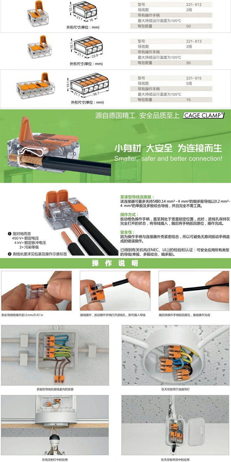 WAGO terminal block 221 415 wire parallel branch connector connector row 25 SF