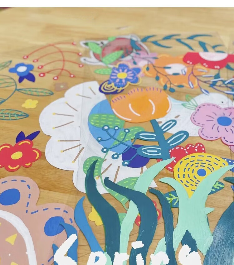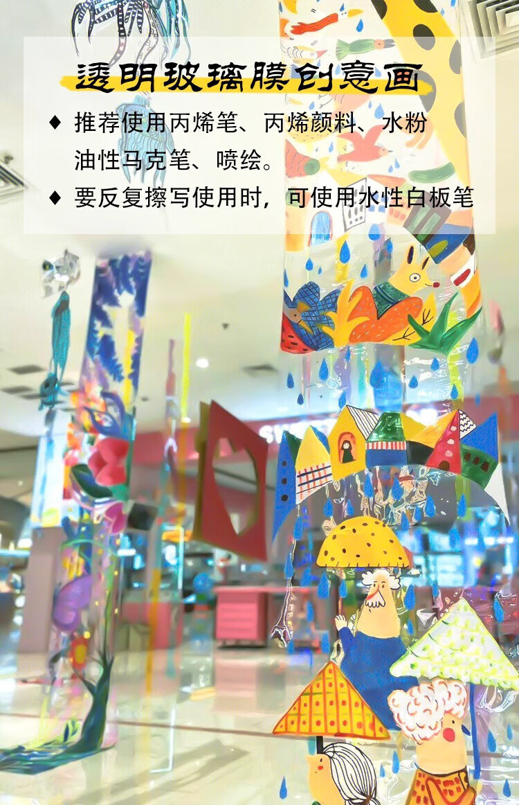 Yumi children's painting transparent cellophane kindergarten canvas painting transparent film graffiti soft film glass film handmade mural 1 thickened (thickness 4mil) 30x100cm