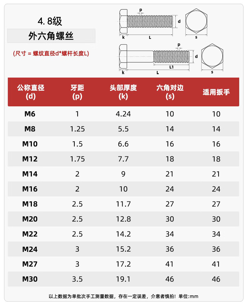 Tianzhuo Hardware 4.8 grade galvanized external hexagonal screws high strength bolts screw rod M6M8M10M12M14M16M20-M30mm M16*70-5 pcs