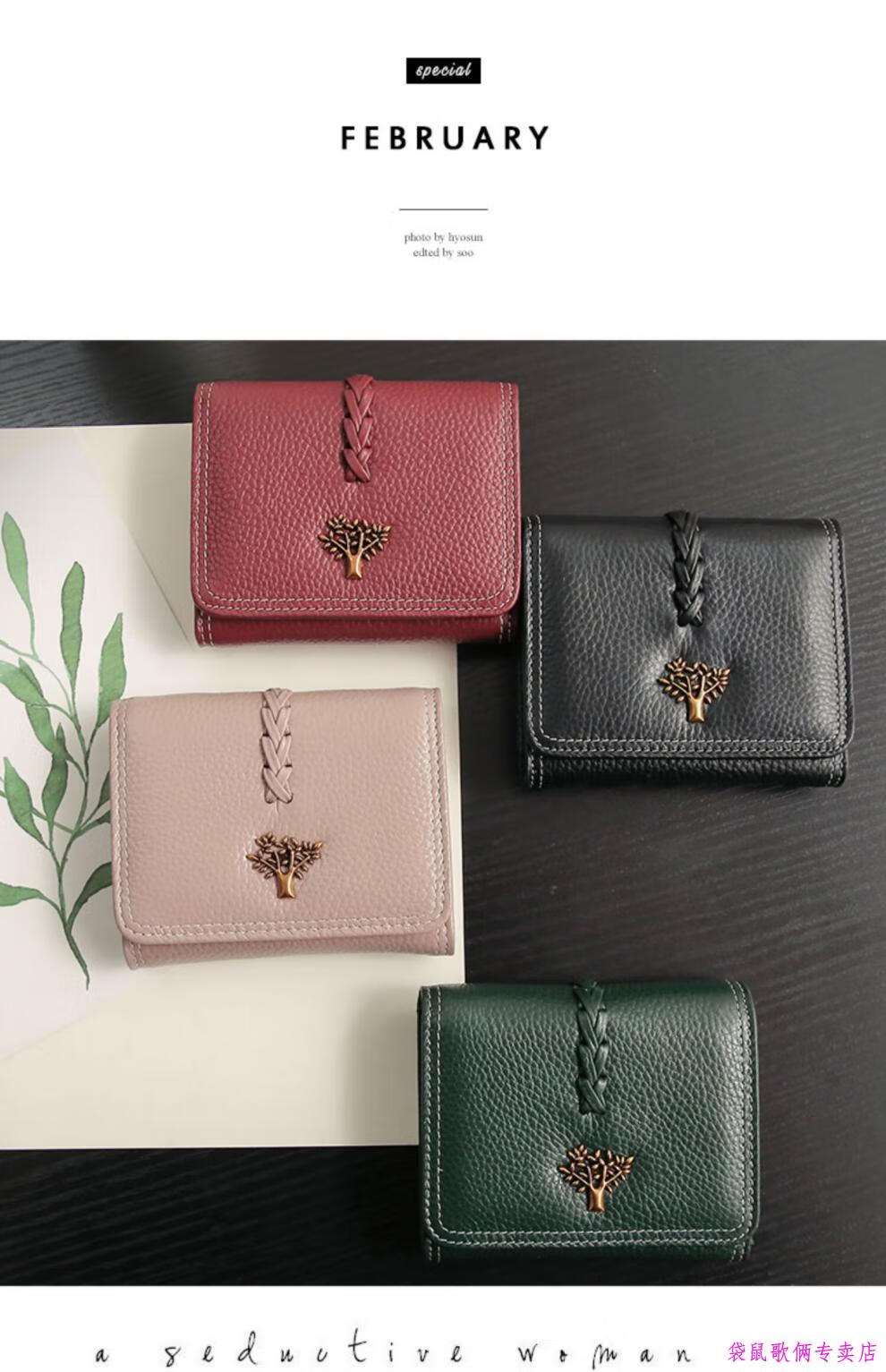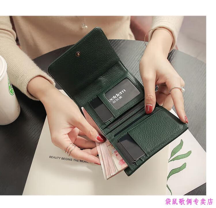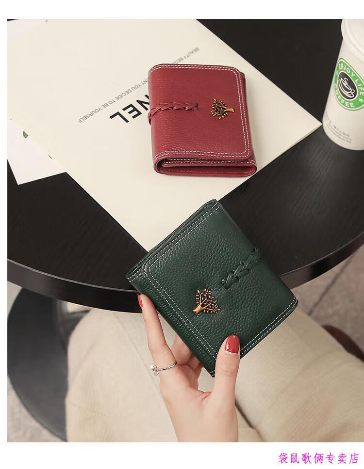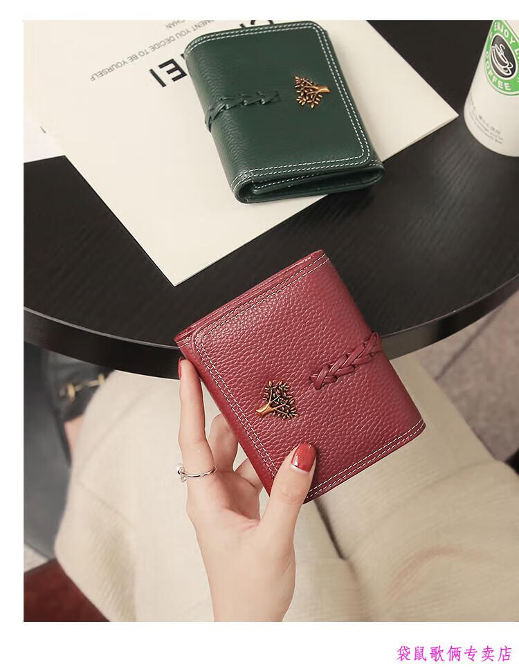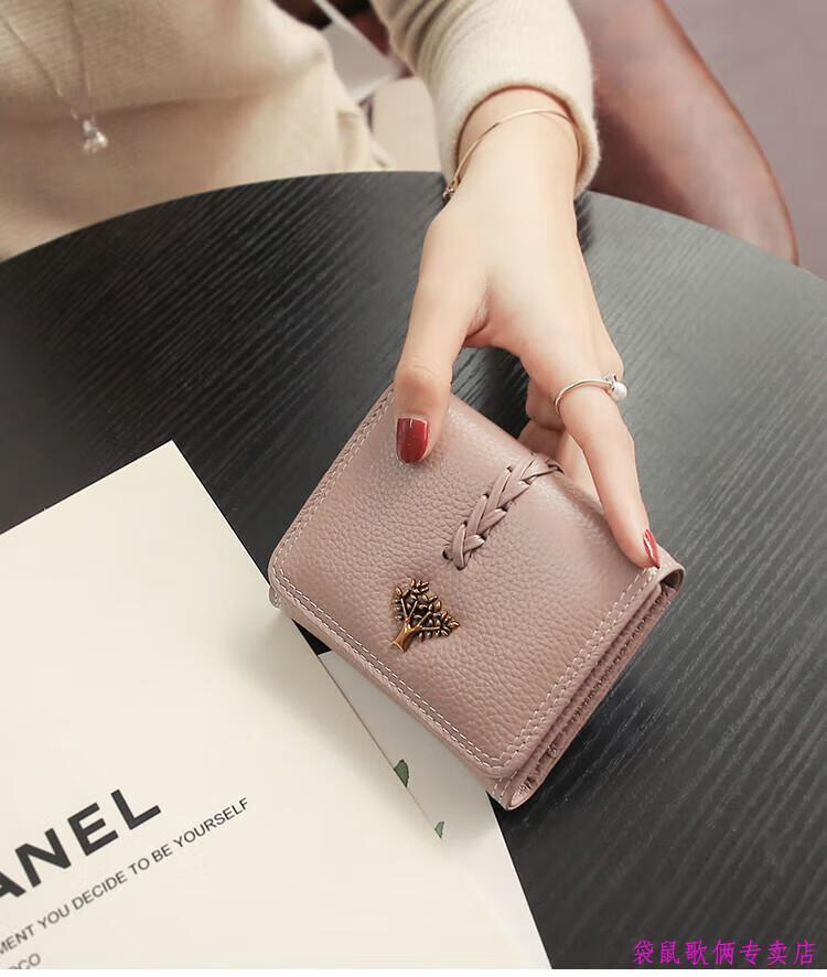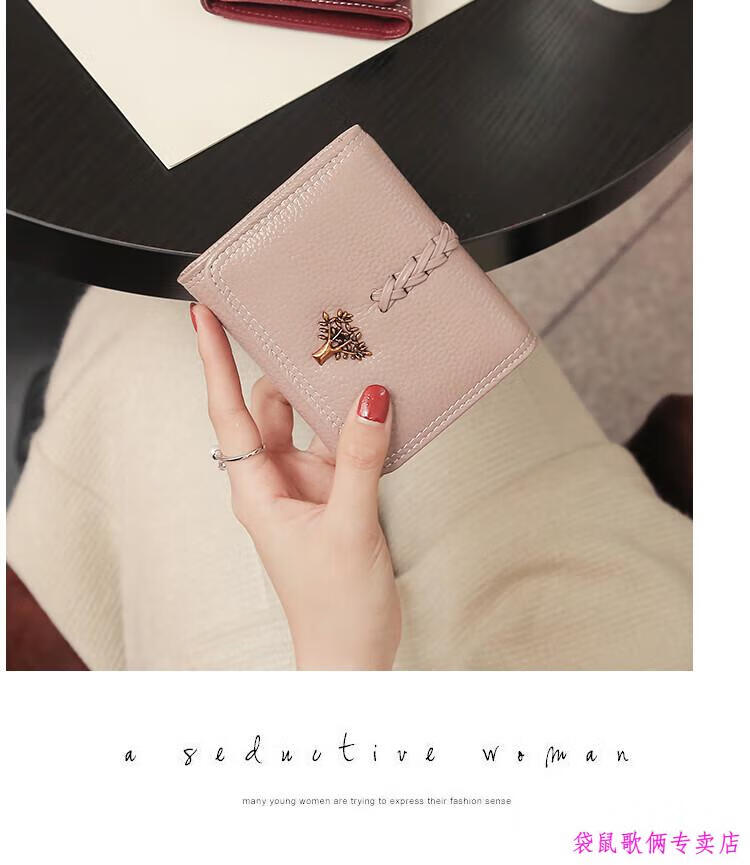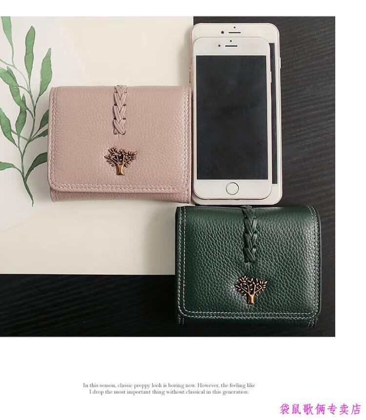 Casa-kups 2025 new Korean style trendy three-fold women's wallet folding first layer cowhide wallet short wallet for women lotus root pink