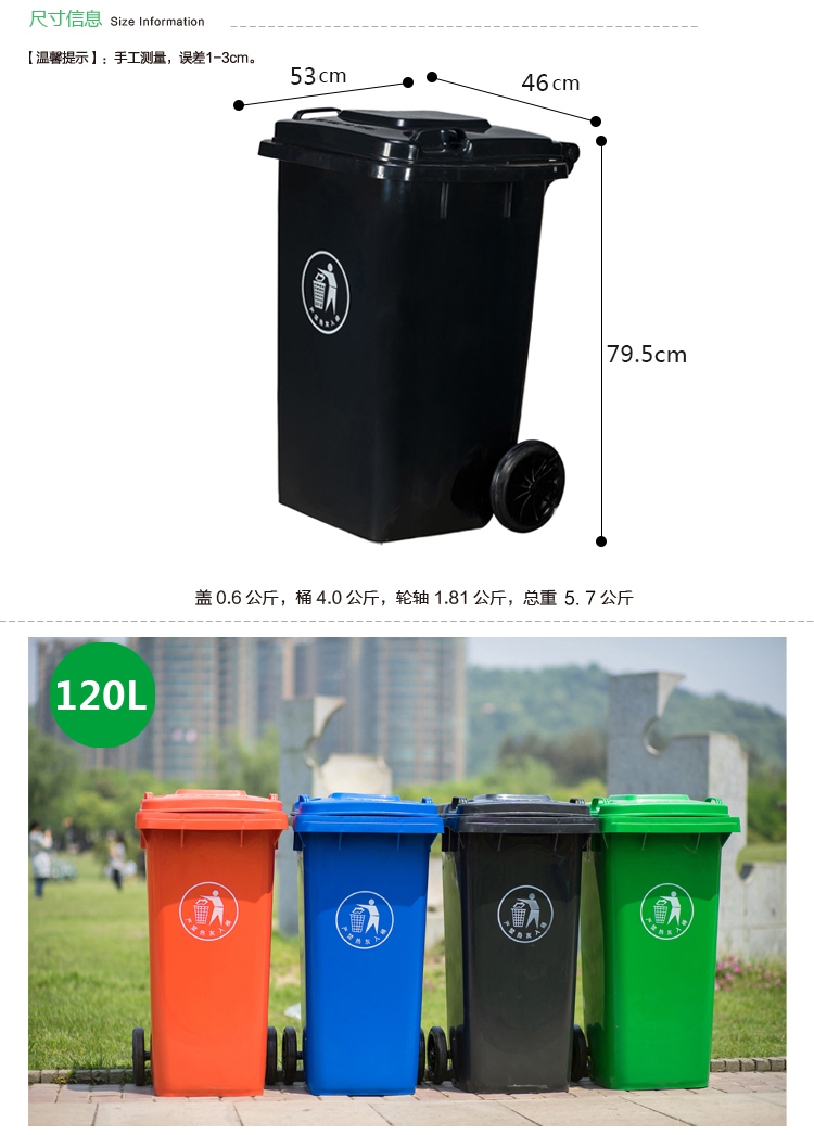 100 liters 120 240L extra large outdoor trash can industrial trash can with lid plastic extra large sanitation large 20L-Y without lid gray