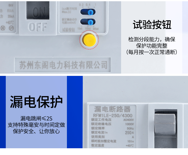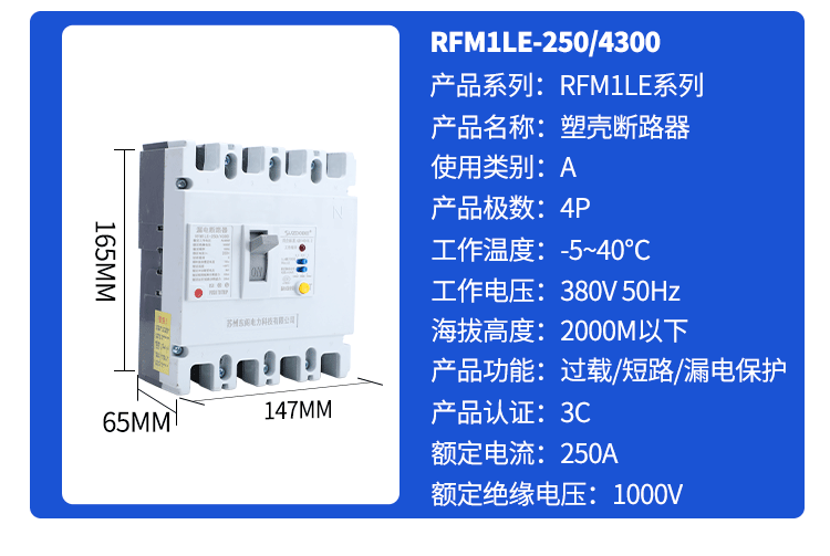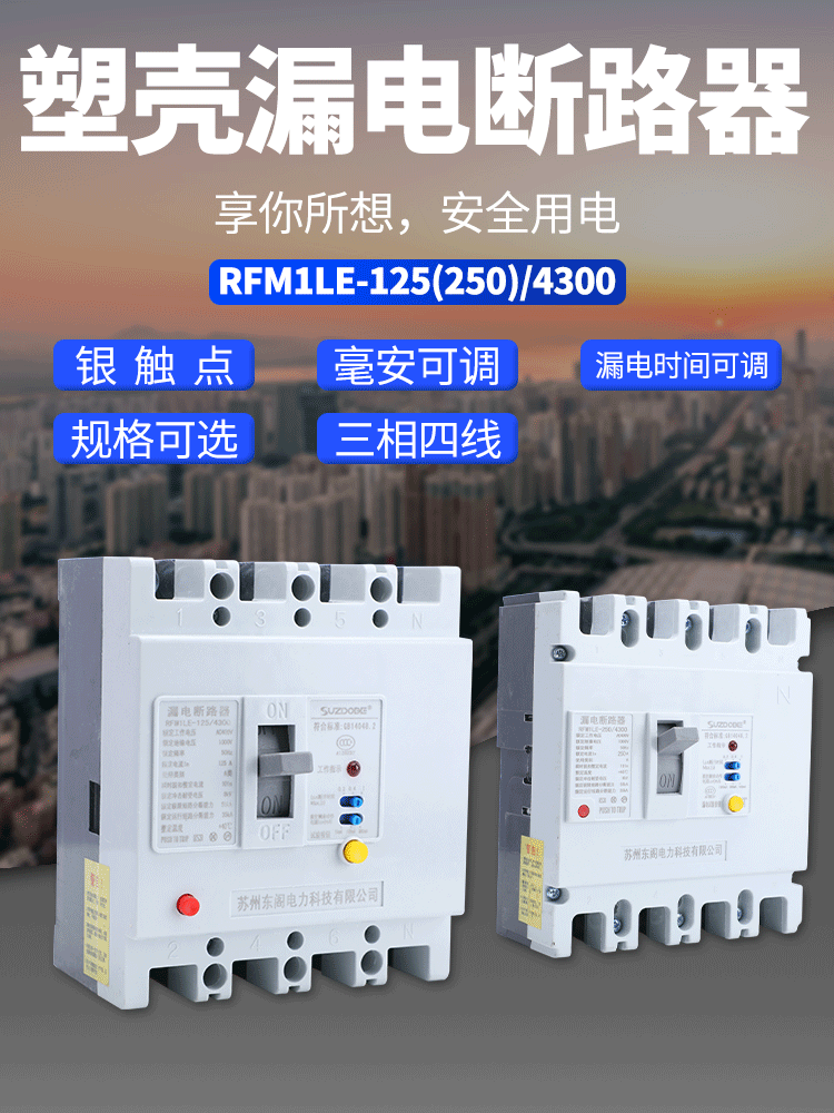 Three-phase four-wire plastic case leakage protector 160A250A with light adjustable 380V leakage circuit breaker 4p 250A