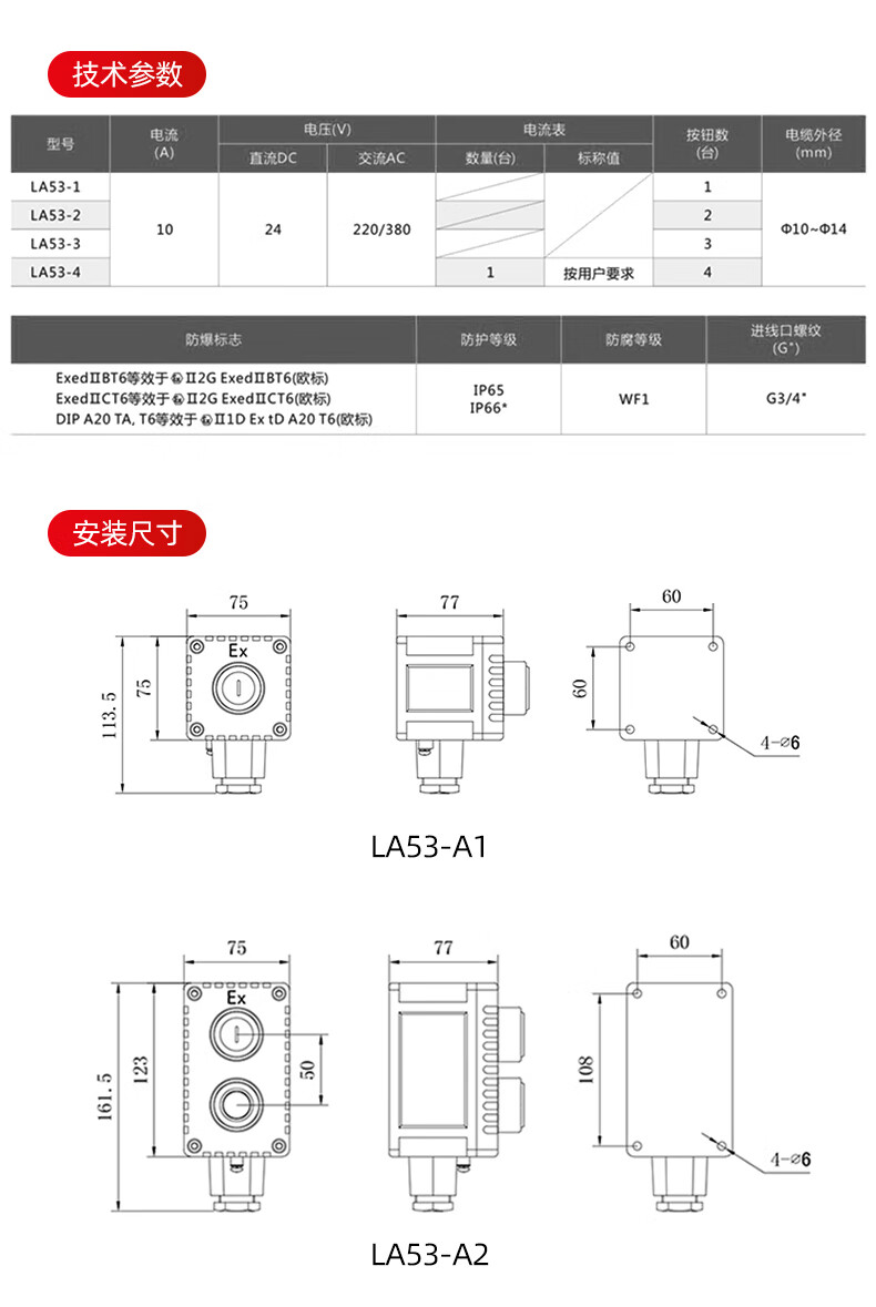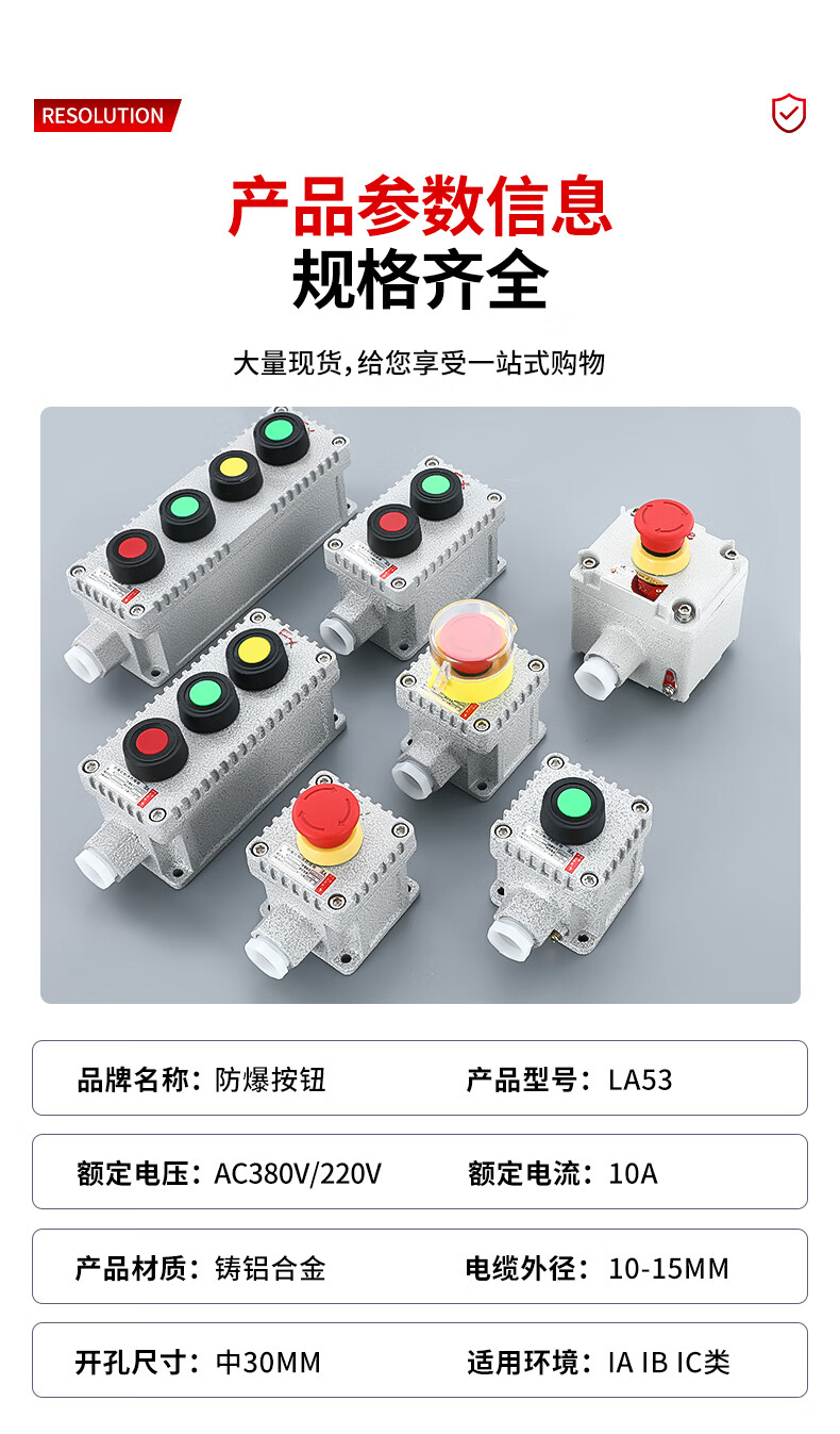 LA53-1H 2H 3H 4H explosion-proof and anti-corrosion control button box button switch emergency stop button box self-locking control LA53-1H empty shell (22MM)