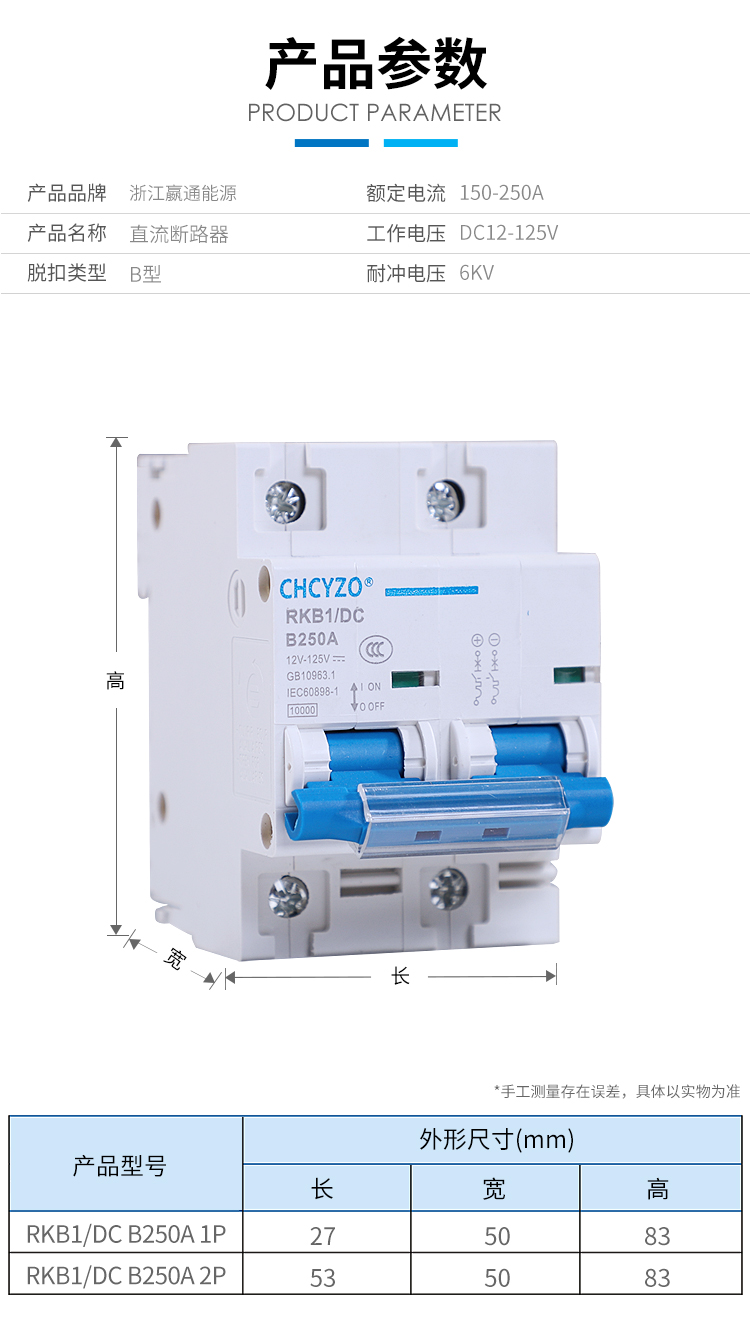 Electric vehicle DC circuit breaker 12V24V48V60V120V DC circuit breaker 150A air switch 200A 1P 200A