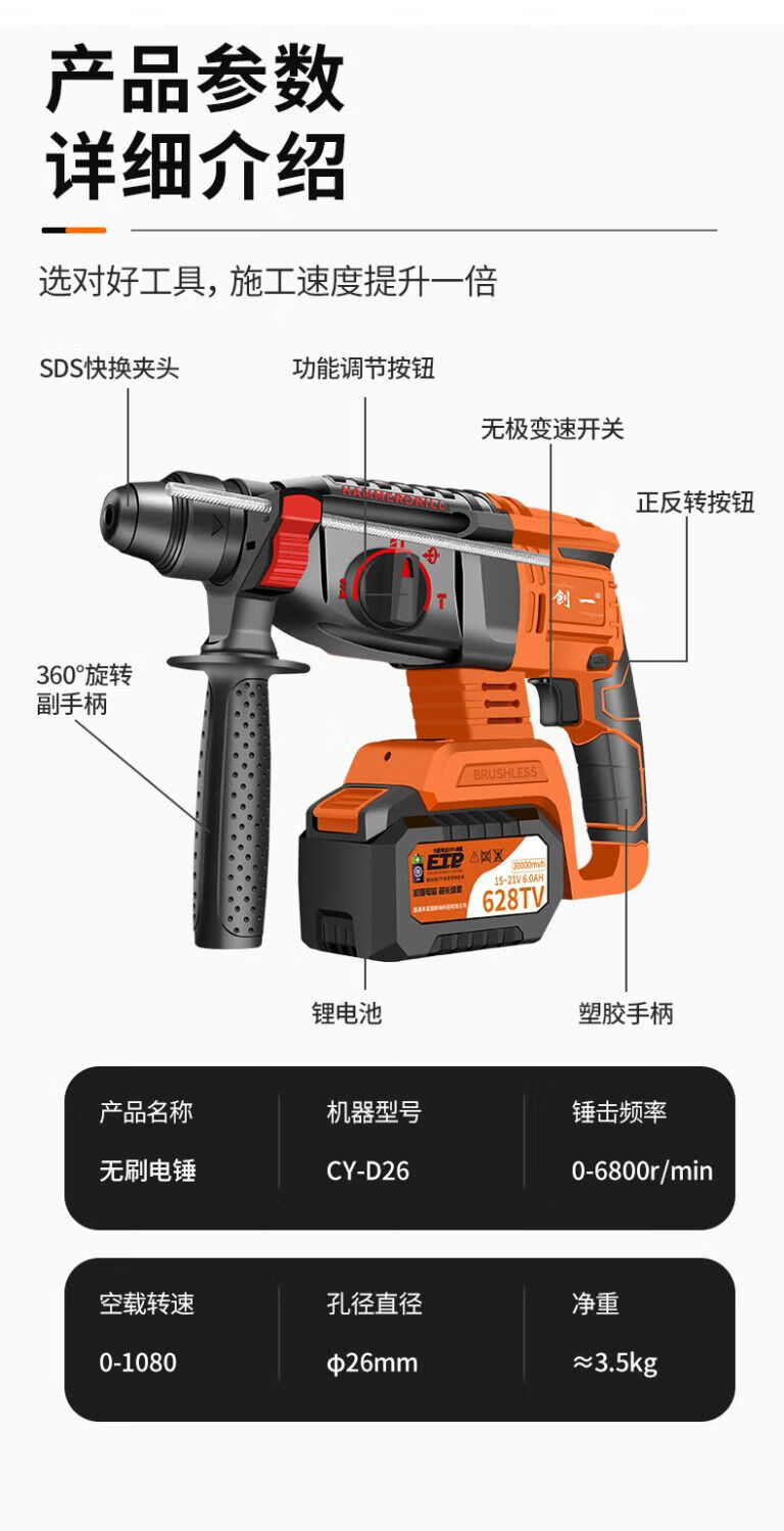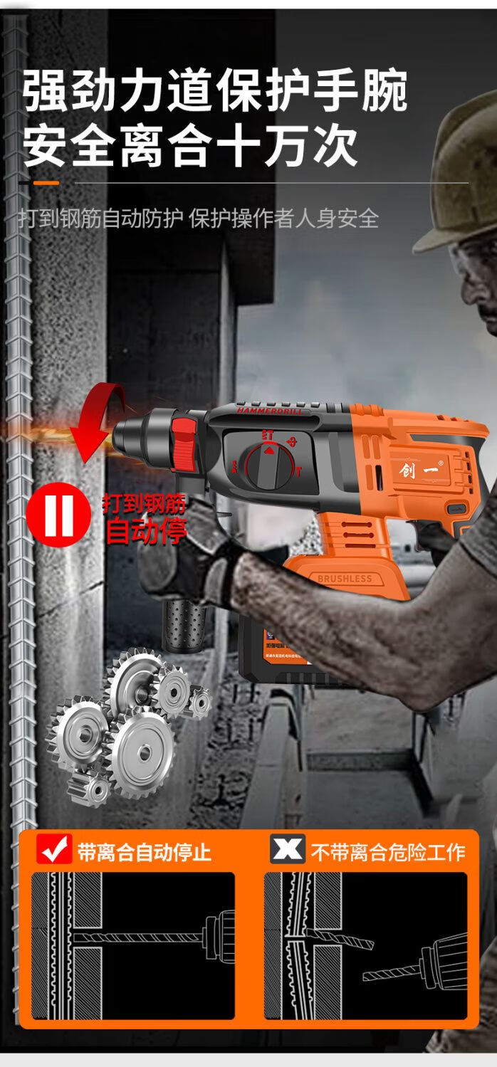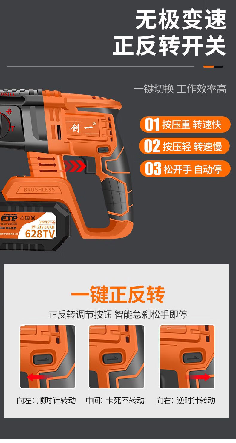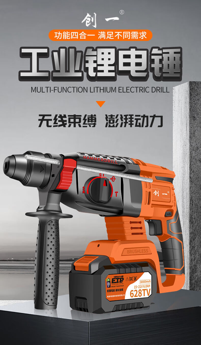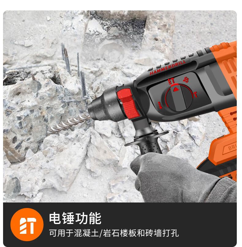 Chuangyi electric hammer impact drill brushless rechargeable lithium battery high-power household concrete three-purpose multi-functional demolition machine luxury package 10 sections dual battery