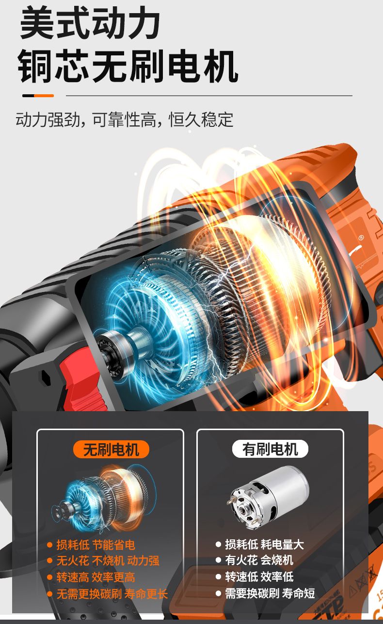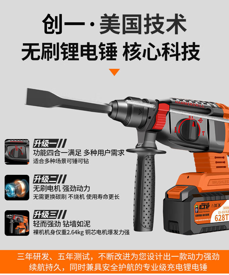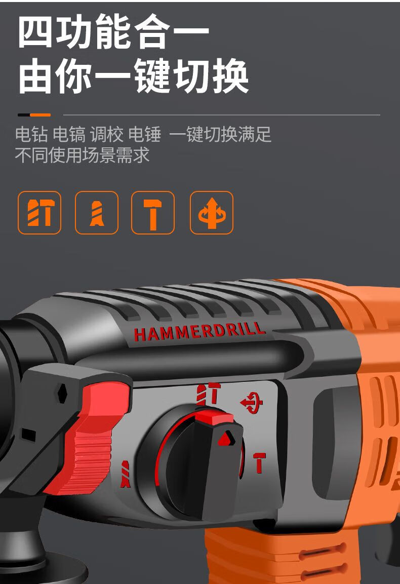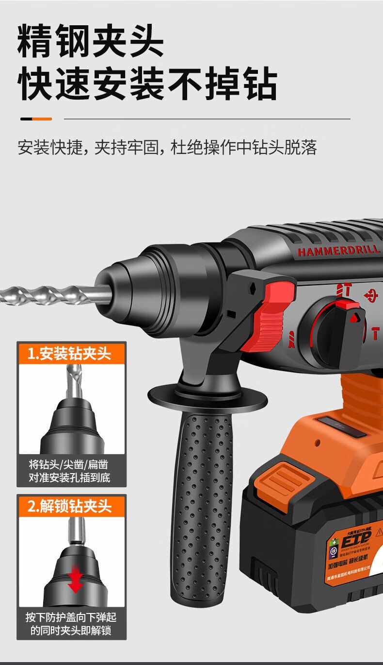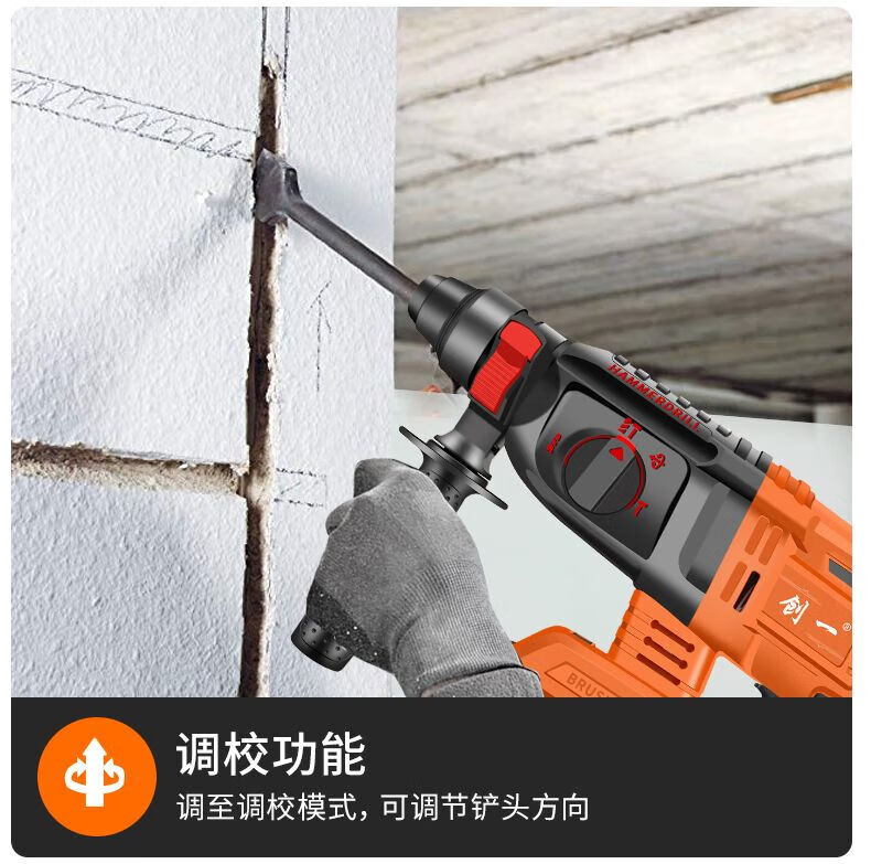 Chuangyi electric hammer impact drill brushless rechargeable lithium battery high-power household concrete three-purpose multi-functional demolition machine luxury package 10 sections dual battery