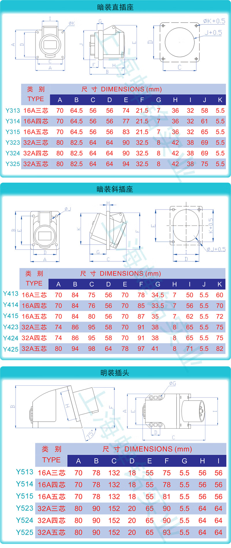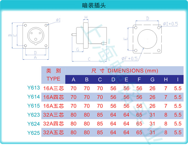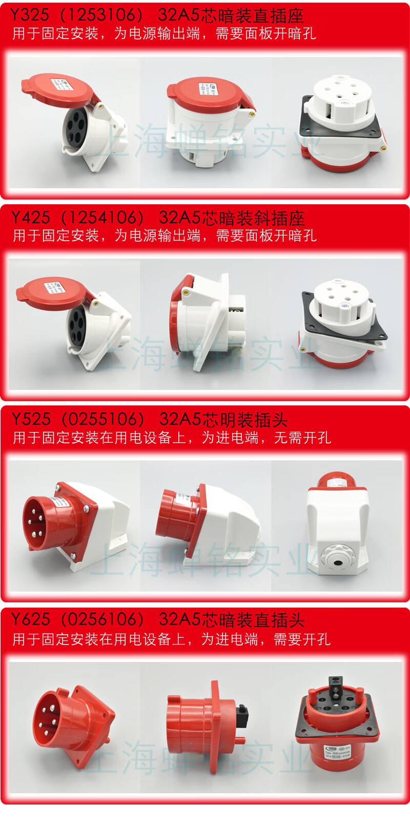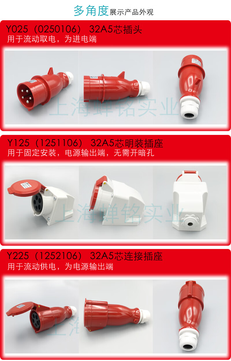 Yida 32A5-core 380V waterproof aviation industry plug exposed and concealed socket connector Y025Y125 32A5-core male plug Y025 (0250106)