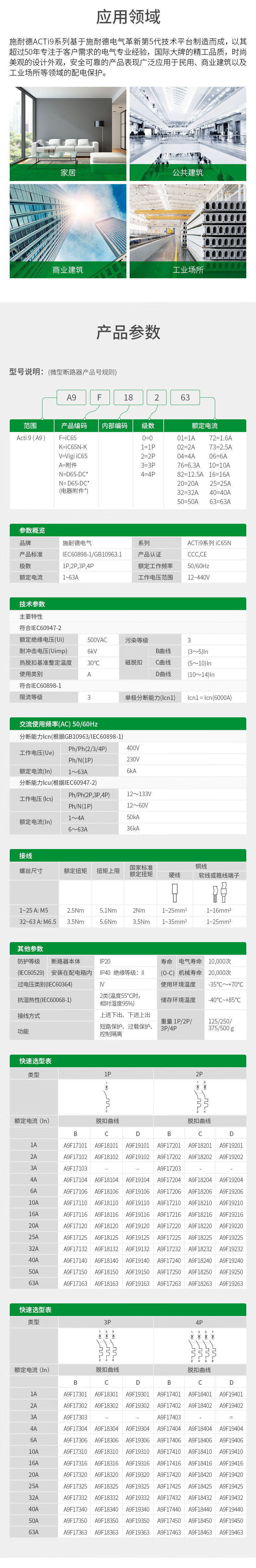 ACTI9 IC65N series small circuit breaker D curve current 1~63A circuit breaker micro-break A9F19263
