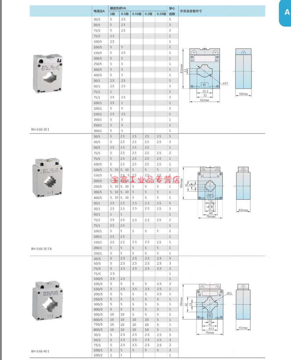 Current transformer metering AC three-phase comparison BH-0.66I0.2S level 100/200/300/400/5A BH-0.66 400/5 40 aperture 0