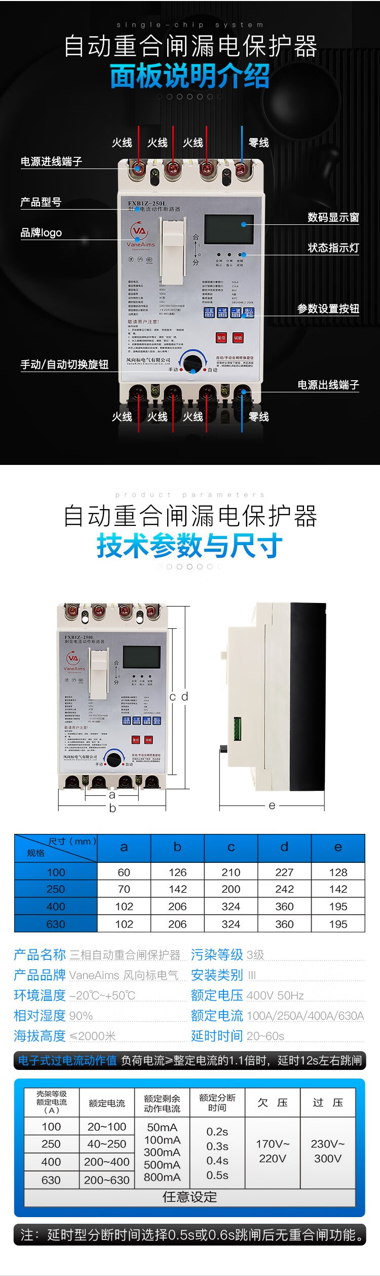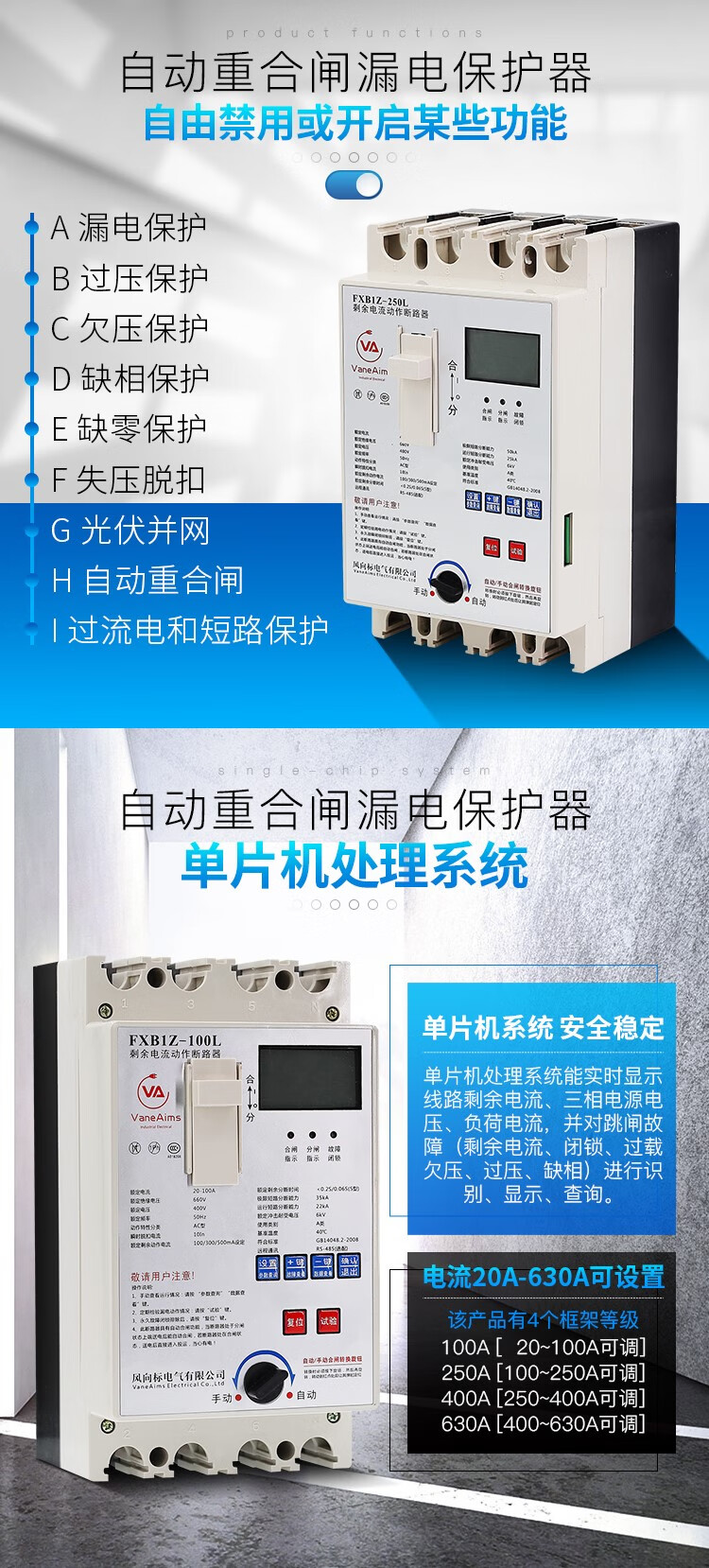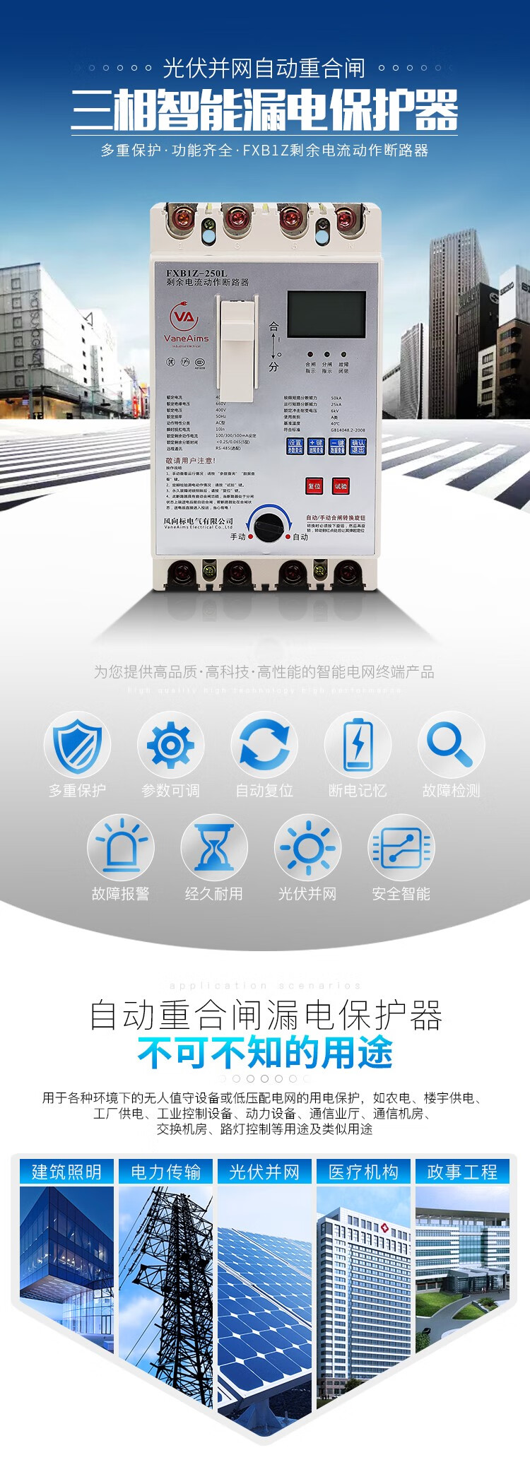 FXB1Z leakage protector photovoltaic automatic reclosing three-phase circuit breaker 380V phase loss over and under voltage switch 200A 3P+N