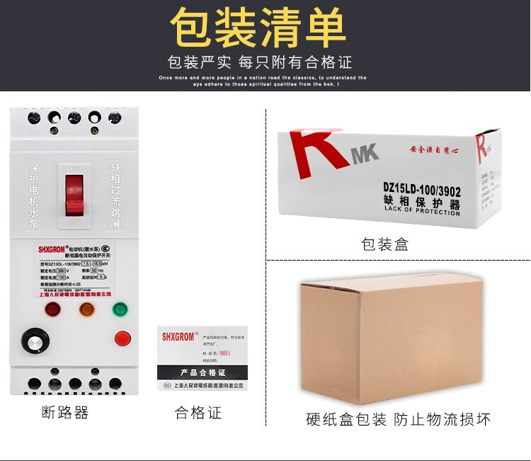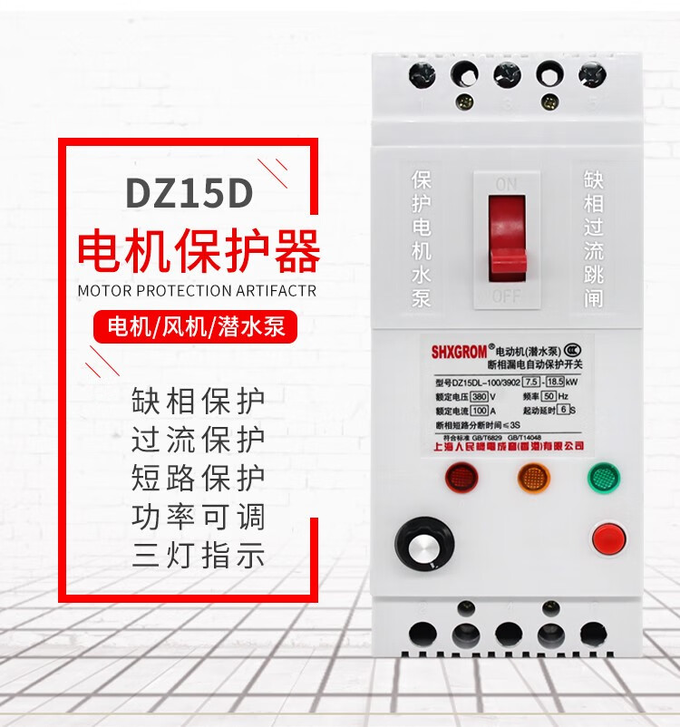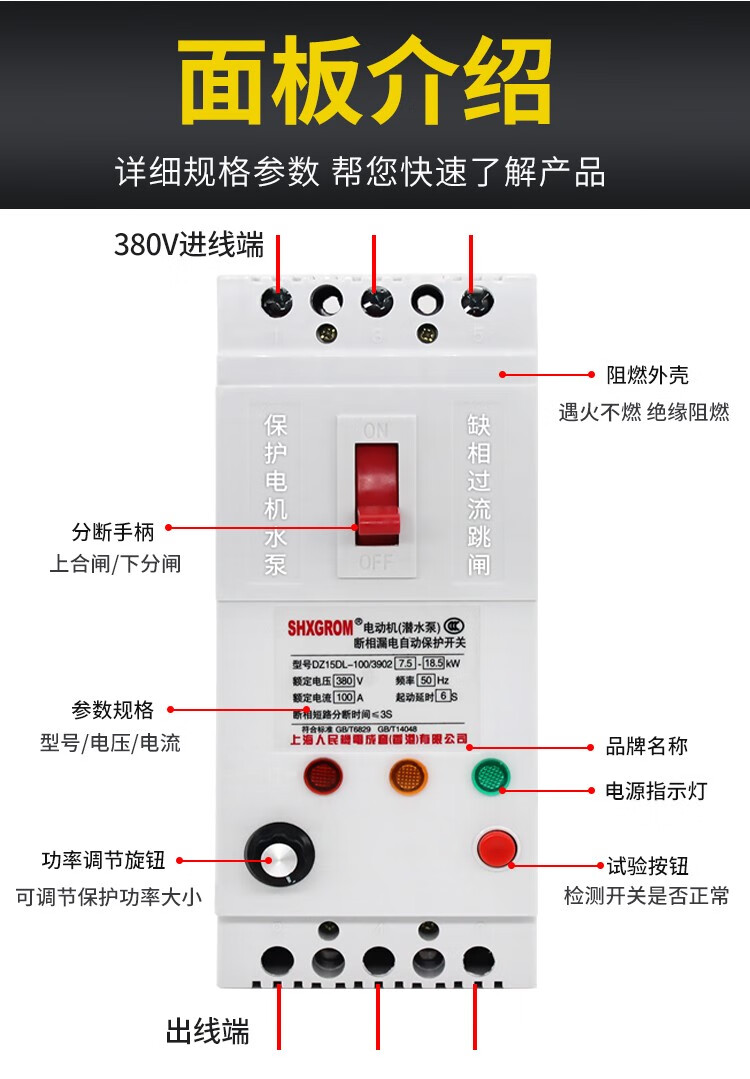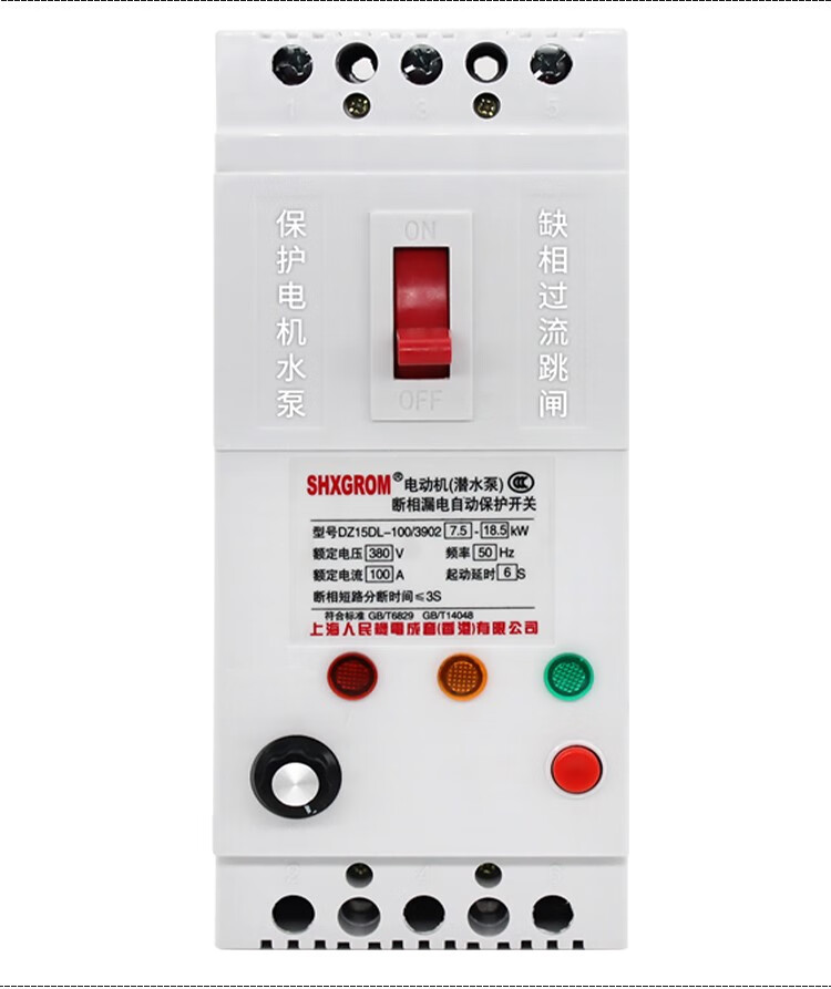 Phase loss protector three-phase motor submersible pump 7.5KW 380V phase loss leakage switch three-phase circuit breaker knife 3P 100A