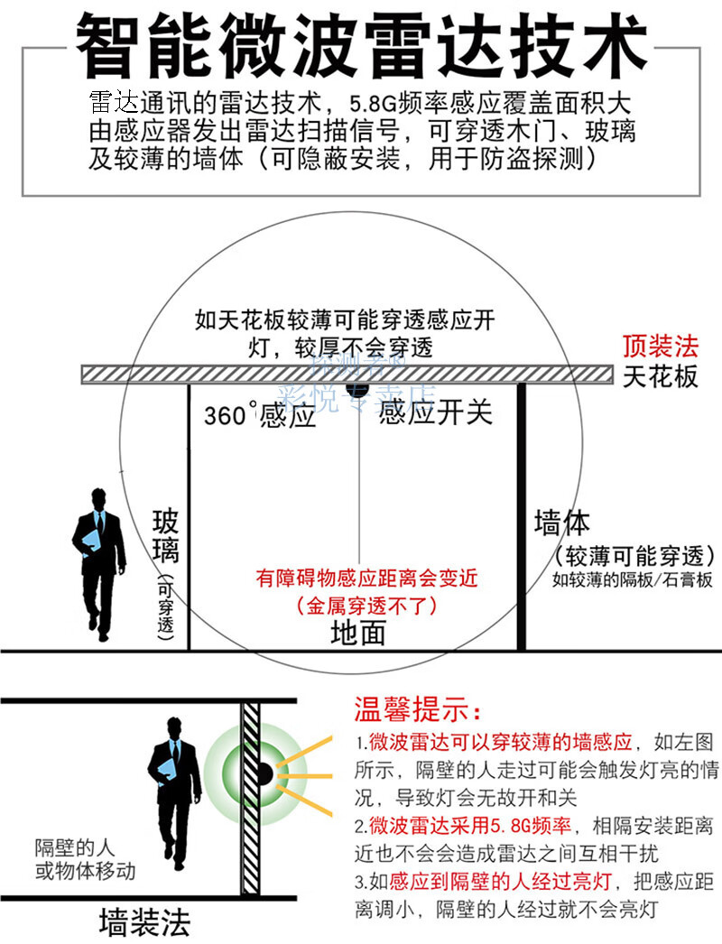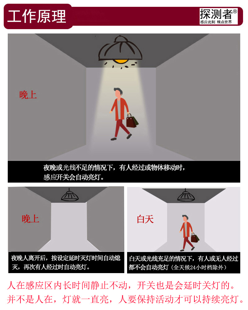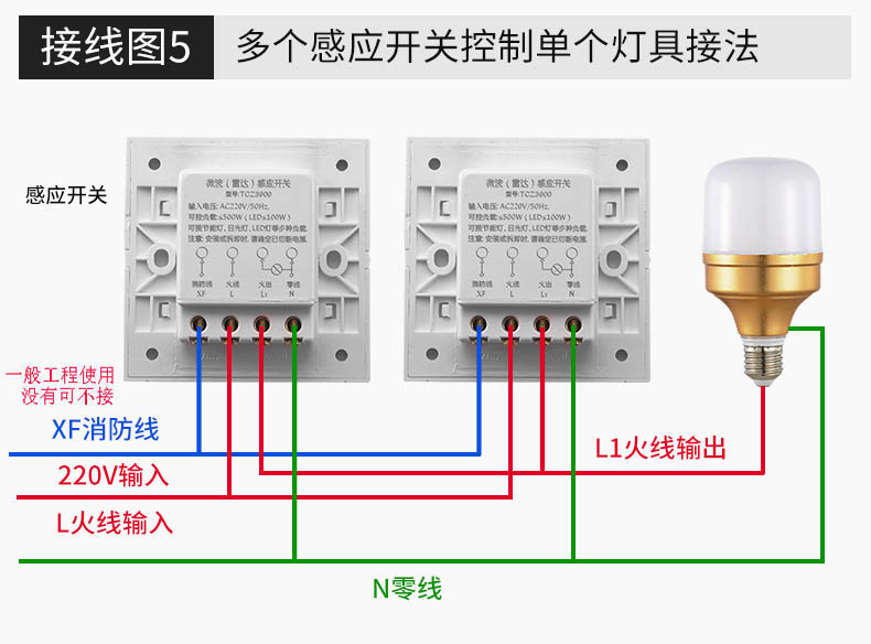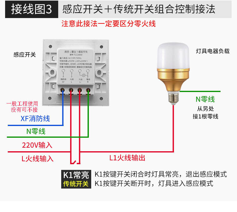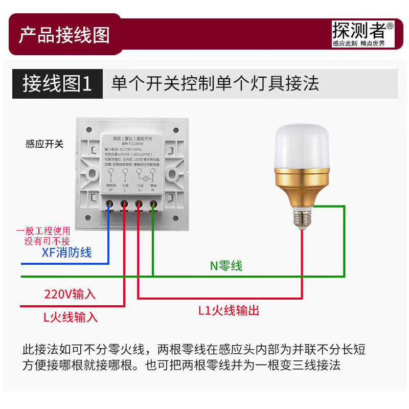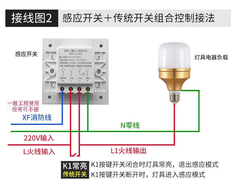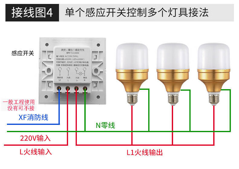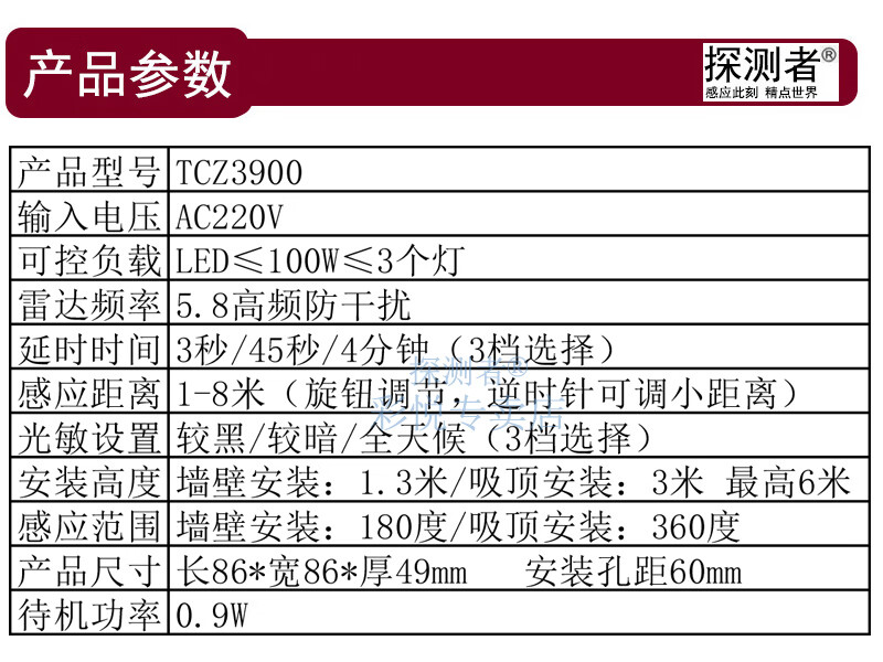 Radar induction switch detector TCZ3900 electronic 86 type installation delay light control distance adjustable TCZ3900 controllable 300 watts/controllable 3 lights
