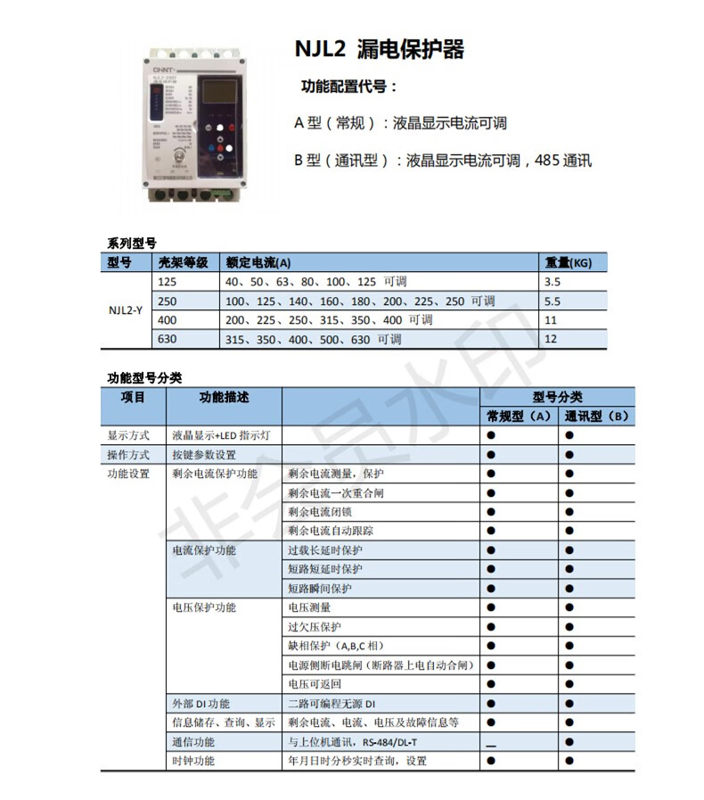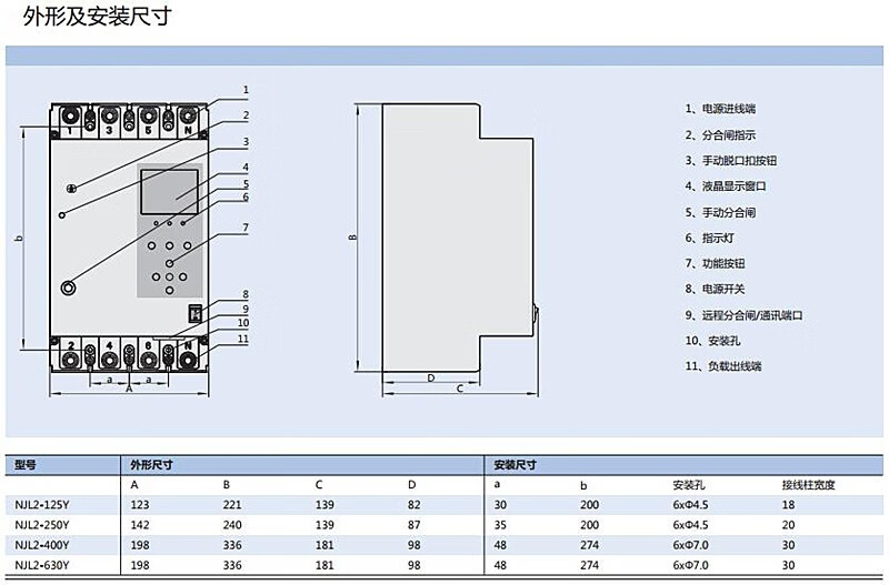 () Leakage circuit breaker NJL2-125/250/400/630Y automatic reclosing three-phase intelligent protector customized 250A