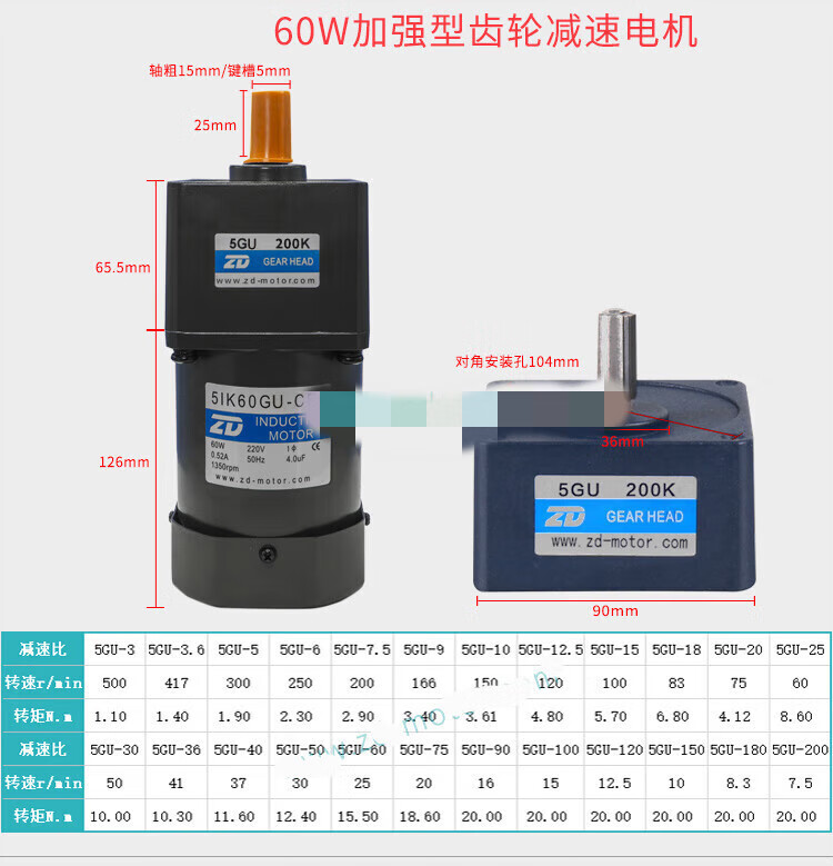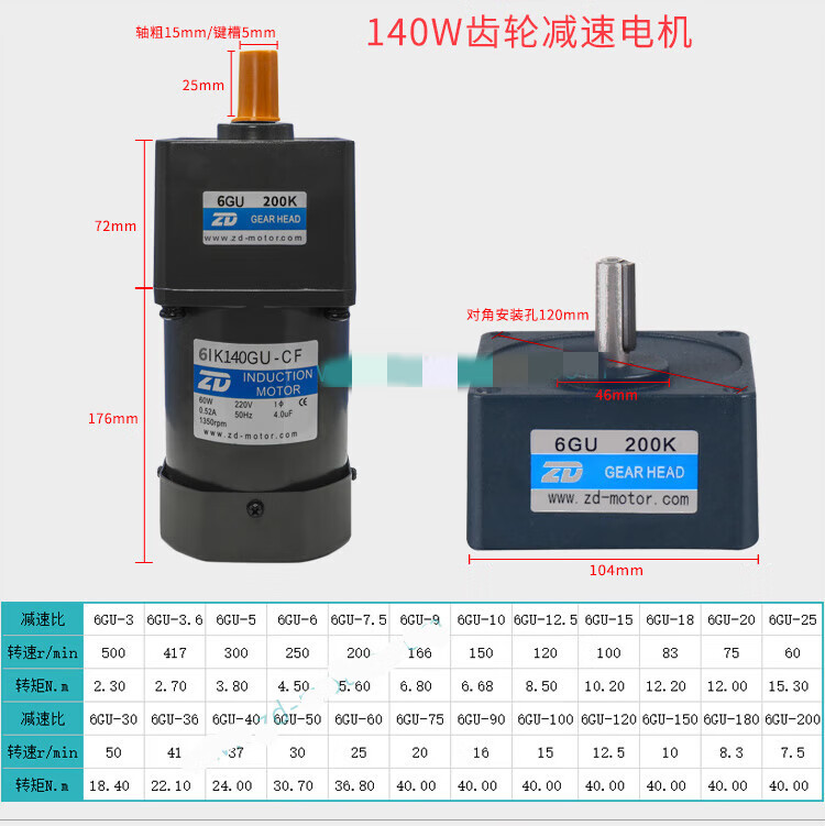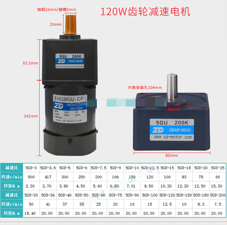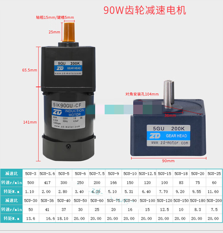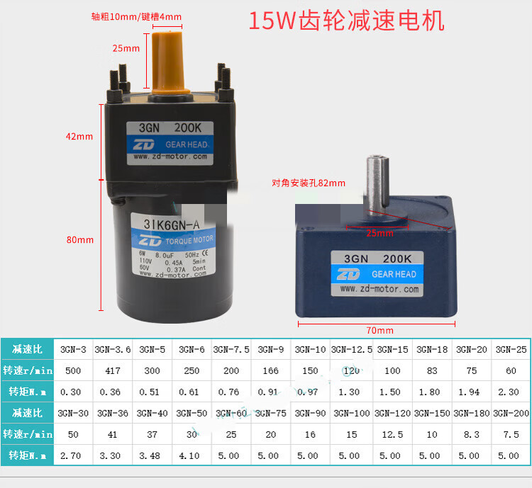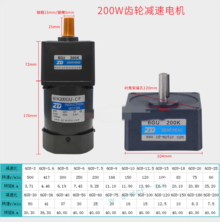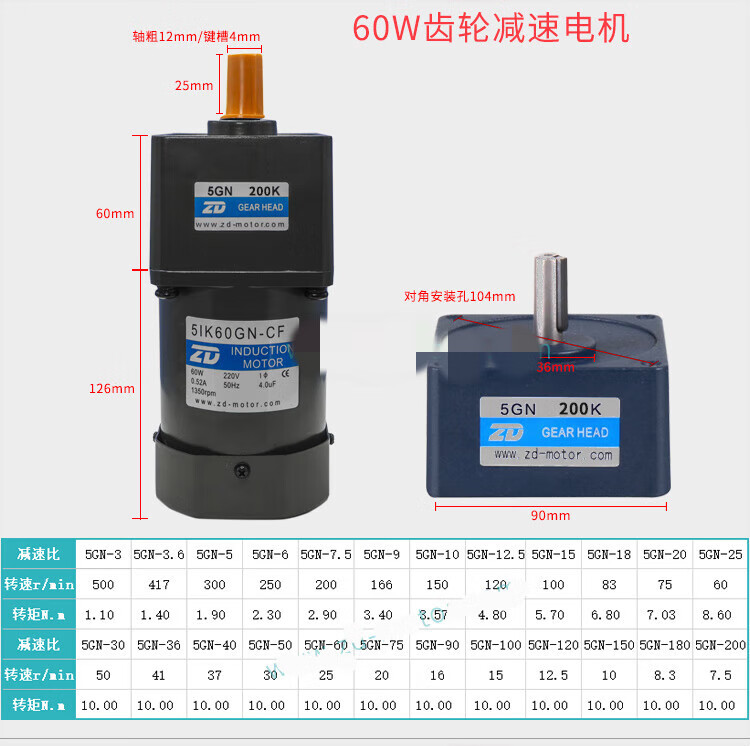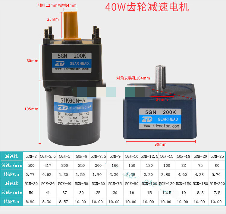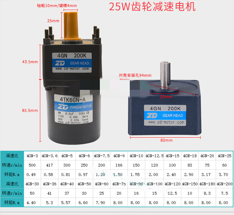 ZD Zhongda motor 6W-250W 110V 220V speed regulating motor gear reducer speed ratio 3-750 optional 4IK25RGN A(F)(110V)90K(B)-200K(B)