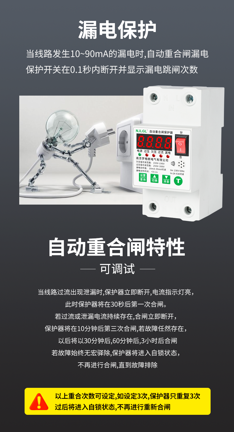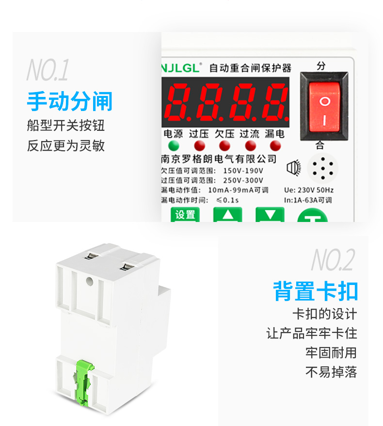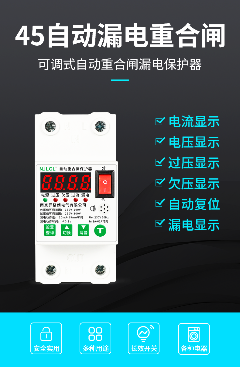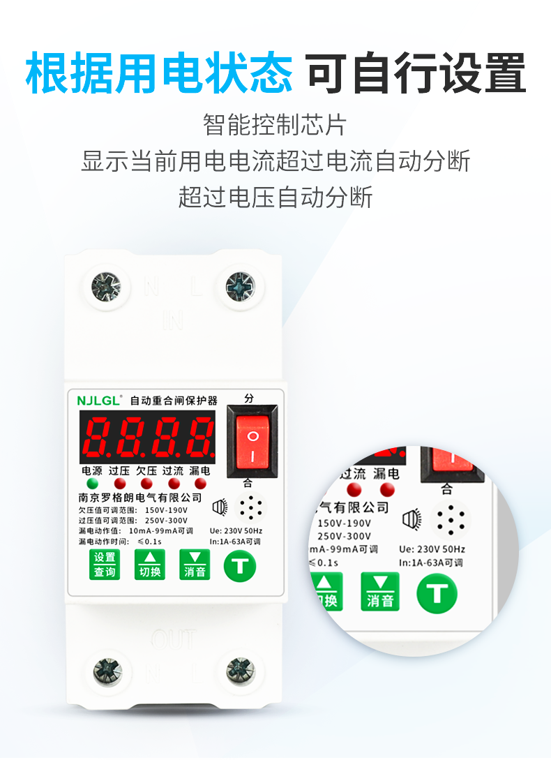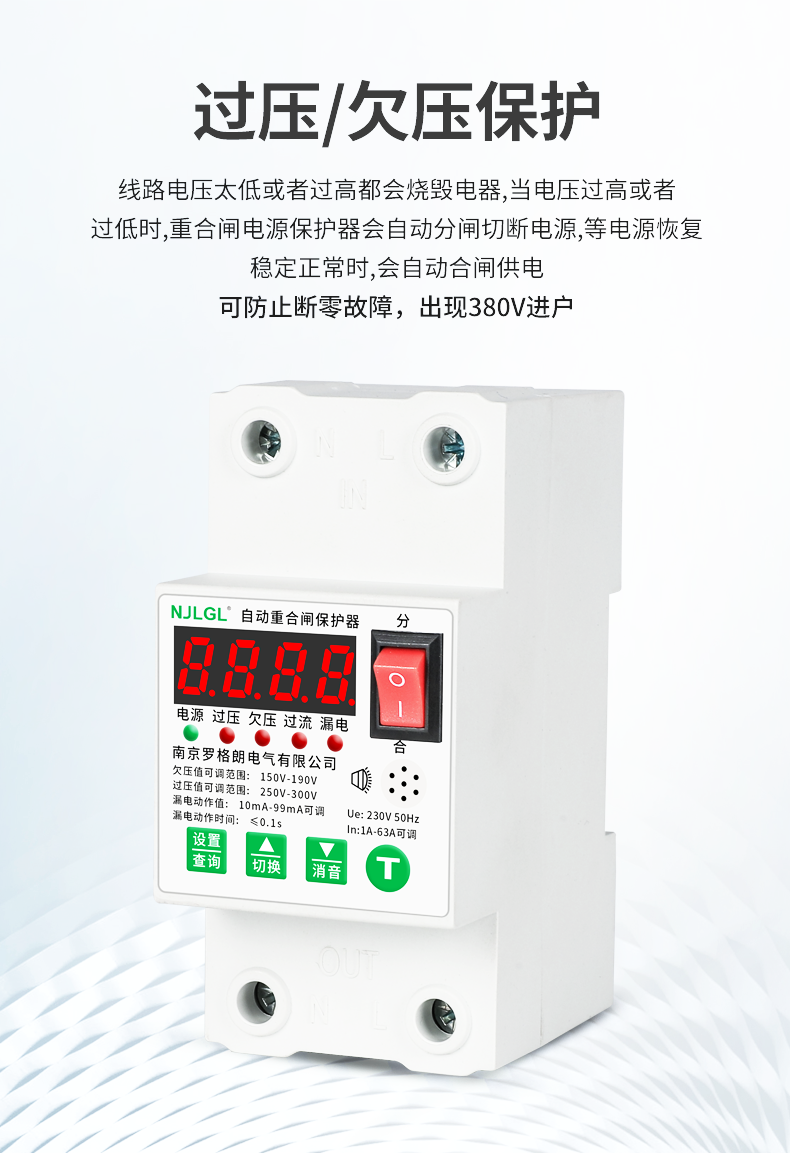 Automatic reclosing leakage protector intelligent leakage self-restoring overvoltage and undervoltage switch single-phase 220V 2P 10A