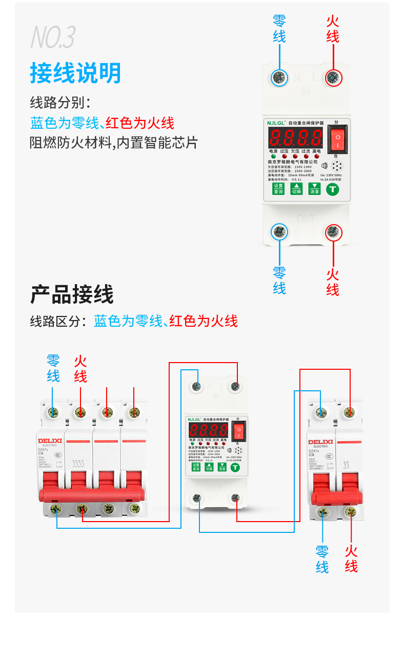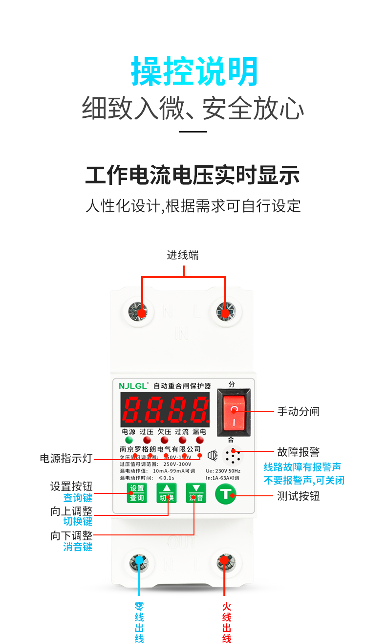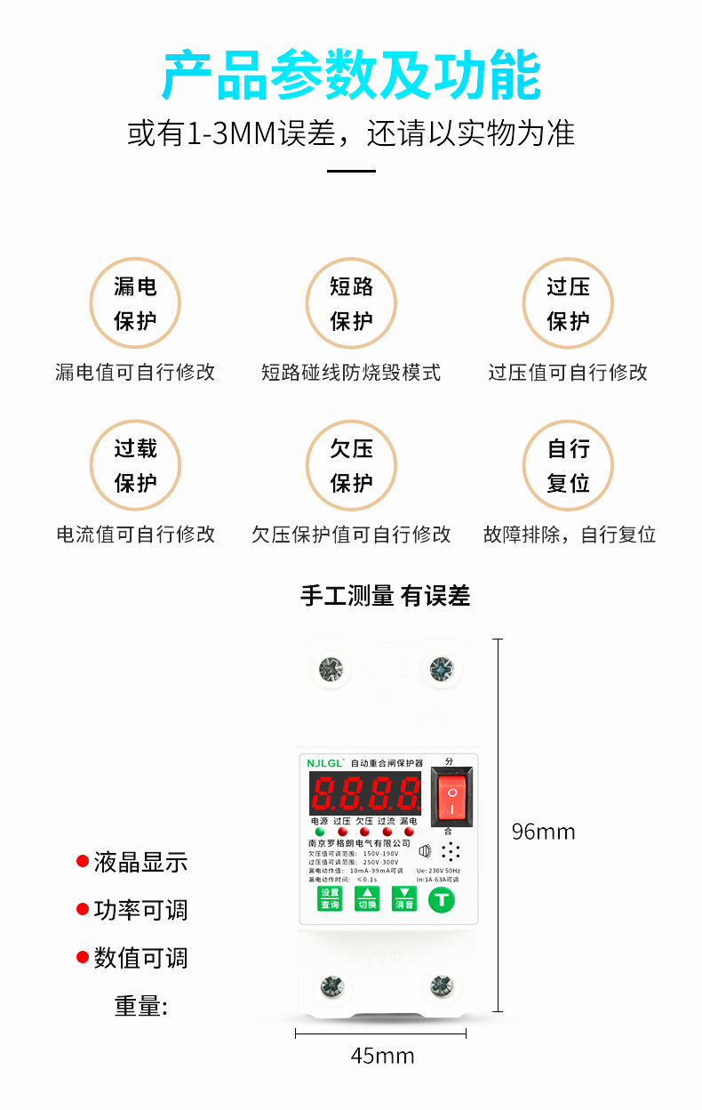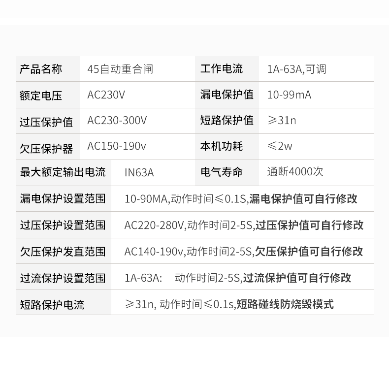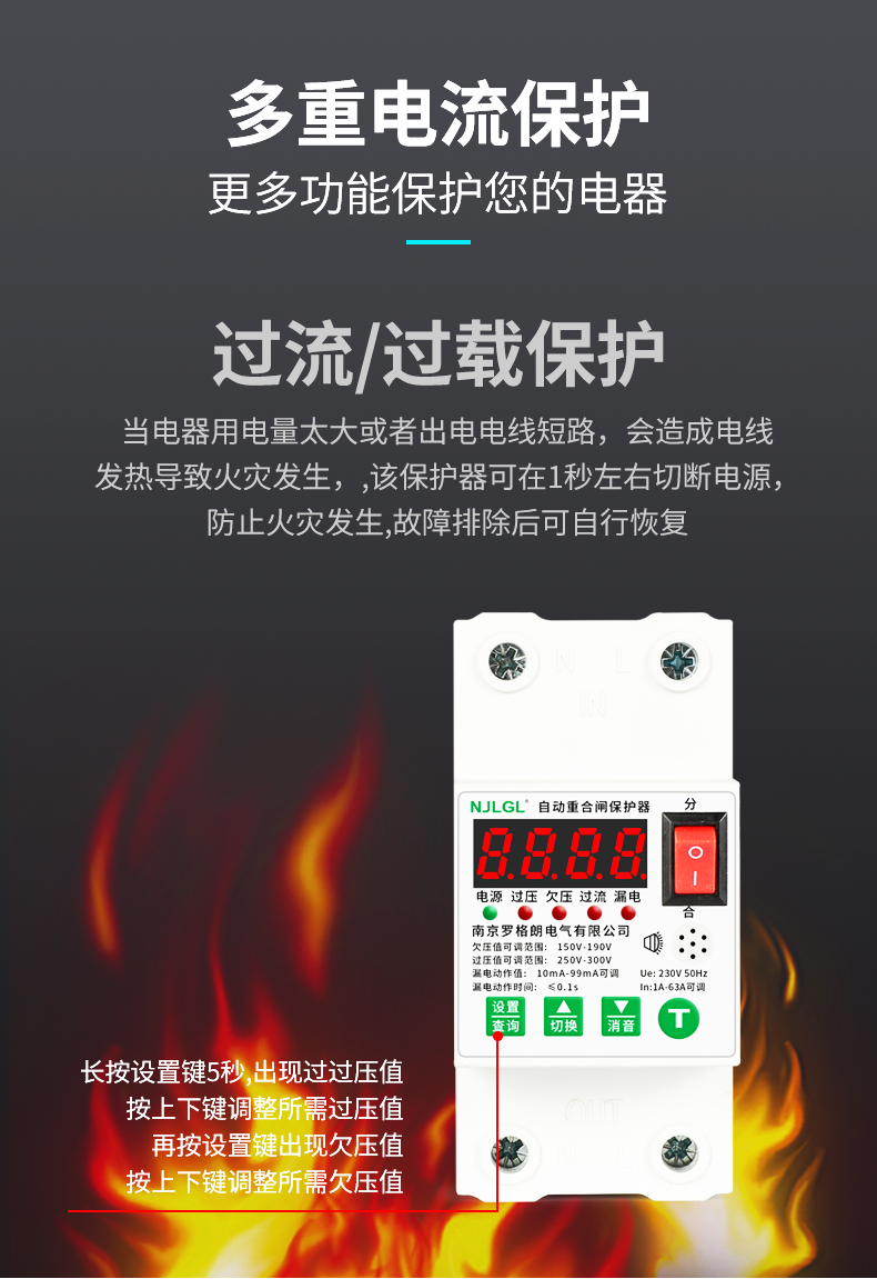 Automatic reclosing leakage protector intelligent leakage self-restoring overvoltage and undervoltage switch single-phase 220V 2P 10A