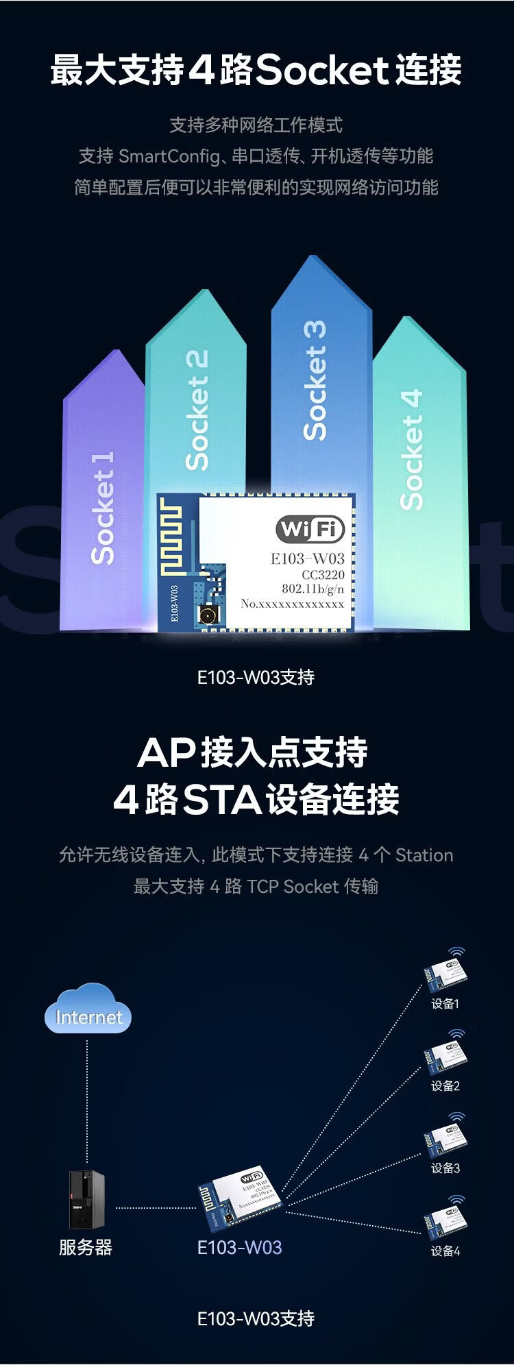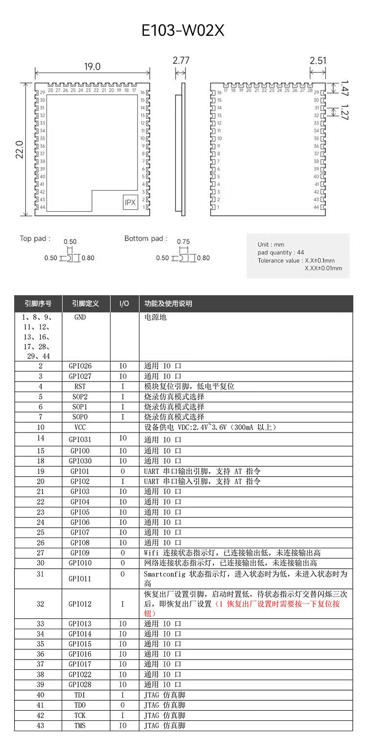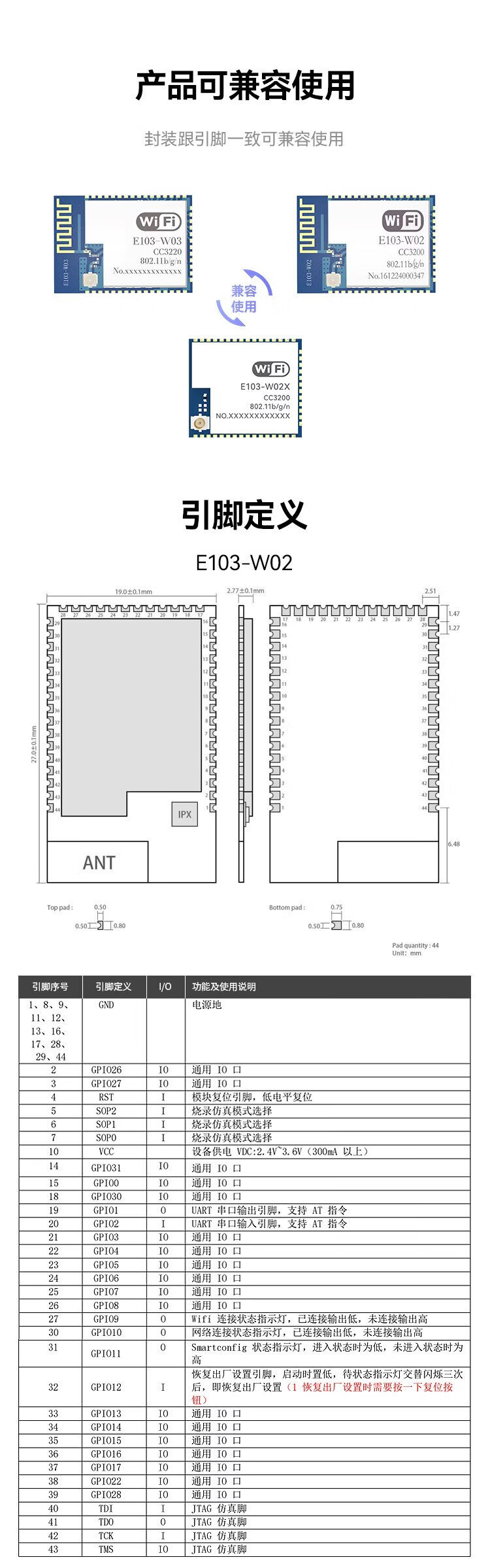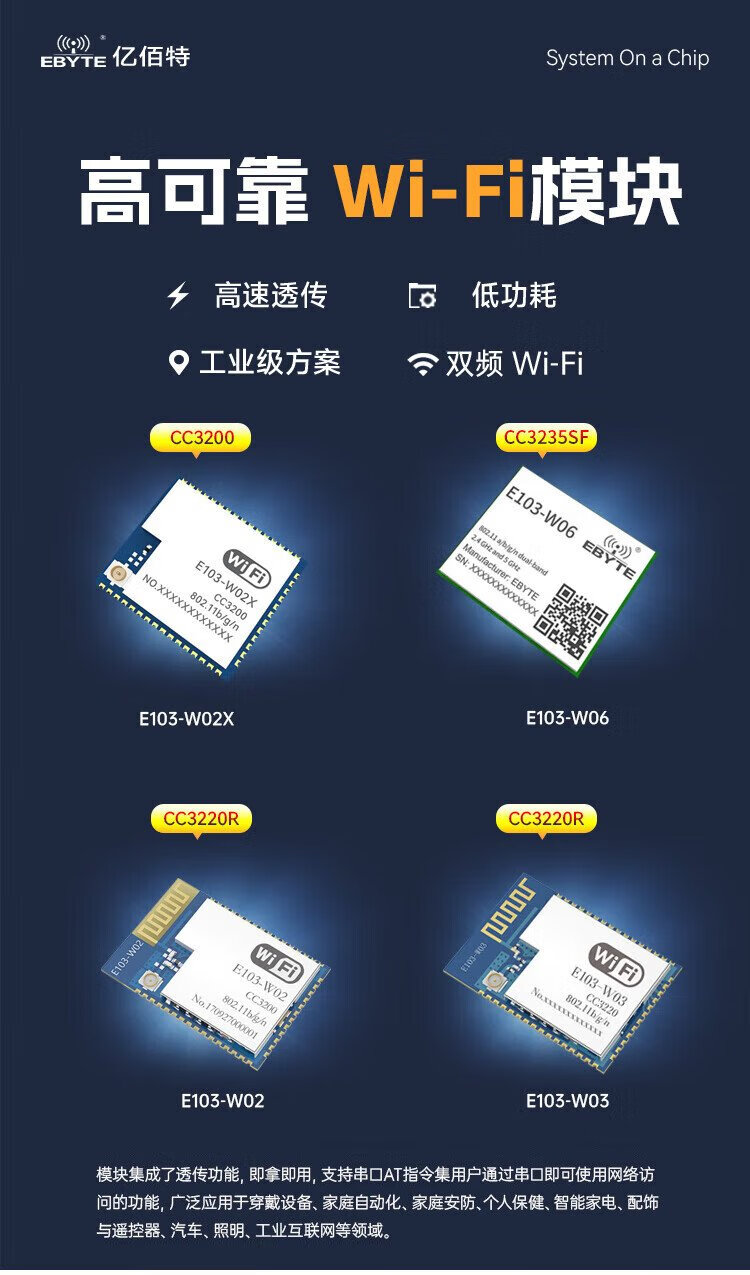 Ebyte 2.4G/5.8G dual-band wifi wireless data transmission module CC3200 high-speed transparent transmission IoT IPV6 network E103-W03 | Comes with PCB antenna&CC3220R