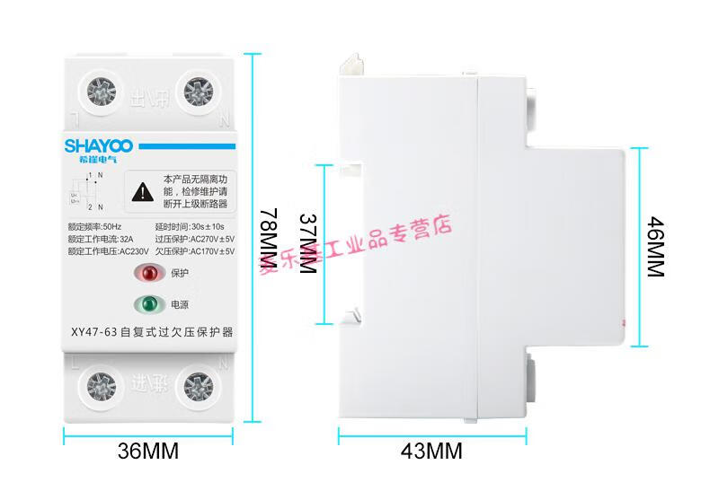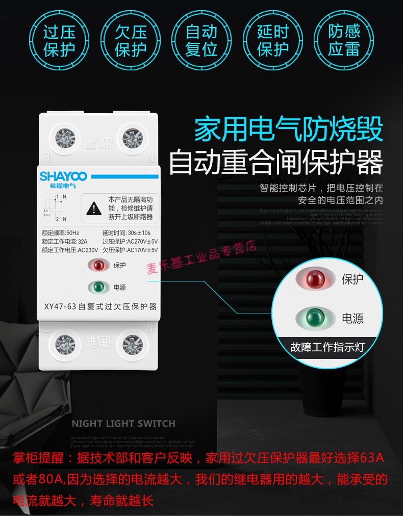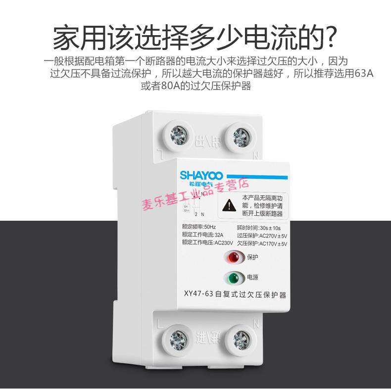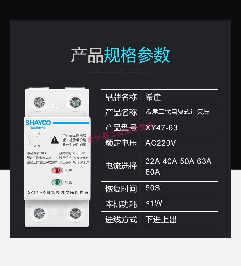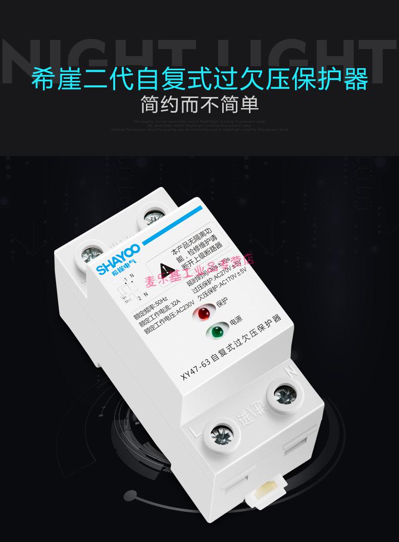 Suitable for self-resetting over-under voltage protector over-voltage over-voltage delay automatic protector lightning arrester 2P220V 63A 2P