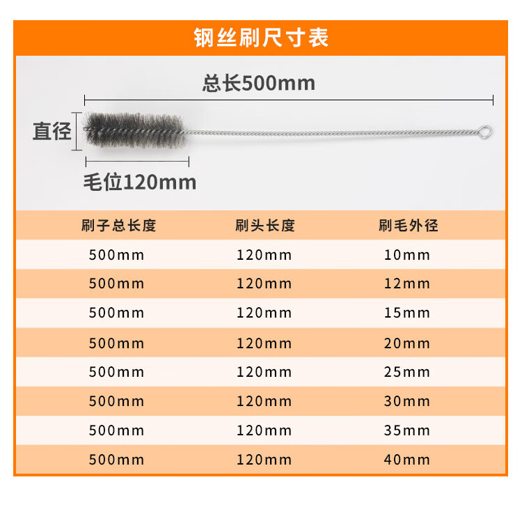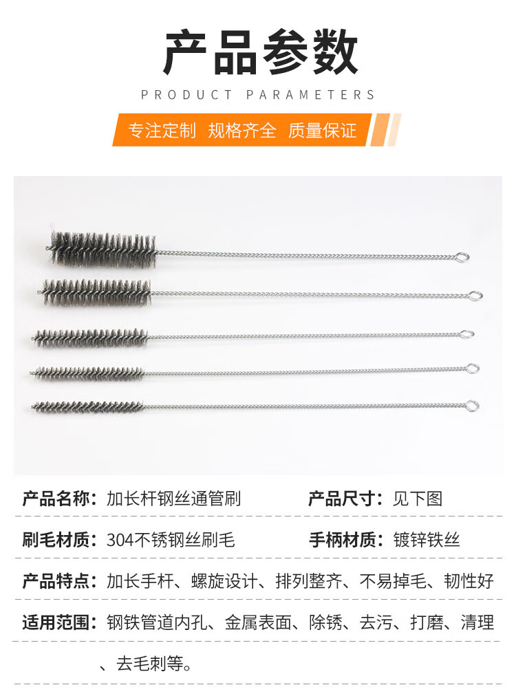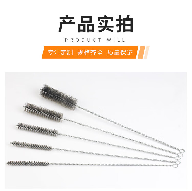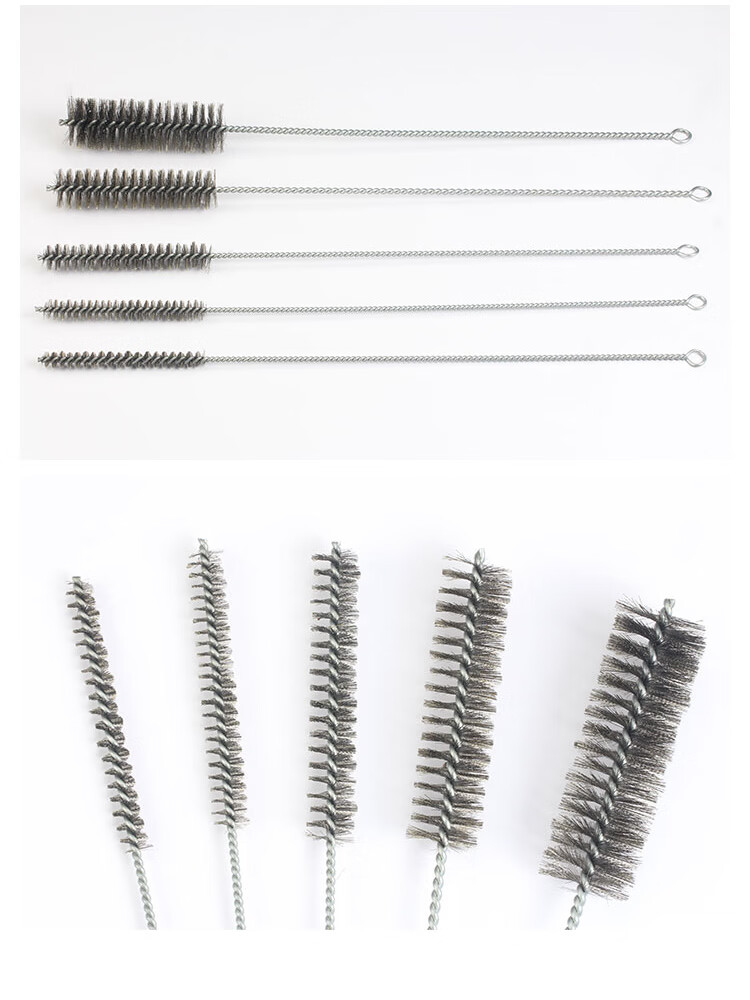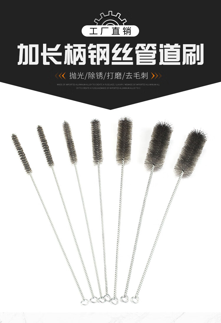Long-handled steel wire pipe brush for pipe inner hole metal and wood surface rust removal, polishing and deburring, hard-bristle iron brush, bristle length 10 mm in diameter, please negotiate with us for large quantities R