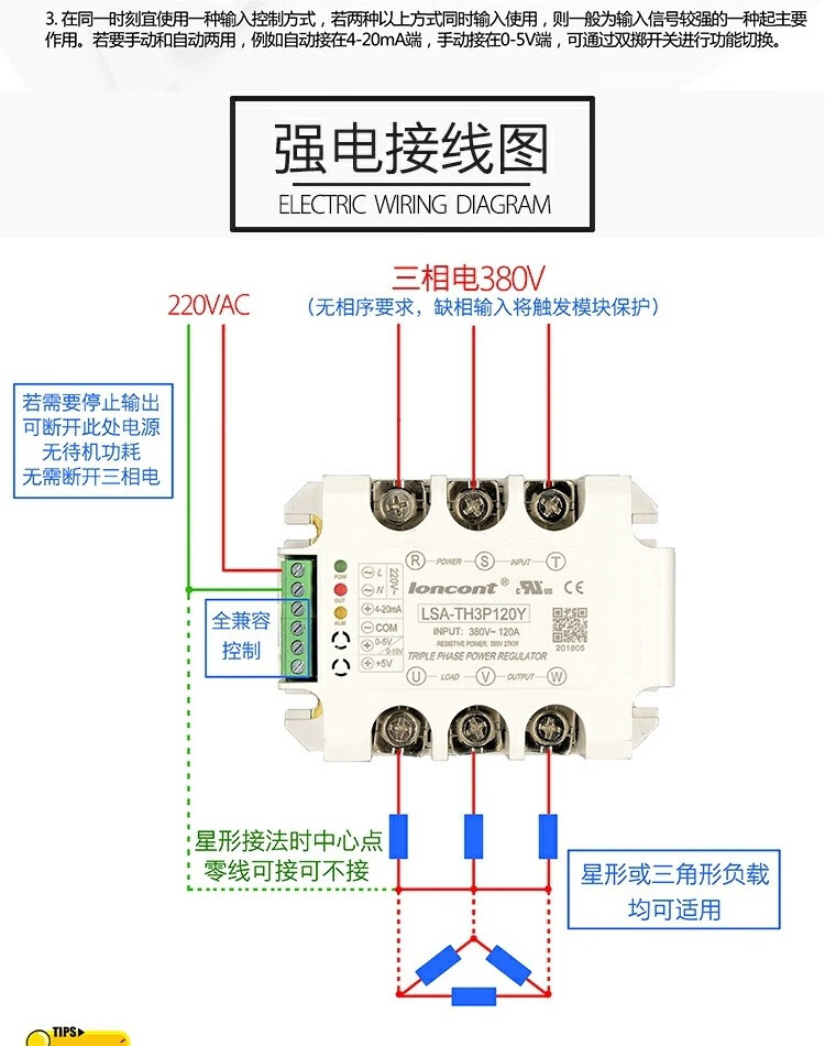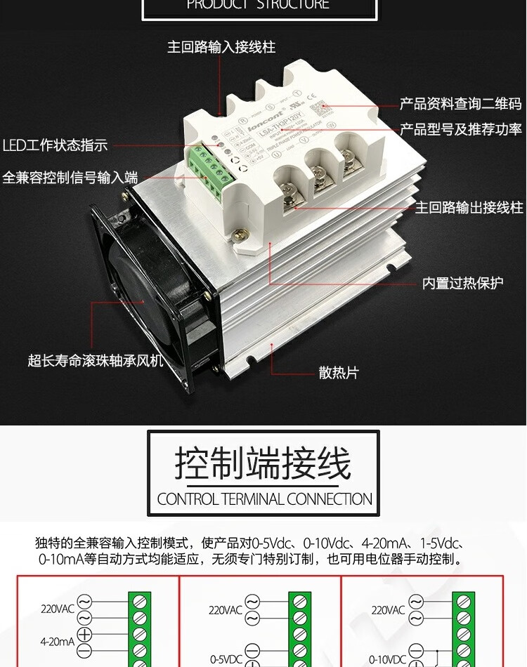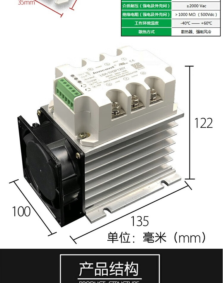 Three-phase AC voltage regulation module power regulator thyristor solid state relay dimming light and power heating tube temperature regulation 90A (20KW) with heat sink and ball fan