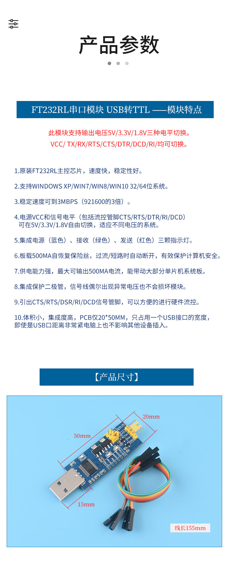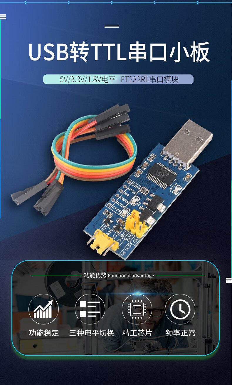 USB to TTL serial port small board 5V/3.3V/1.8V level download programming line FT232RL serial port module supports 3 types of TTL level modules imported FT232 chip