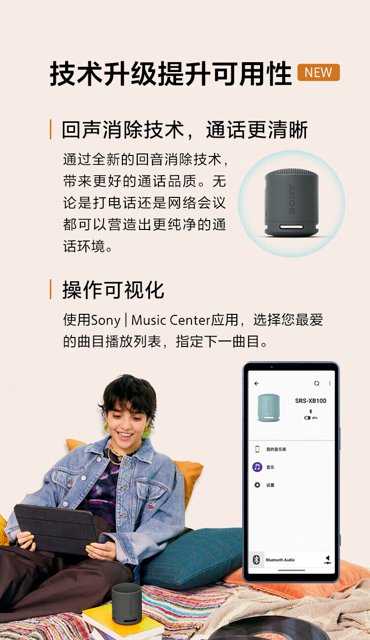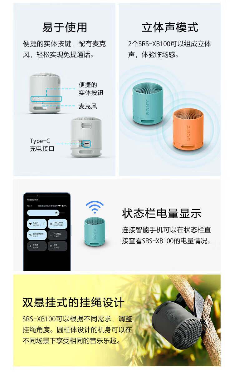 Sony (SONY) SRS-XB100 Wireless Bluetooth Speaker Mini Portable Audio Outdoor Subwoofer Heavy Bass 16 Hours Battery Life IP67 Waterproof and Dustproof Gift for Boyfriend, Girlfriend and Student Orange