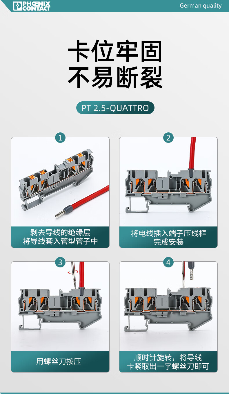 Phoenix PT2.5-QUATTRO3209578 two-in and two-out quick terminal block plug-in guide rail 3-position connecting strip FBS 35