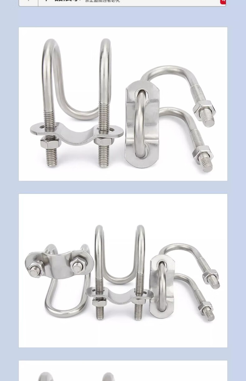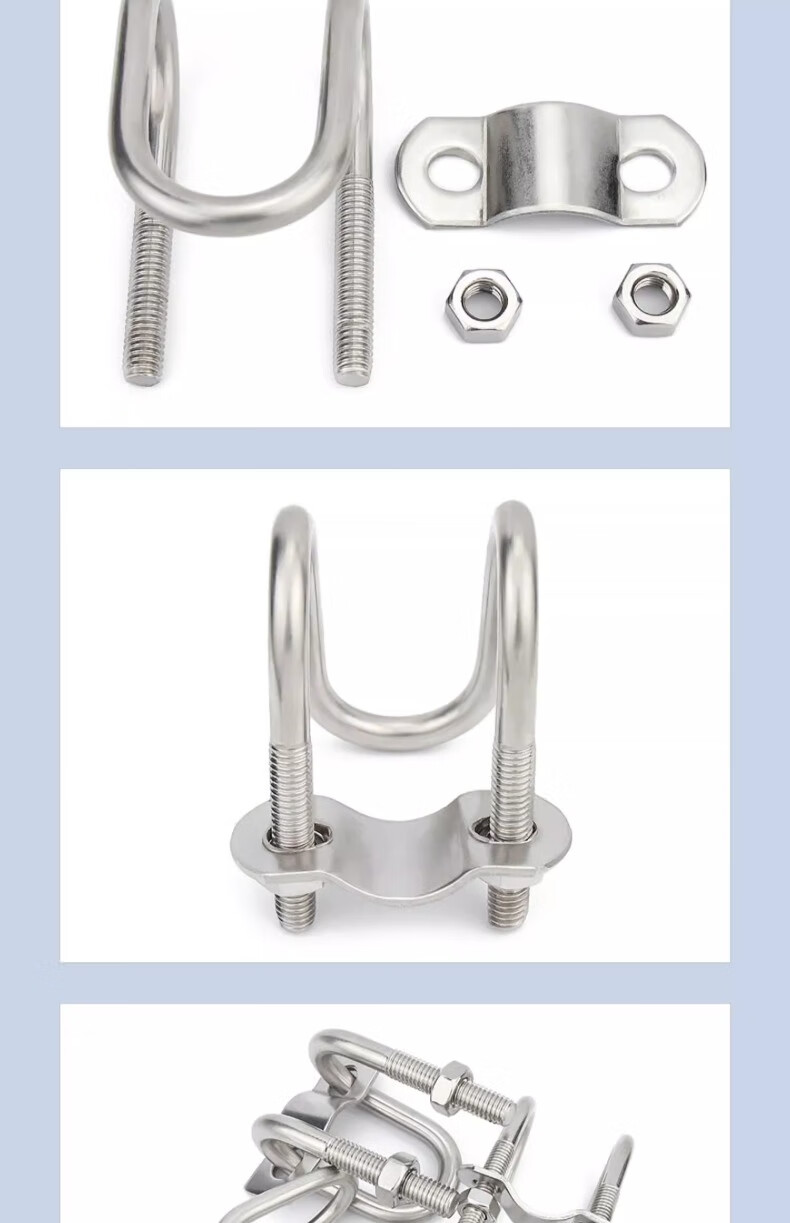 Jinchao 304 stainless steel double U-bolt screw U-shaped buckle cross water pipe clamp holder pipe clamp hoop M8*32*32-M8*1 inch*1 inch