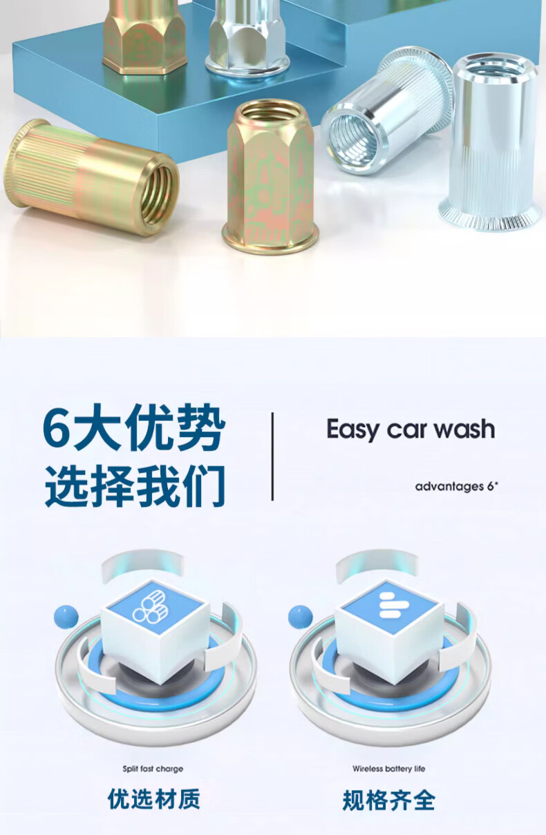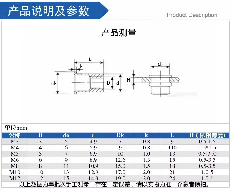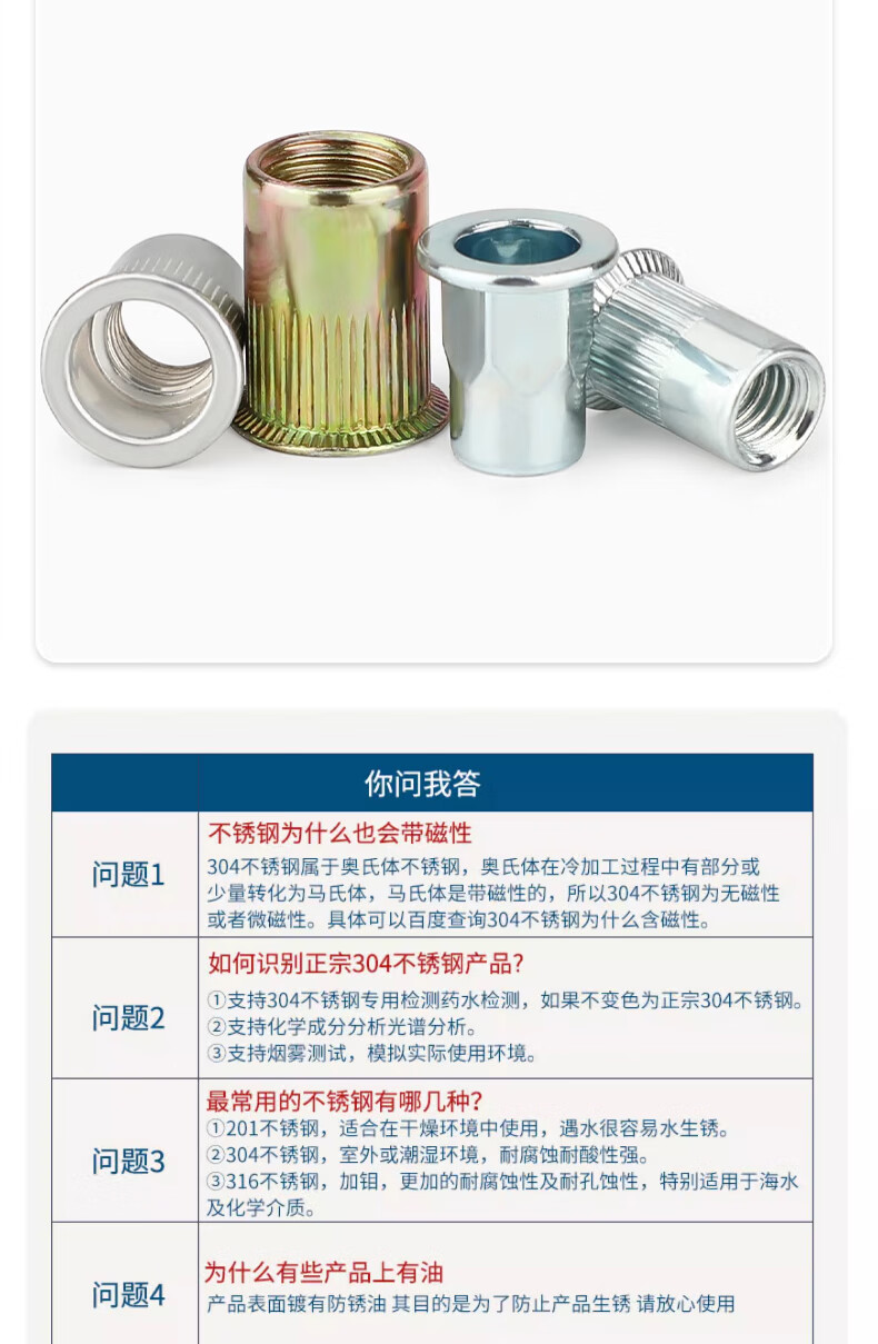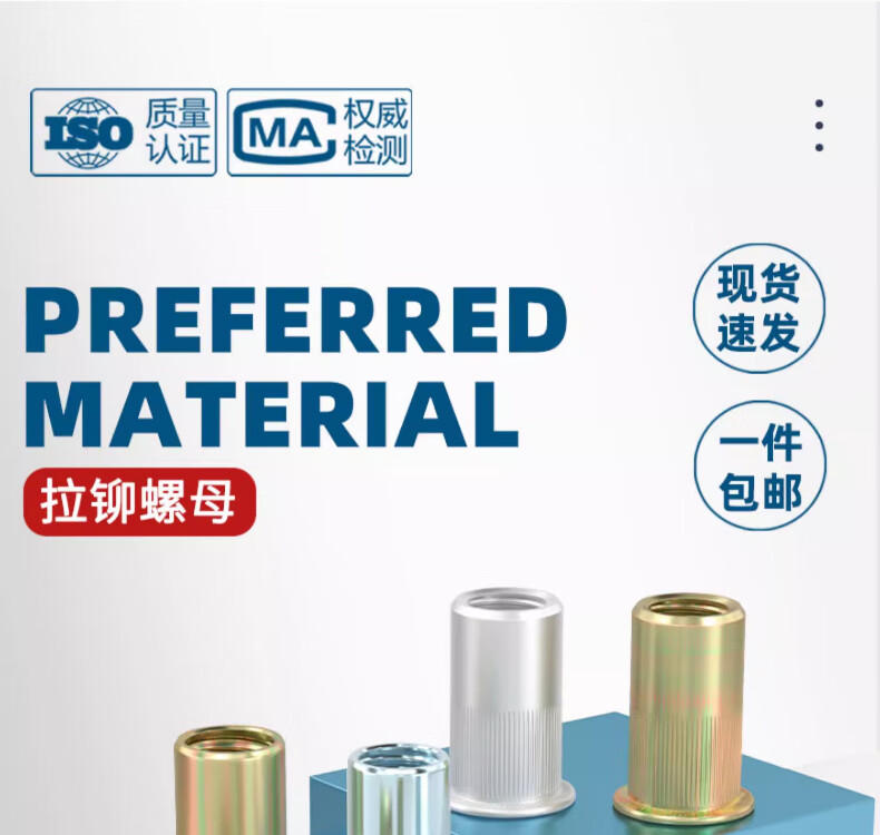 Tianzhuo Hardware national standard rivet nut pull nut pull nut pull cap rivet nut flat head vertical pattern small countersunk head screw cap complete list flat head white zinc M6 (50 pieces)