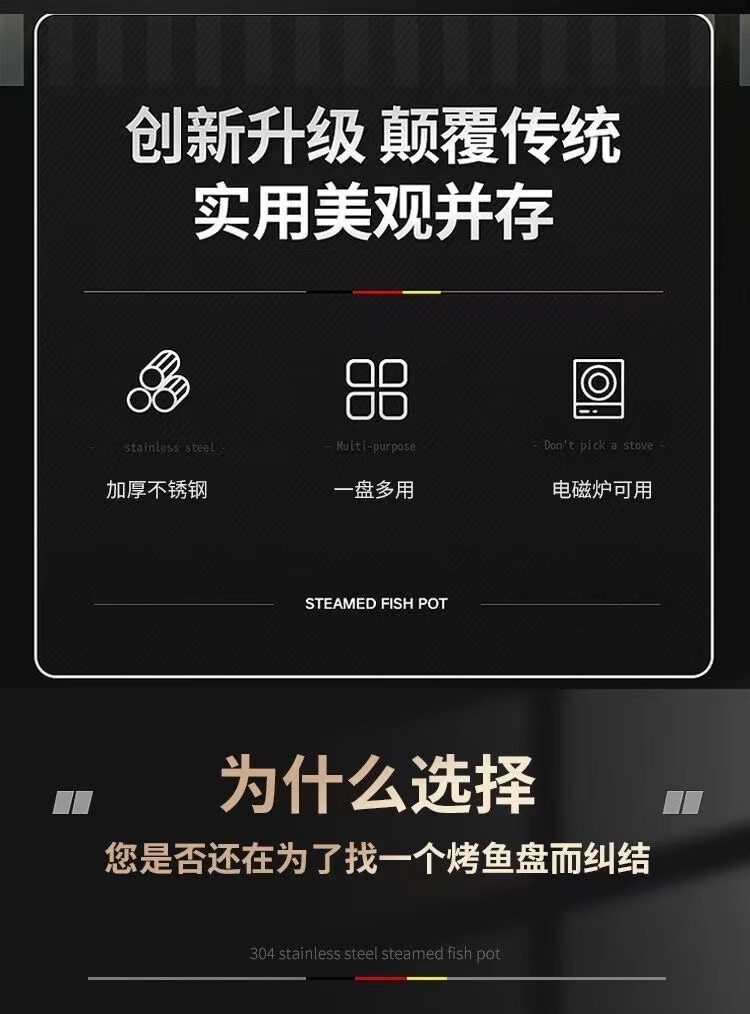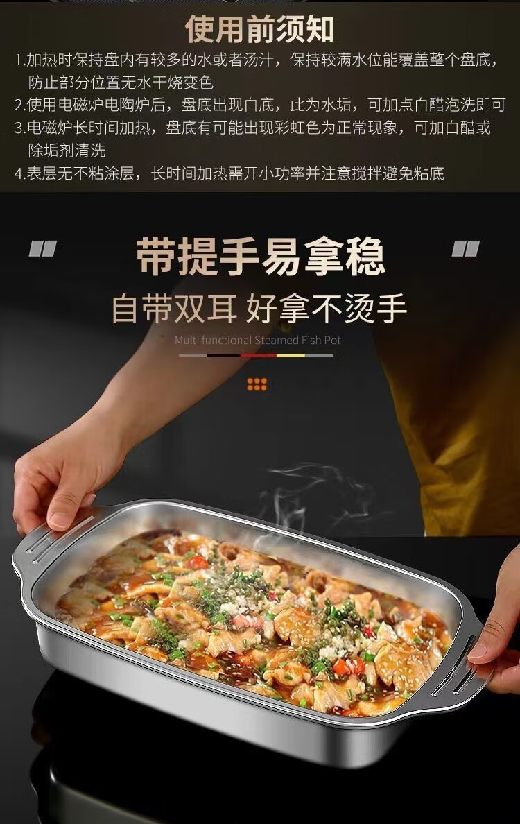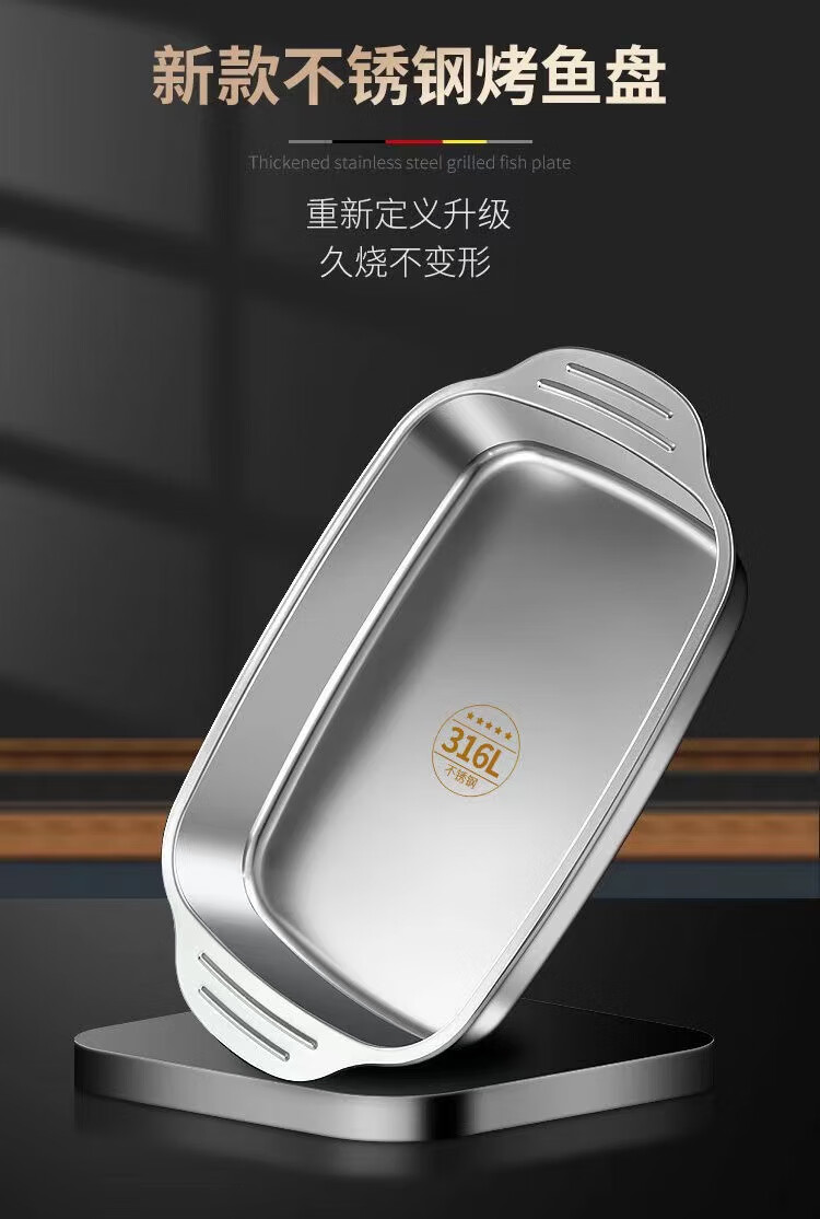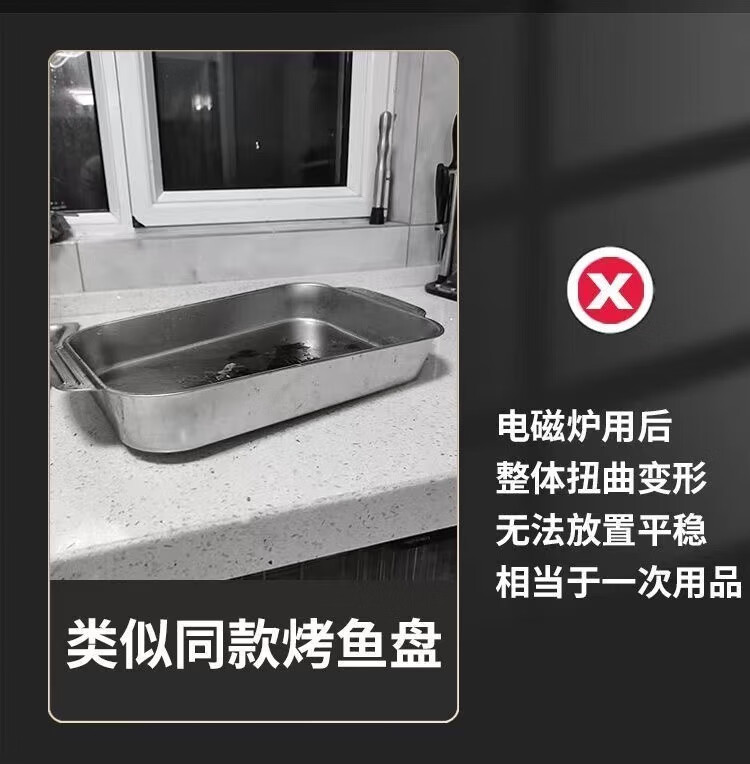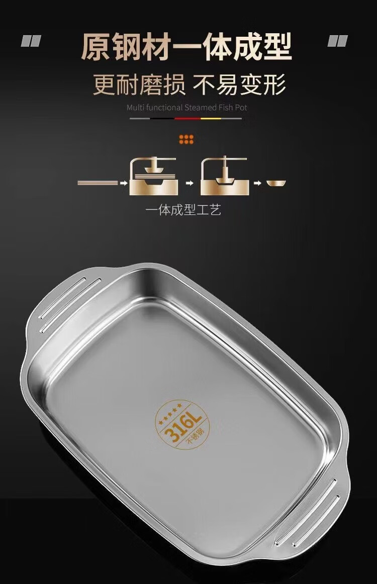 Sudel large size 316 stainless steel grilled fish tray rectangular tray for induction cooker 41cm*24cm*8.5cm deep large size