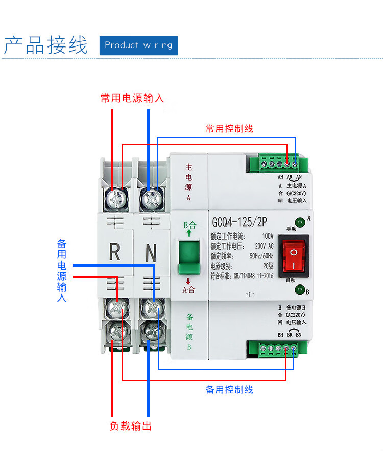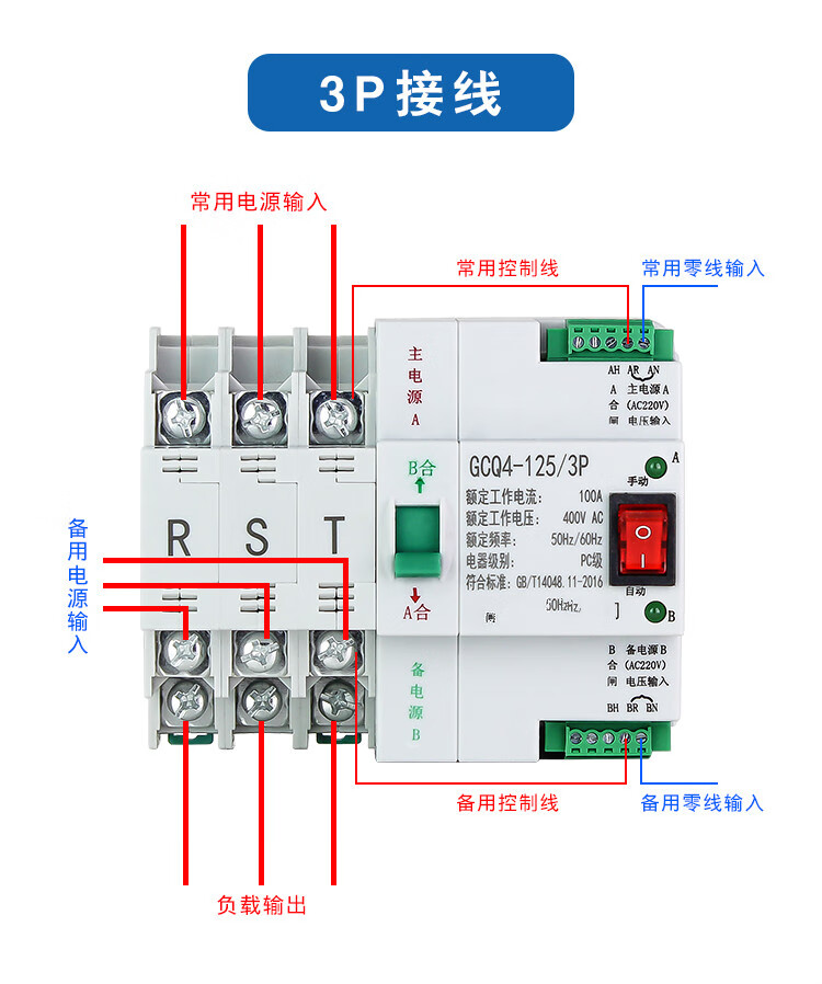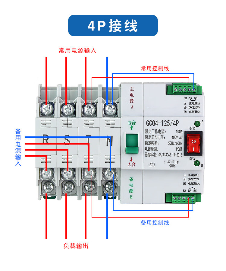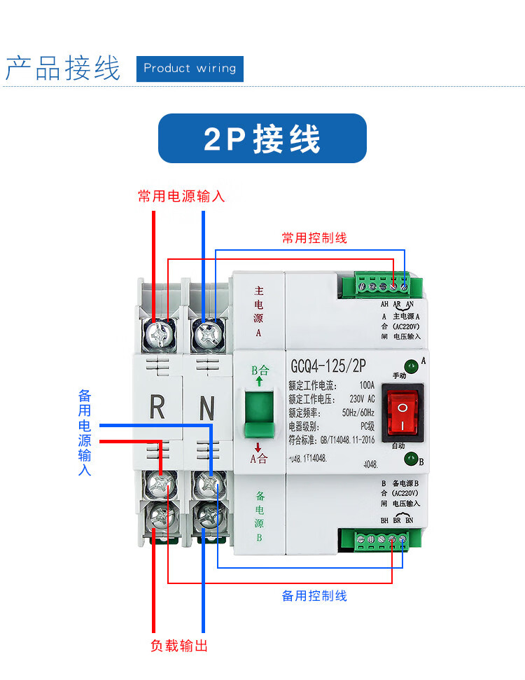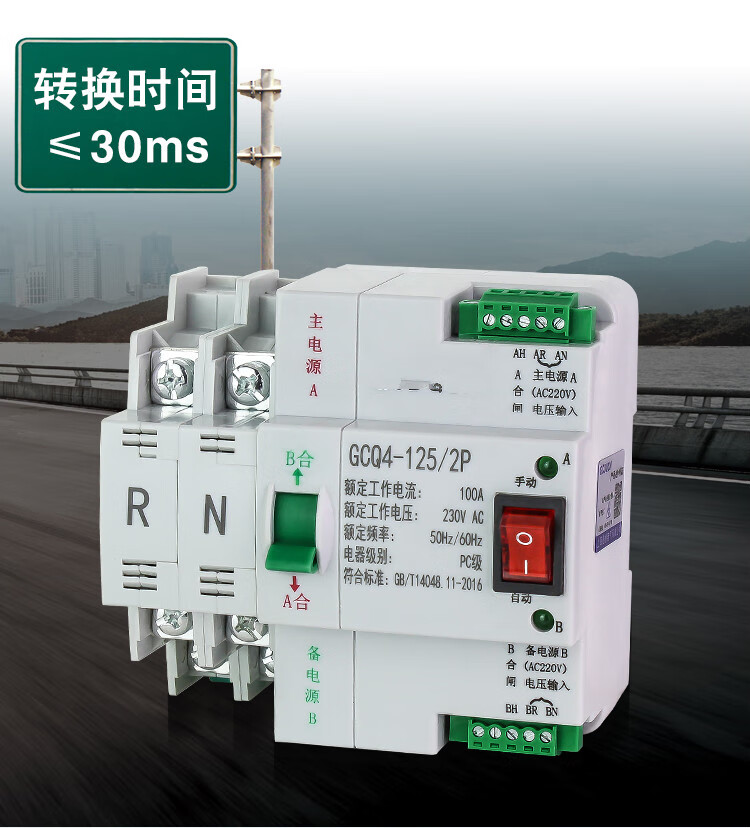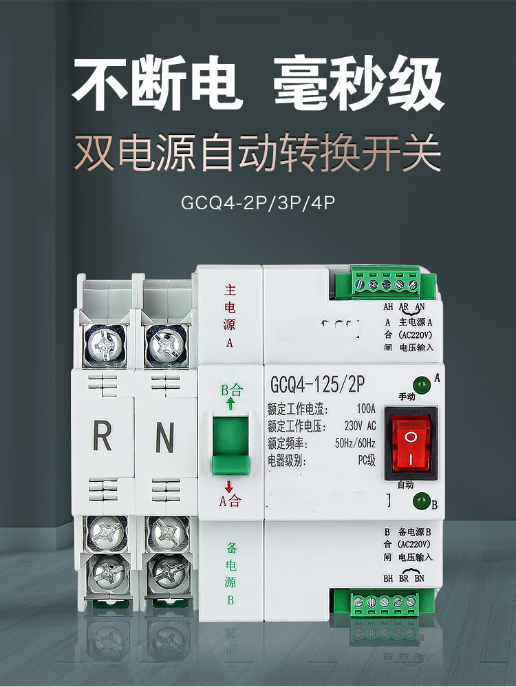 Dual power automatic transfer switch uninterruptible power supply ATS2P 4P three-phase 63A 100A timing transfer switch 2P 16A