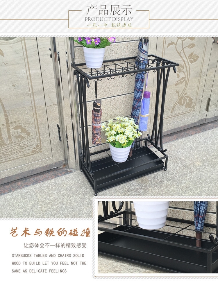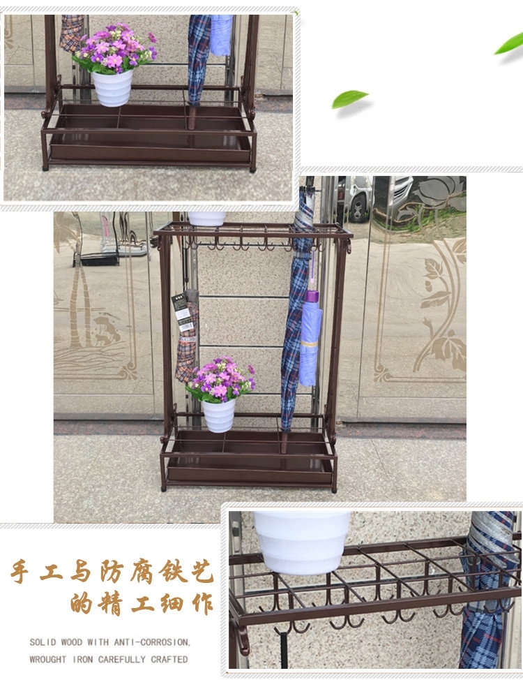 Umbrella stand hotel lobby floor-standing creative umbrella bucket iron umbrella storage rack hanging umbrella stand 36 holes 32 hooks bronze bold and enlarged