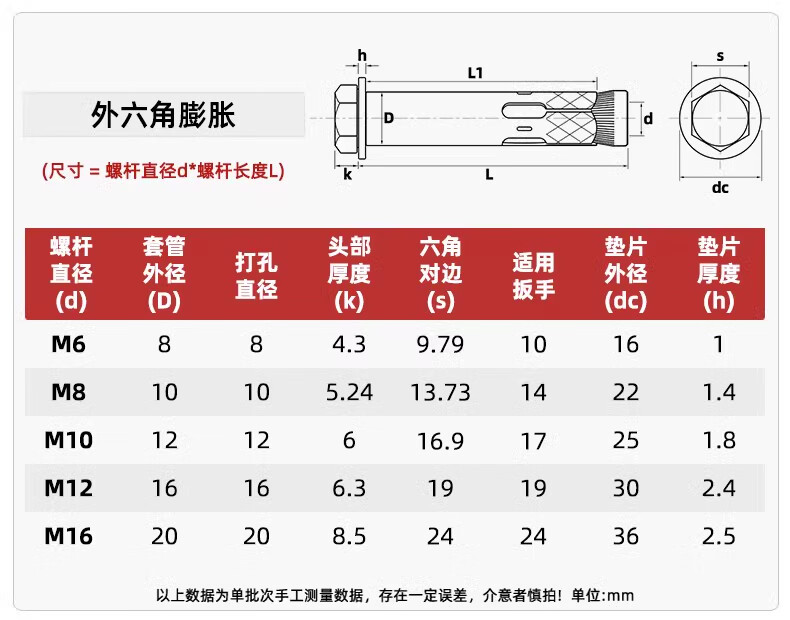 Tianzhuo Hardware National Standard External Hexagonal Internal Expansion Screws Complete Collection Built-in Explosion Implosion Floor Explosion Bolts M6M8M10M12 National Standard M8*100 5 pcs. Punch 10mm