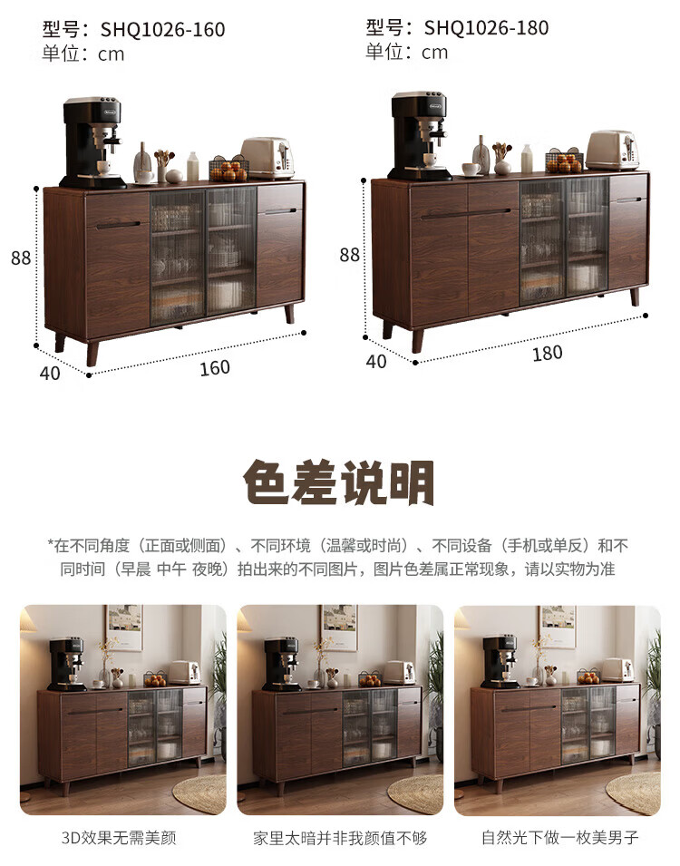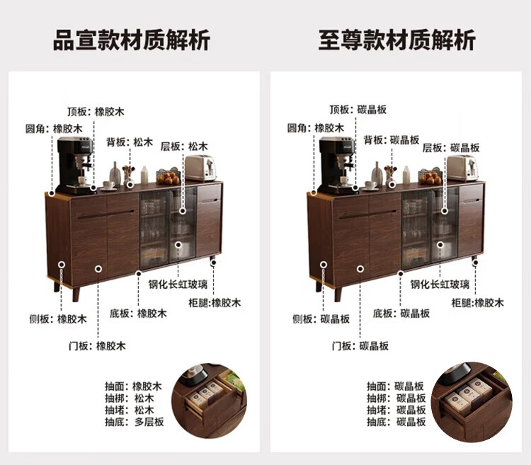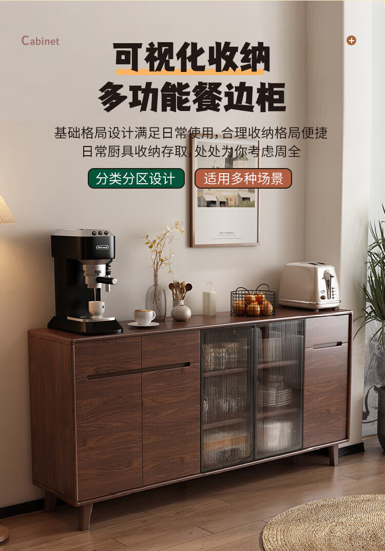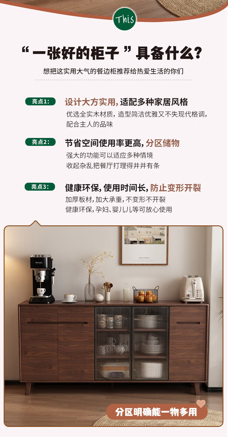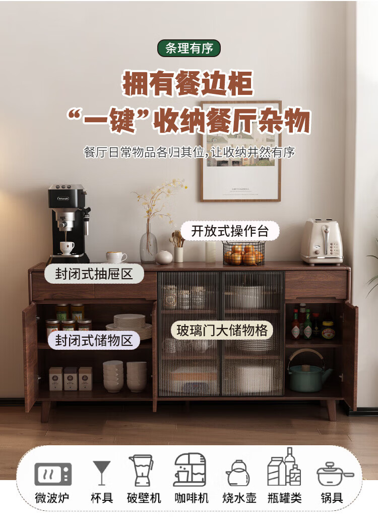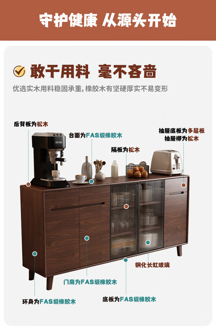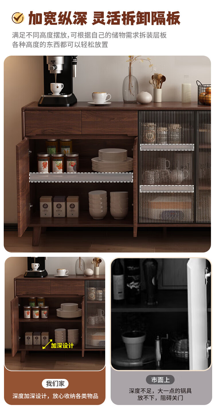 Rayle new Chinese sideboard living room wall wine cabinet tea cabinet multi-functional storage solid wood storage cabinet kitchen storage cabinet solid wood 1026 ~ length 80*width 40*height 88cm