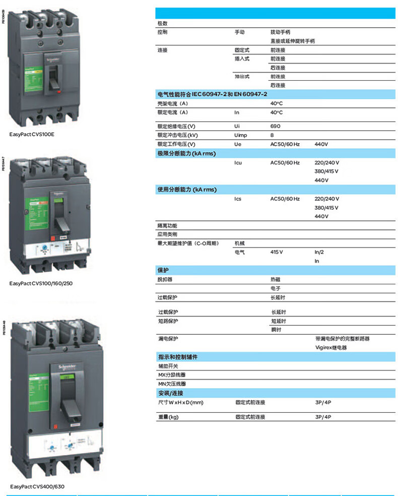 Plastic case circuit breaker air switch three-phase three-wire air switch CVS 3P80A 100A 160A 250A 16A 3P