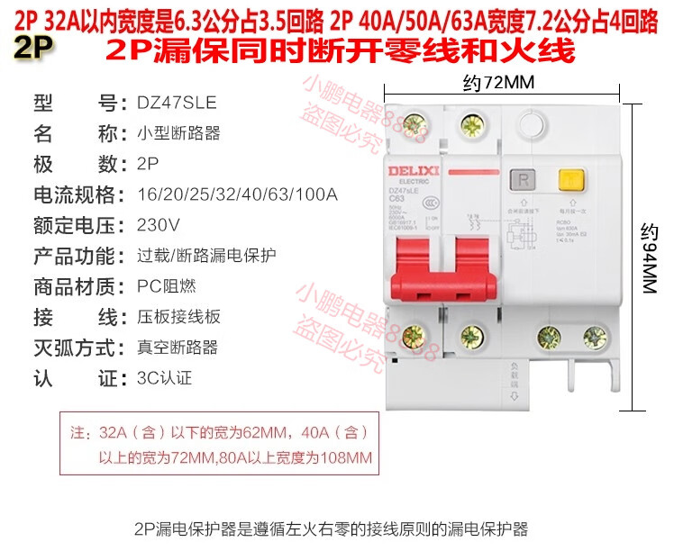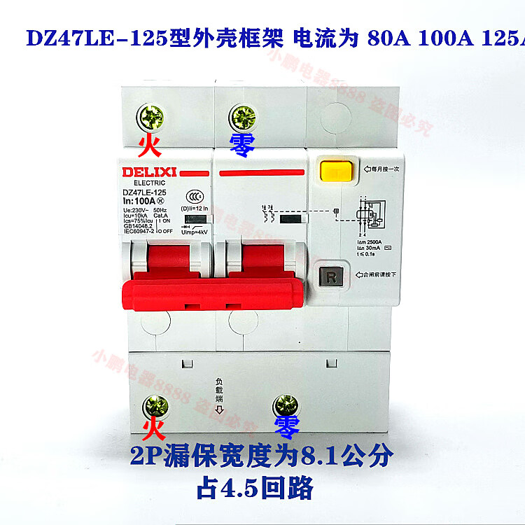 Leakage circuit breaker DZ47sLE 2P 32A 63A 100A two-phase leakage protection air switch 125A 2P 100A