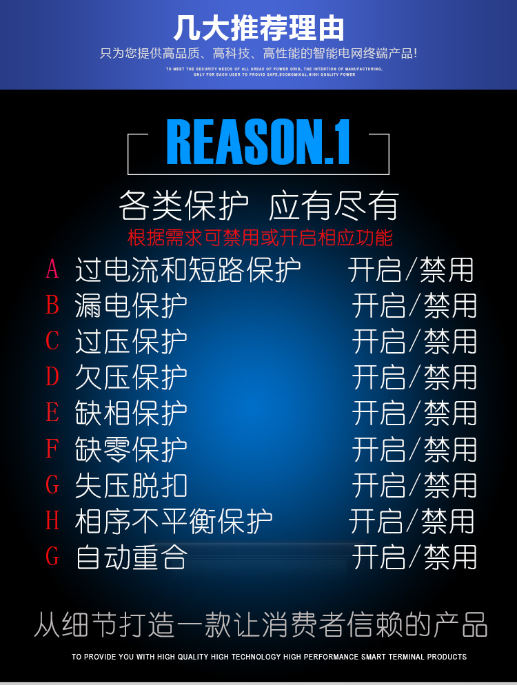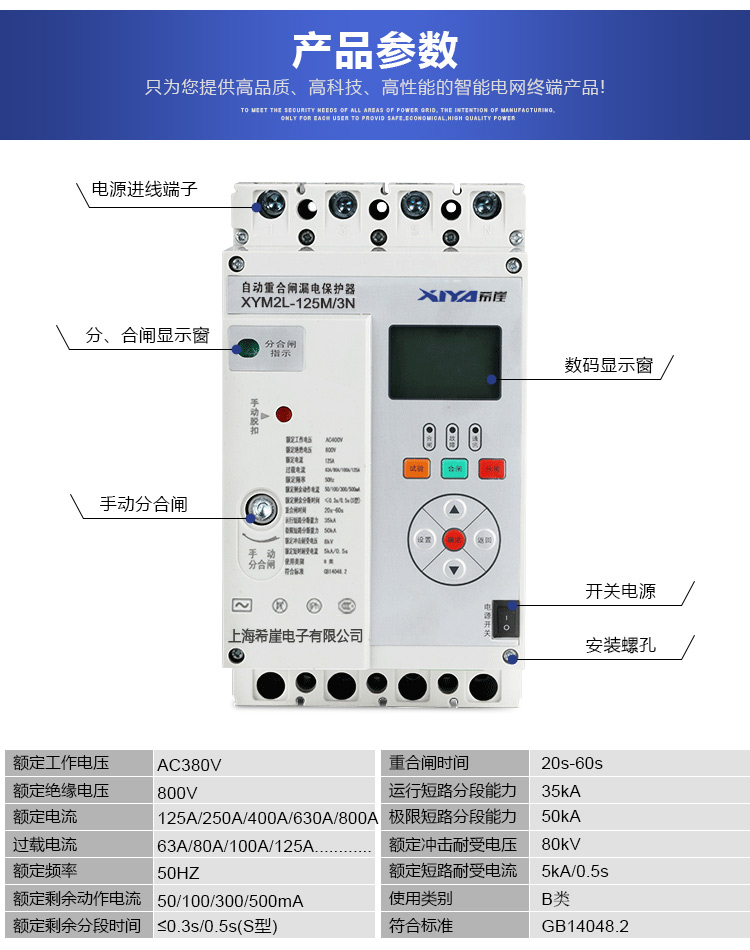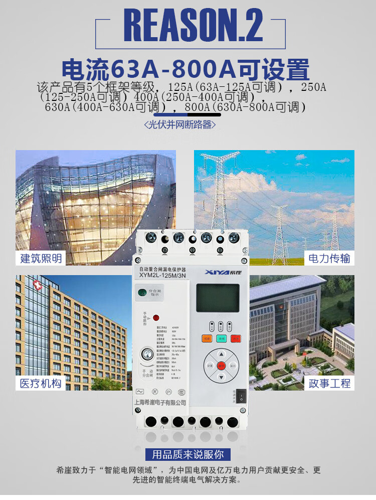 Three-phase leakage protector, automatic reclosing, residual current action circuit breaker, overvoltage, undervoltage and phase loss, photovoltaic 380V 630A 3P+N
