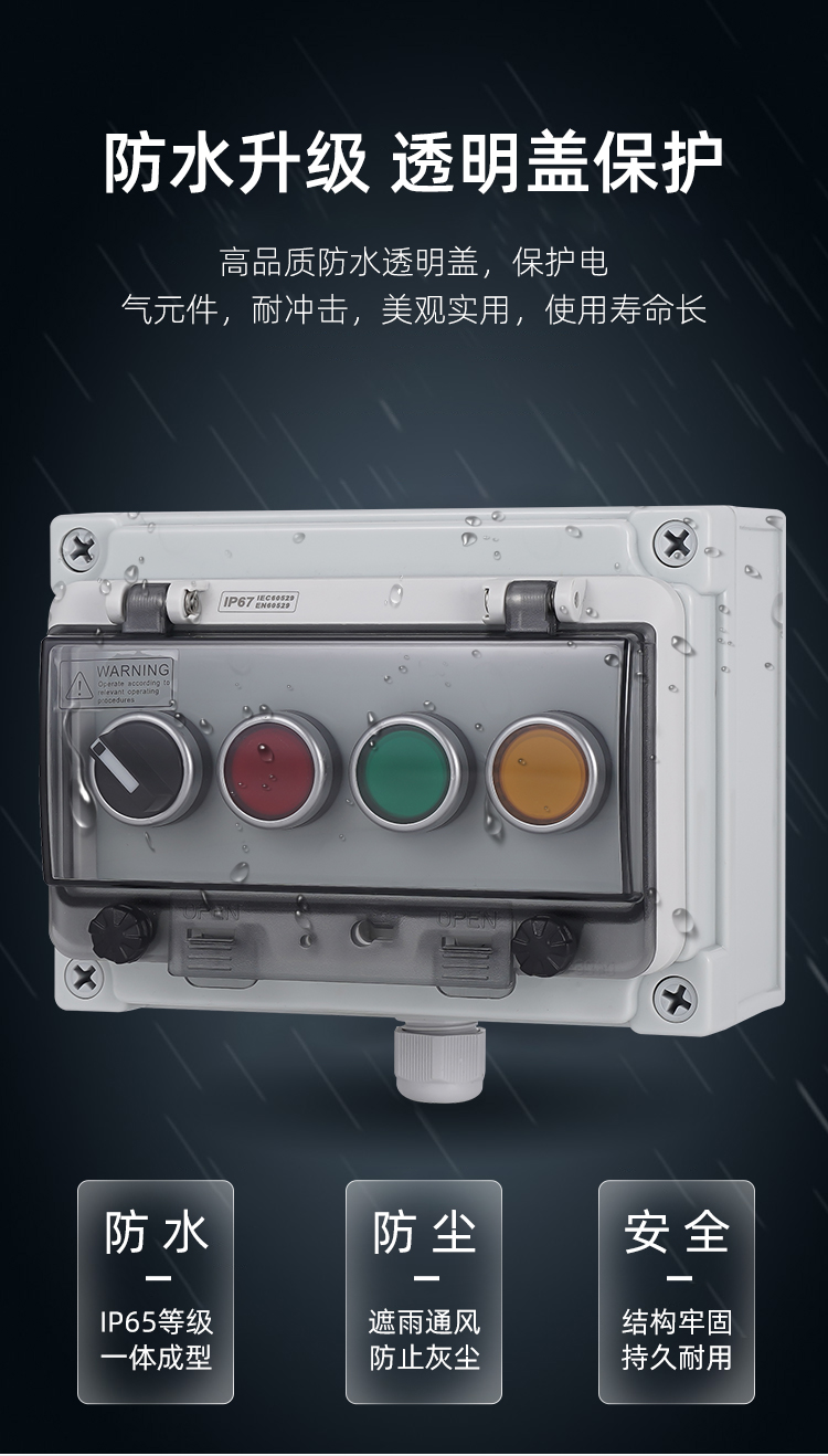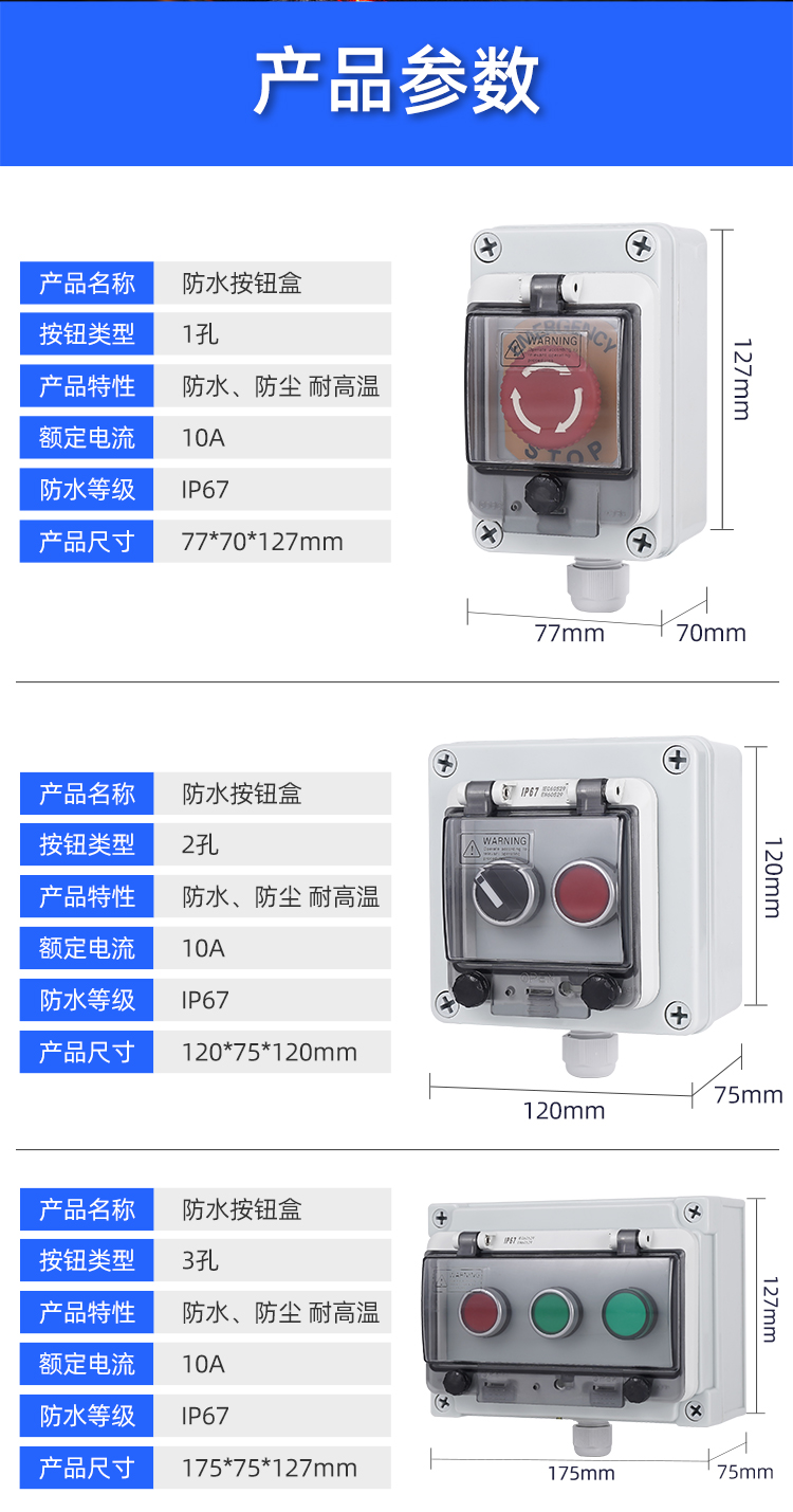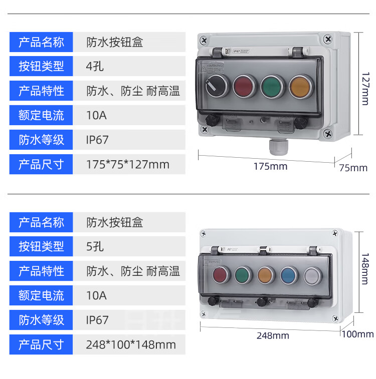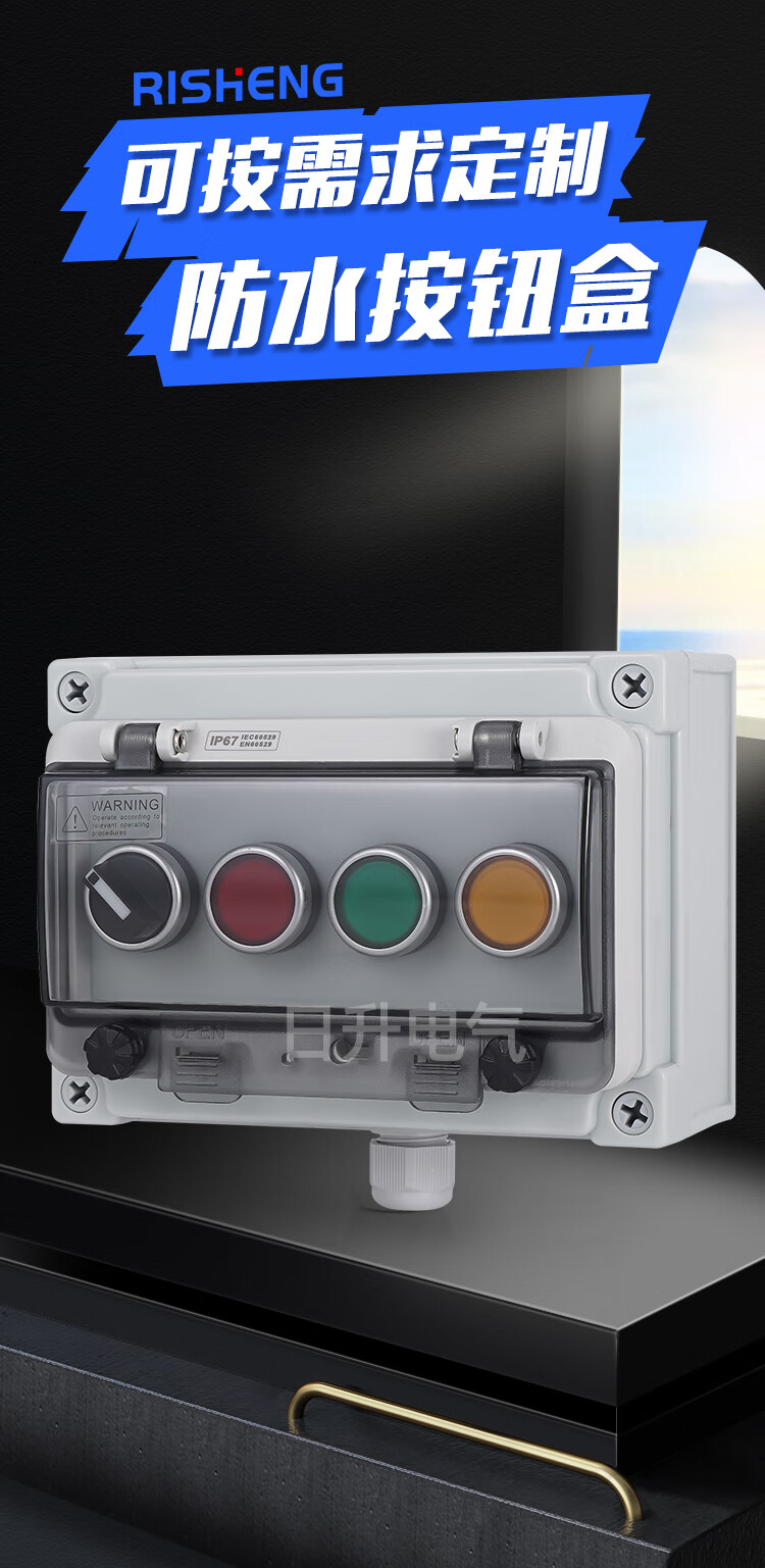 Risheng button box outdoor emergency stop switch button with waterproof box body IP67 industrial emergency stop control box one reset button