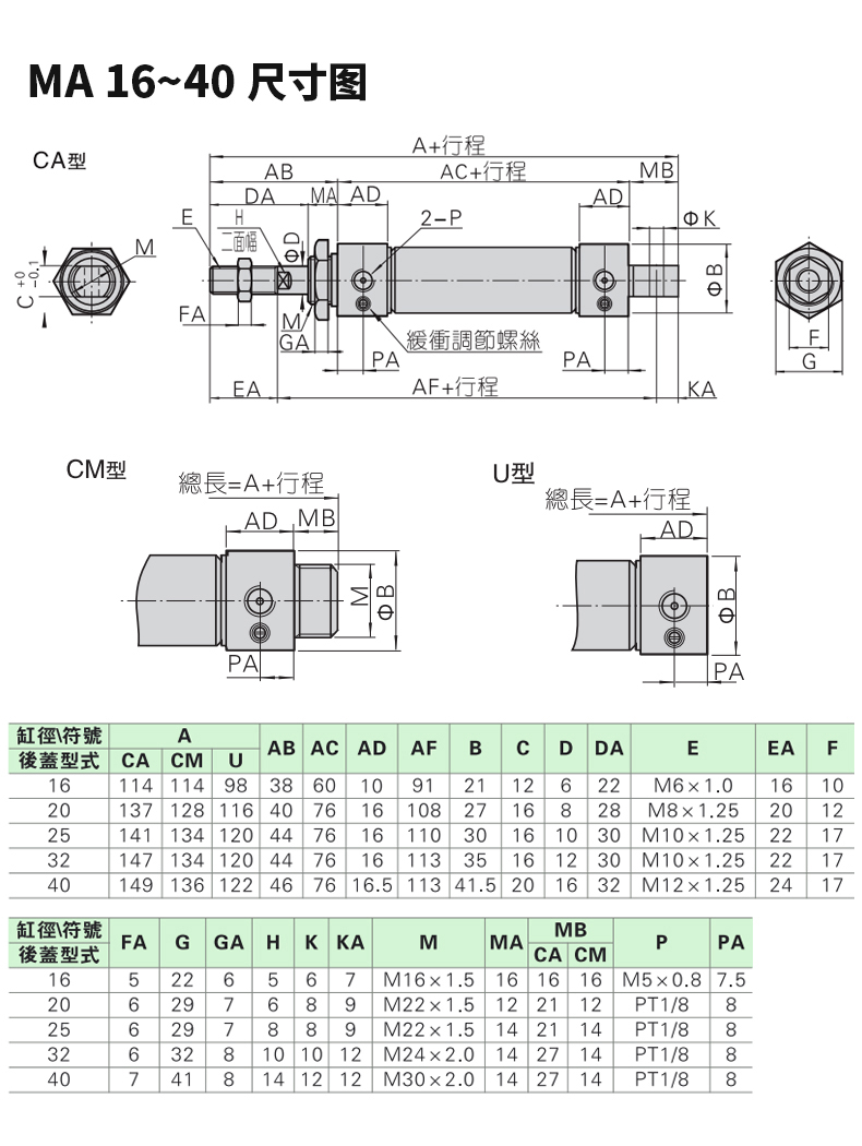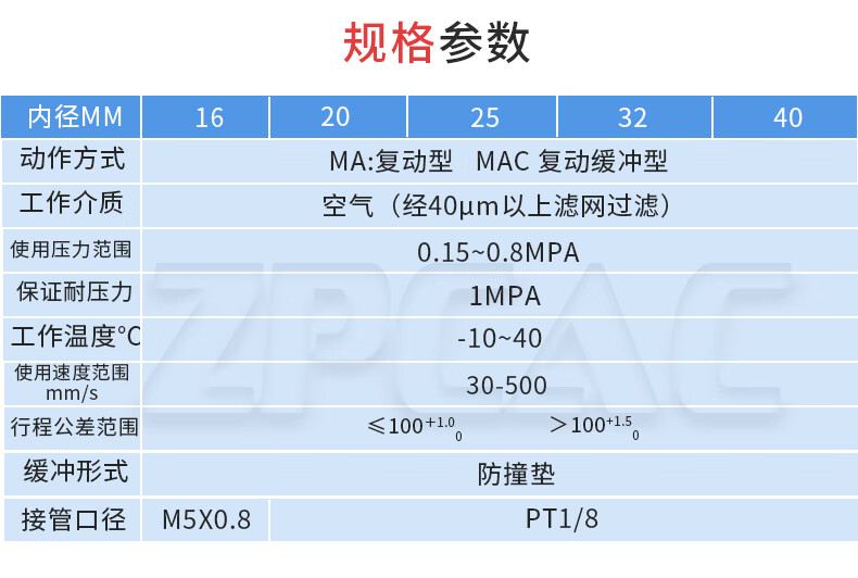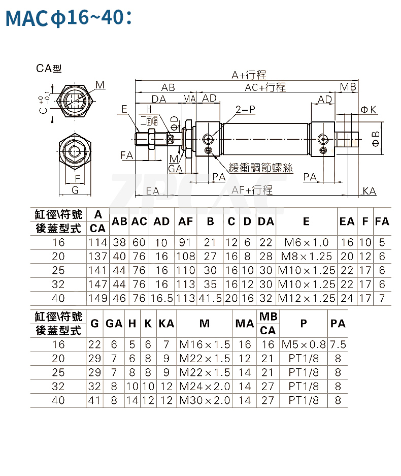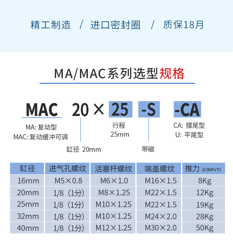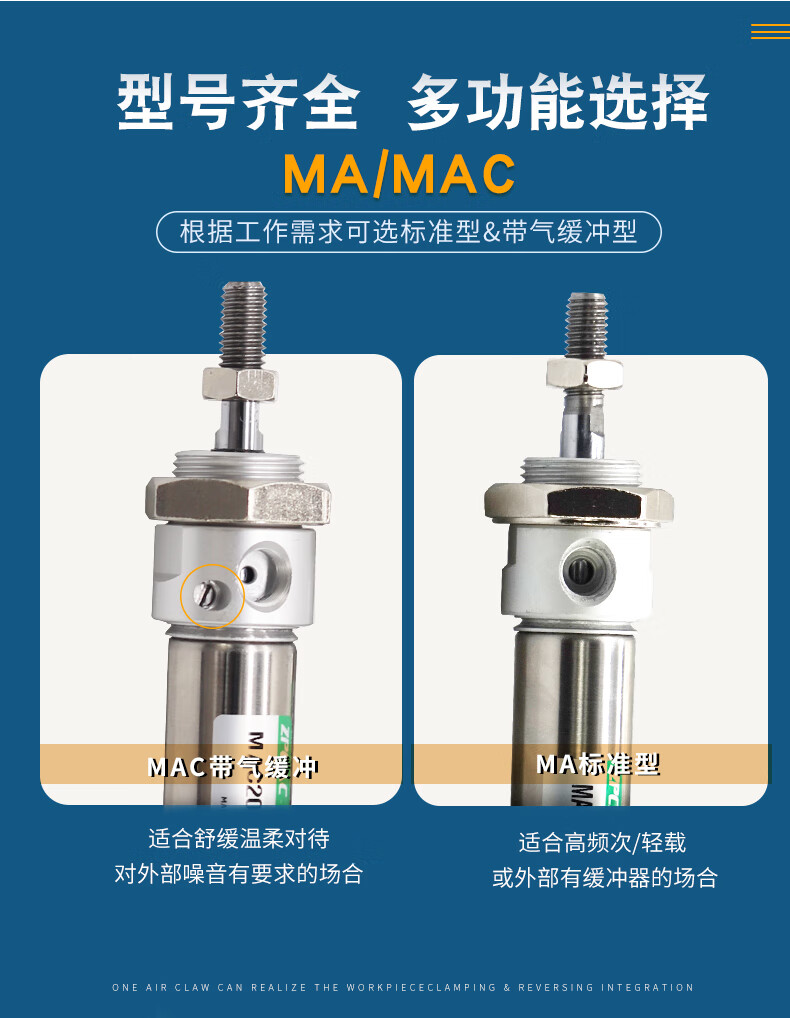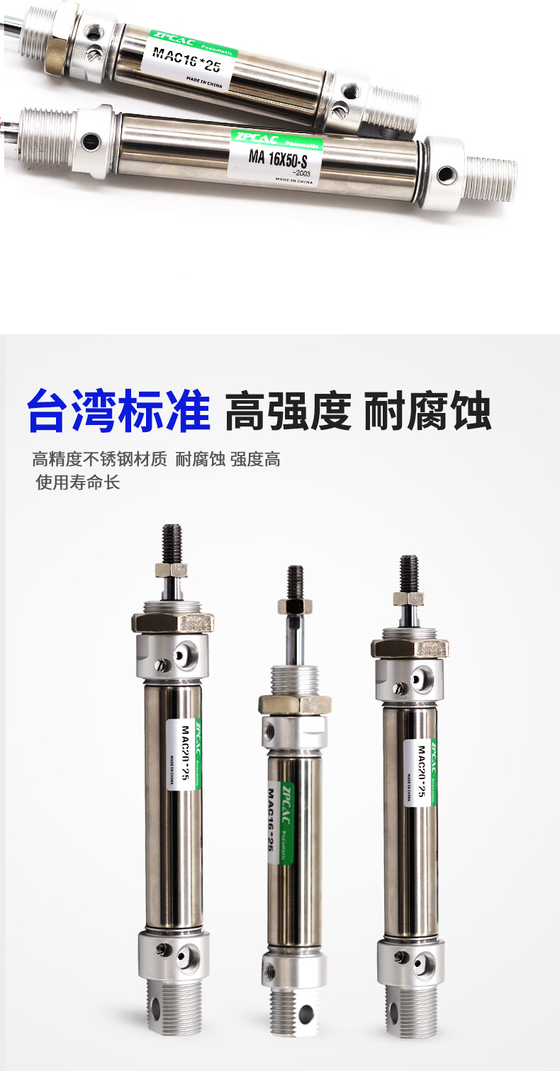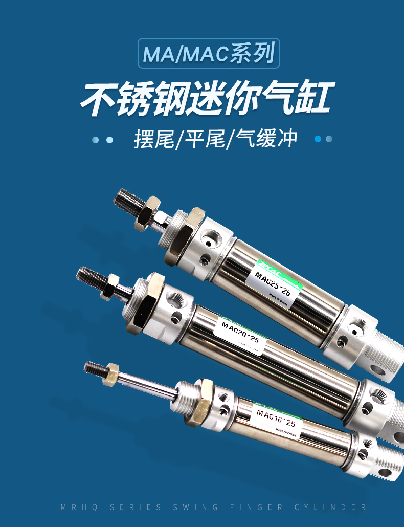 Small pneumatic stainless steel mini cylinder air buffer 16/20/25/32/40-25X50X75X100S MAC25-200-S-CA air buffer