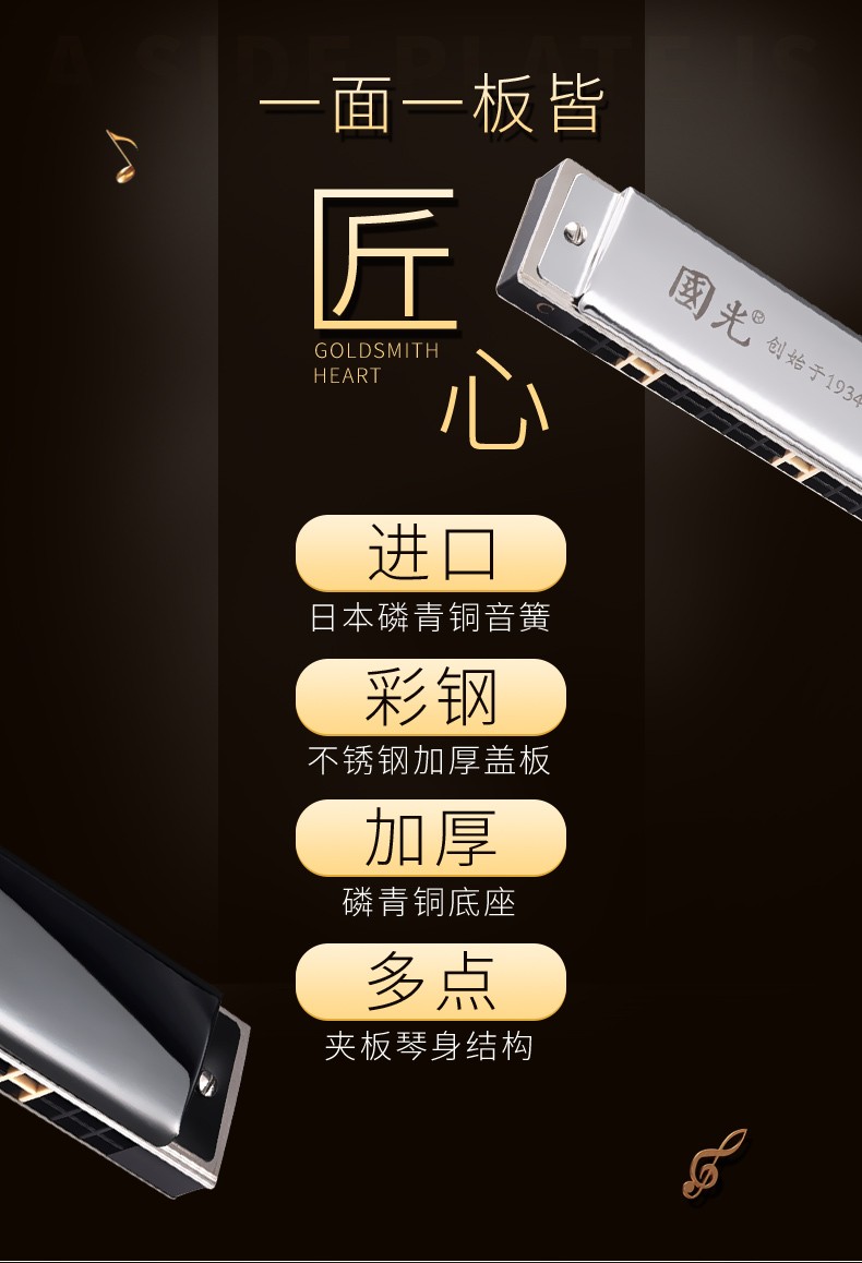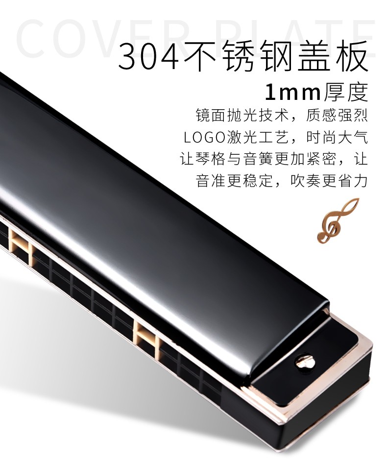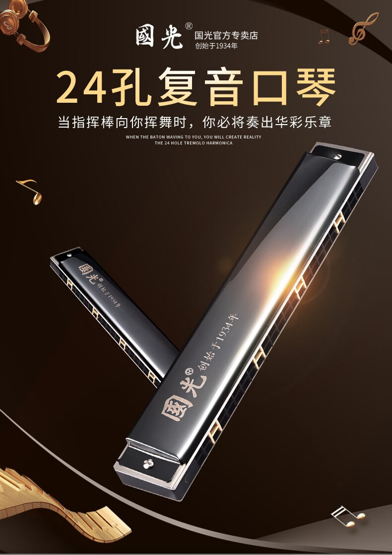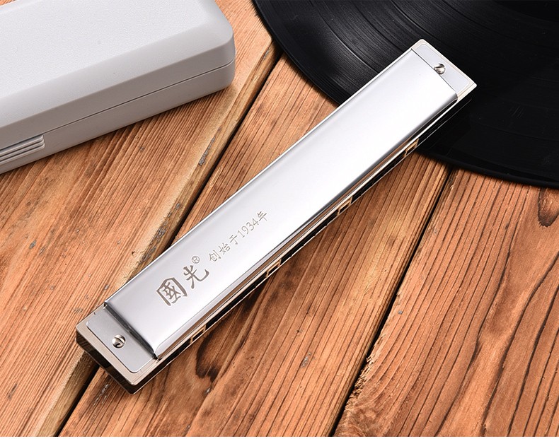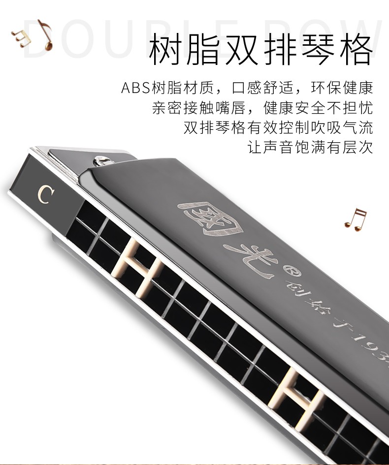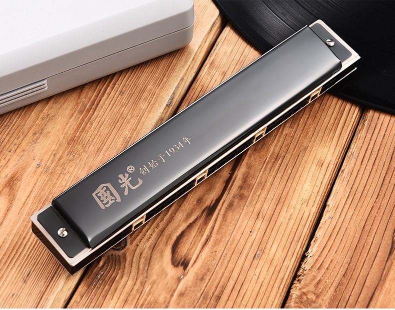 Guoguang 24-hole polyphonic harmonica imported gongs 7-tone set 12-tone set harmonica adult beginner stage performance piano black 7-tone set comes with accompaniment USB flash drive
