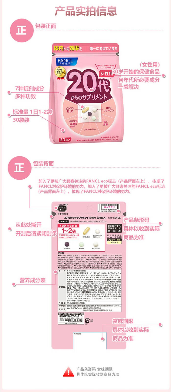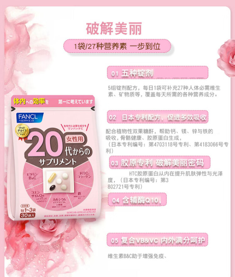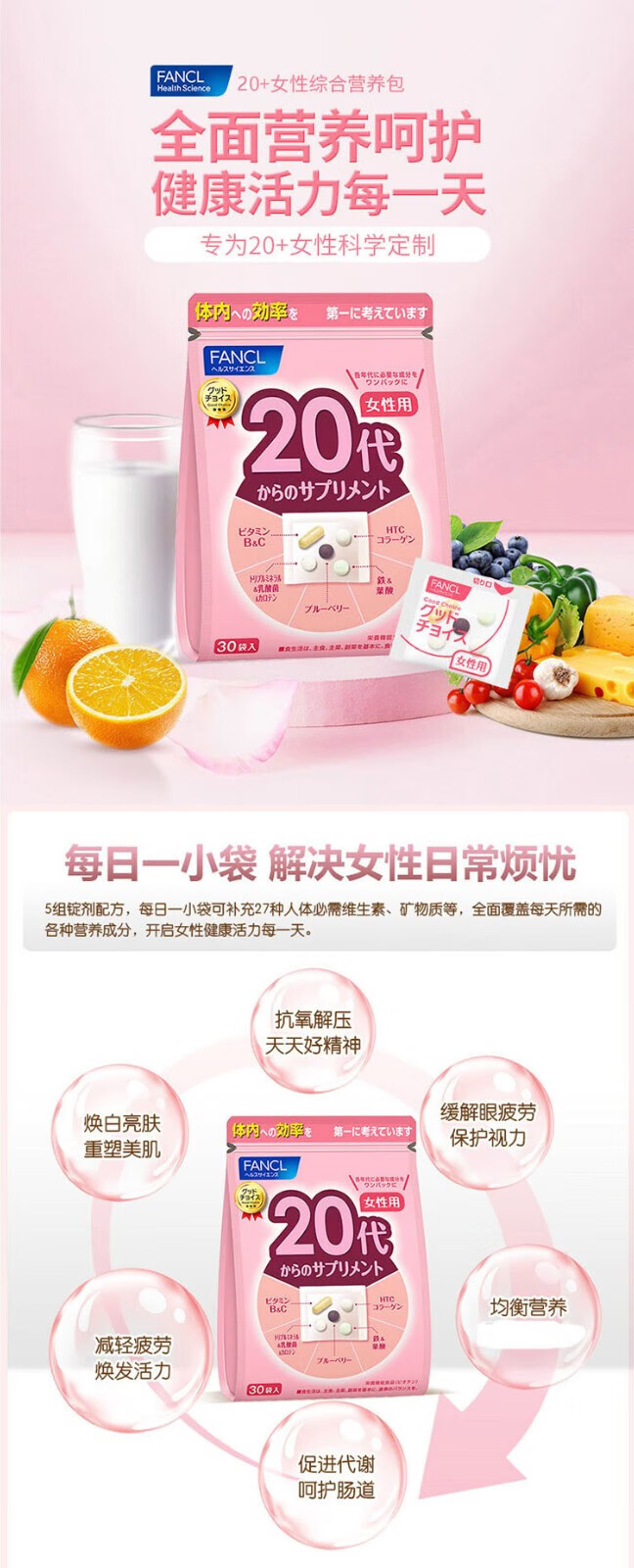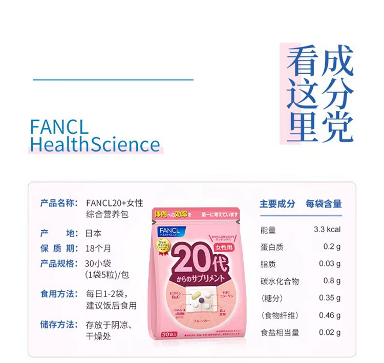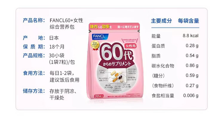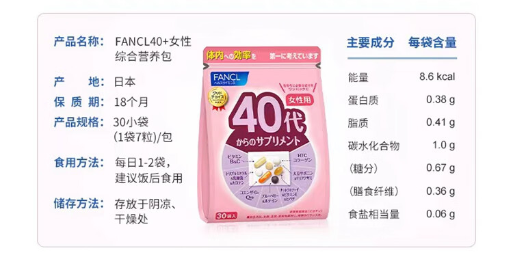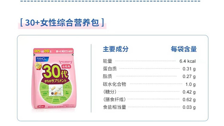 FANCL Women's Multivitamin Nutrition Pack Multidimensional Nutrition Balanced Body Immune Regulation Walmart 30 Bags 59g 40th Generation