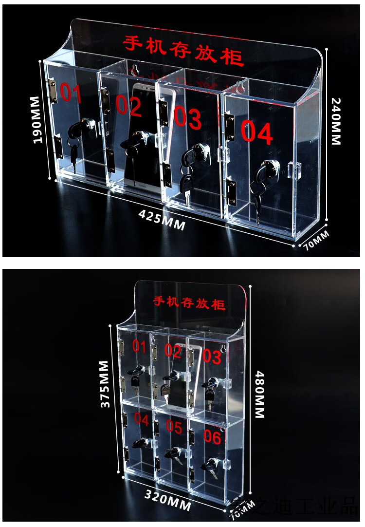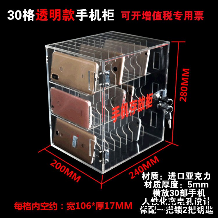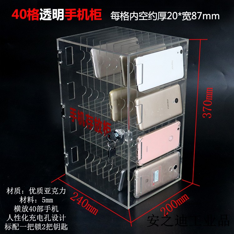 Customized and suitable for small single student mobile phone storage mobile phone storage cabinet employee storage box transparent thickened USB cable hole single door mobile phone cabinet