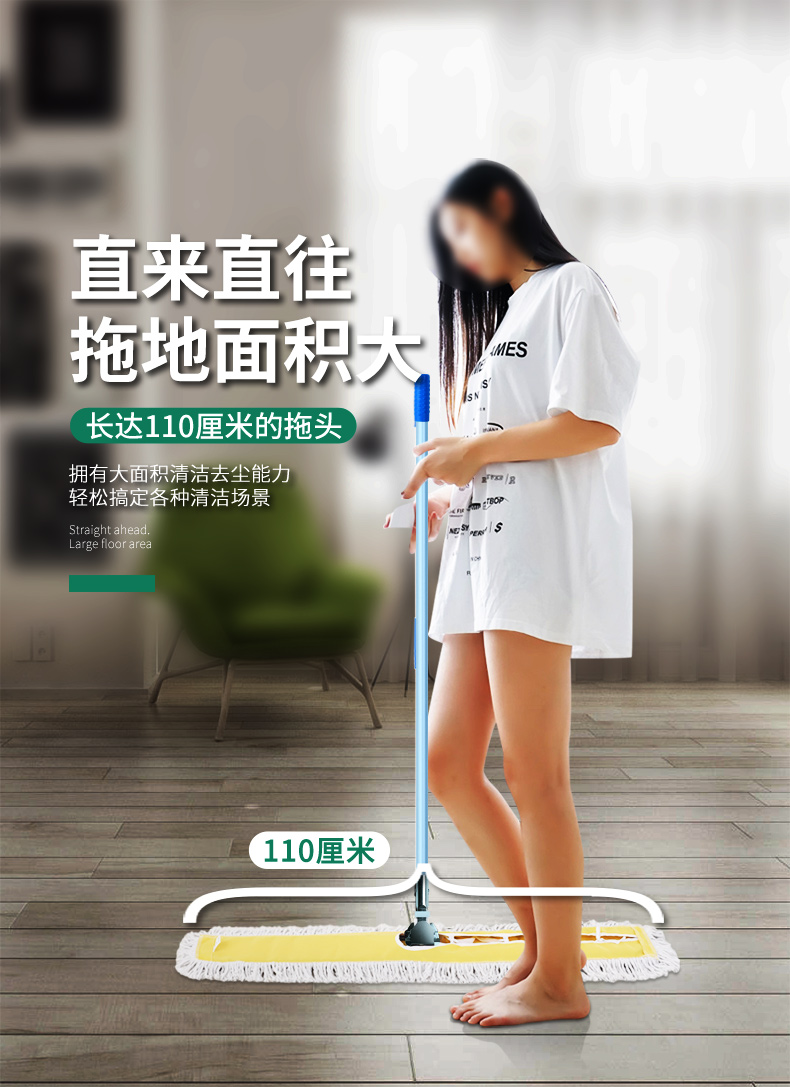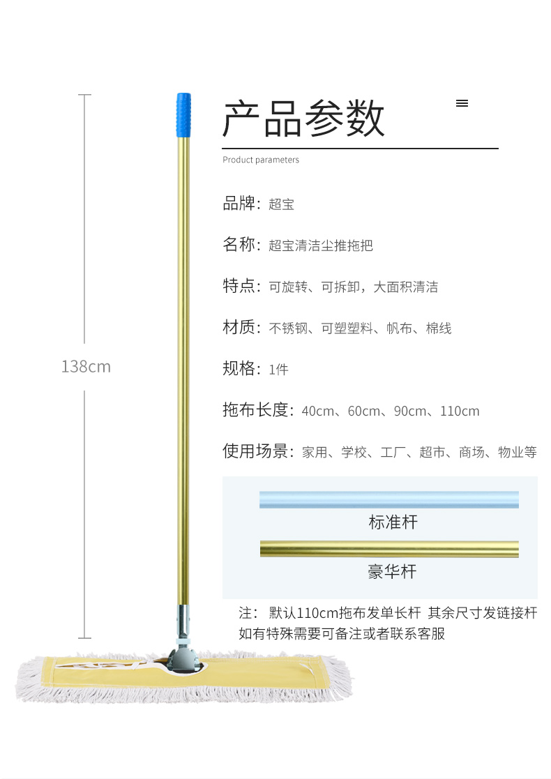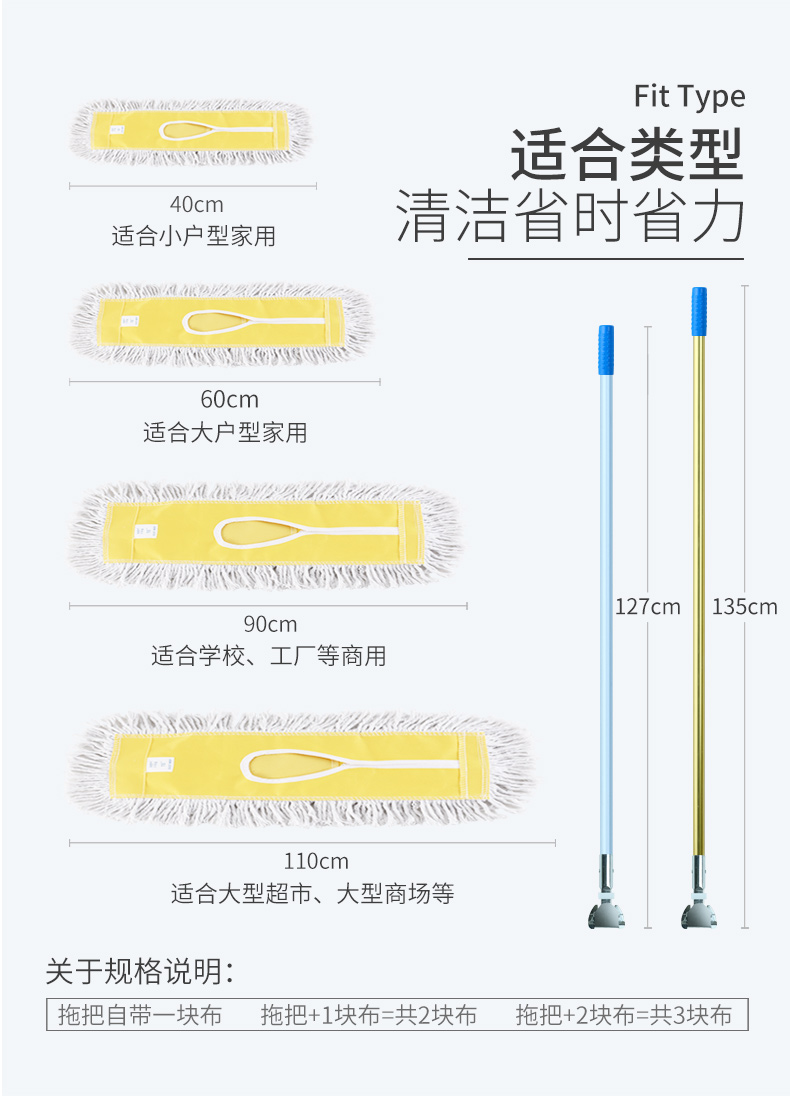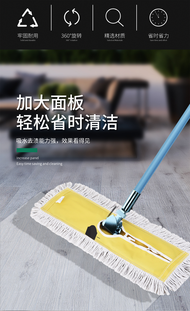 Dust push flat large mop factory hotel 90 extended 110 cotton line mop large floor mop standard dust push rod
