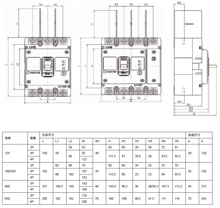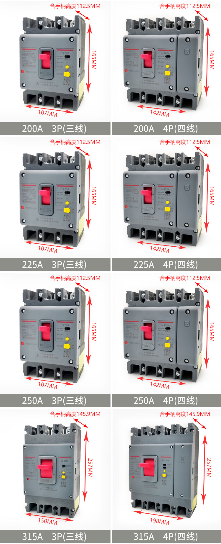 Plastic case circuit breaker 380 air switch with leakage protection CDM3L three-term four-wire 3P4P350A 350A 3P