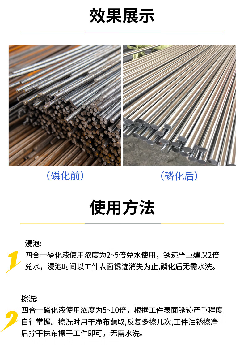 Phosphating liquid hand rub three-in-one, four-in-one, six-in-one phosphating liquid, degreasing, rust-proofing, anti-rust phosphating agent, pickling and phosphating, four-in-one phosphating liquid, 10 times concentrated original solution