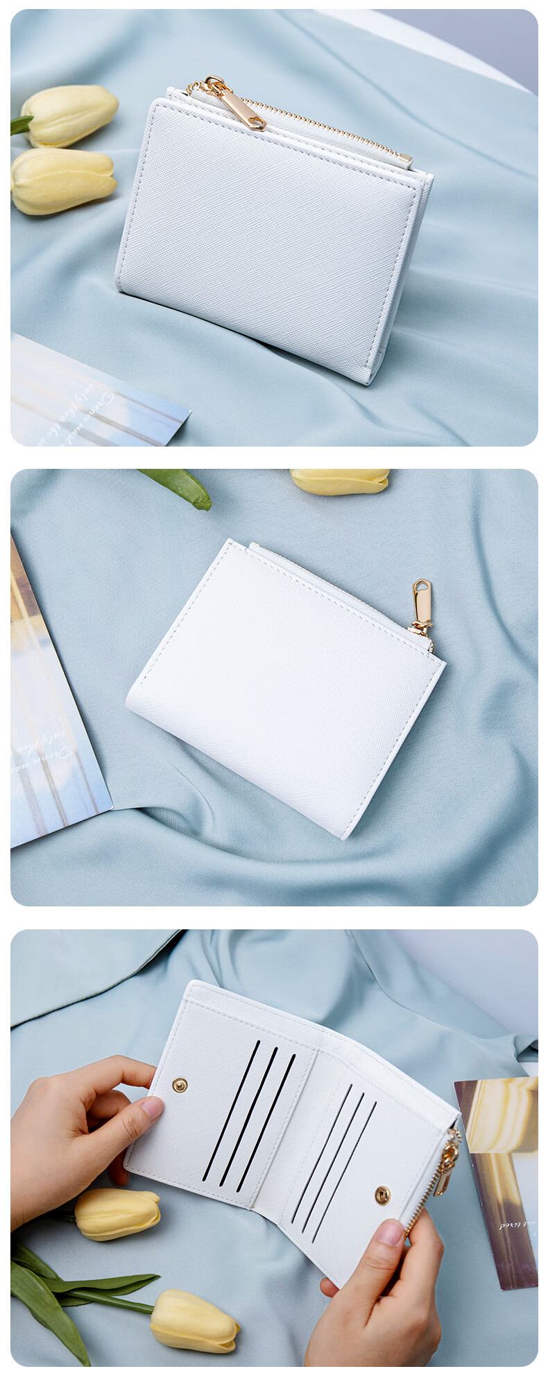 Dr. Meilun's customized logo wallet photo pattern handmade card holder for women one-in-one two-in-one niche design high-end white short regular version