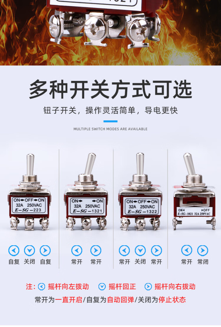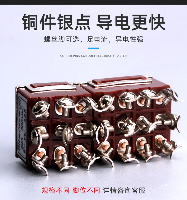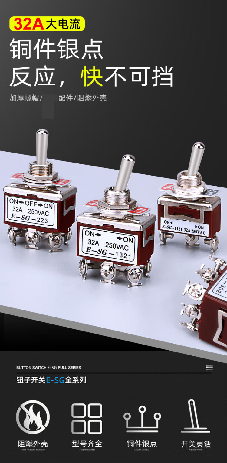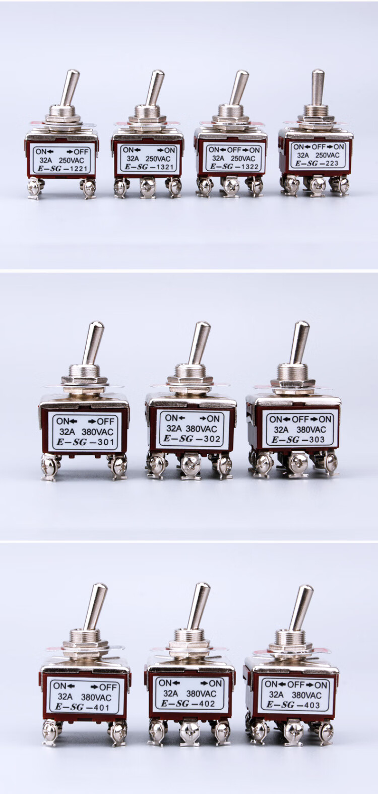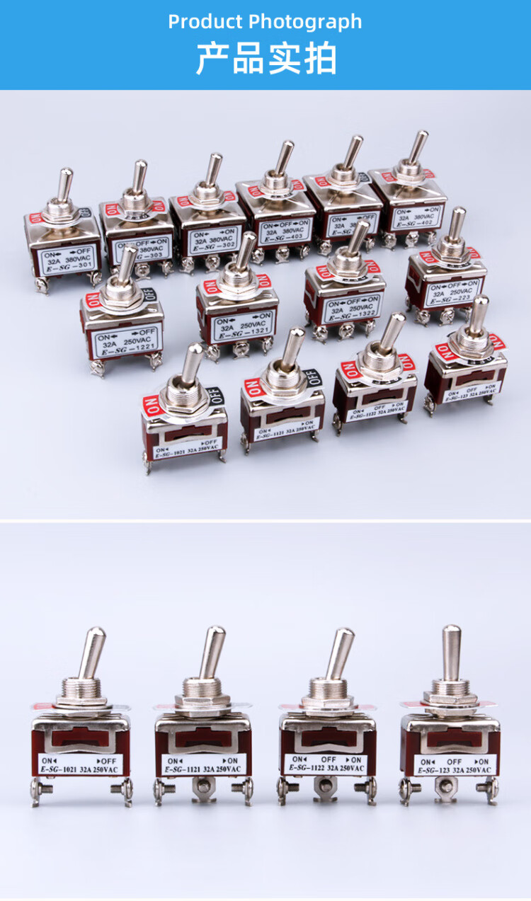 Toggle switch 32A silver point high current rocker switch 1322 two-speed 6-pin 3-speed twist switch toggle switch 1021A (2-pin 2-speed) copper silver point