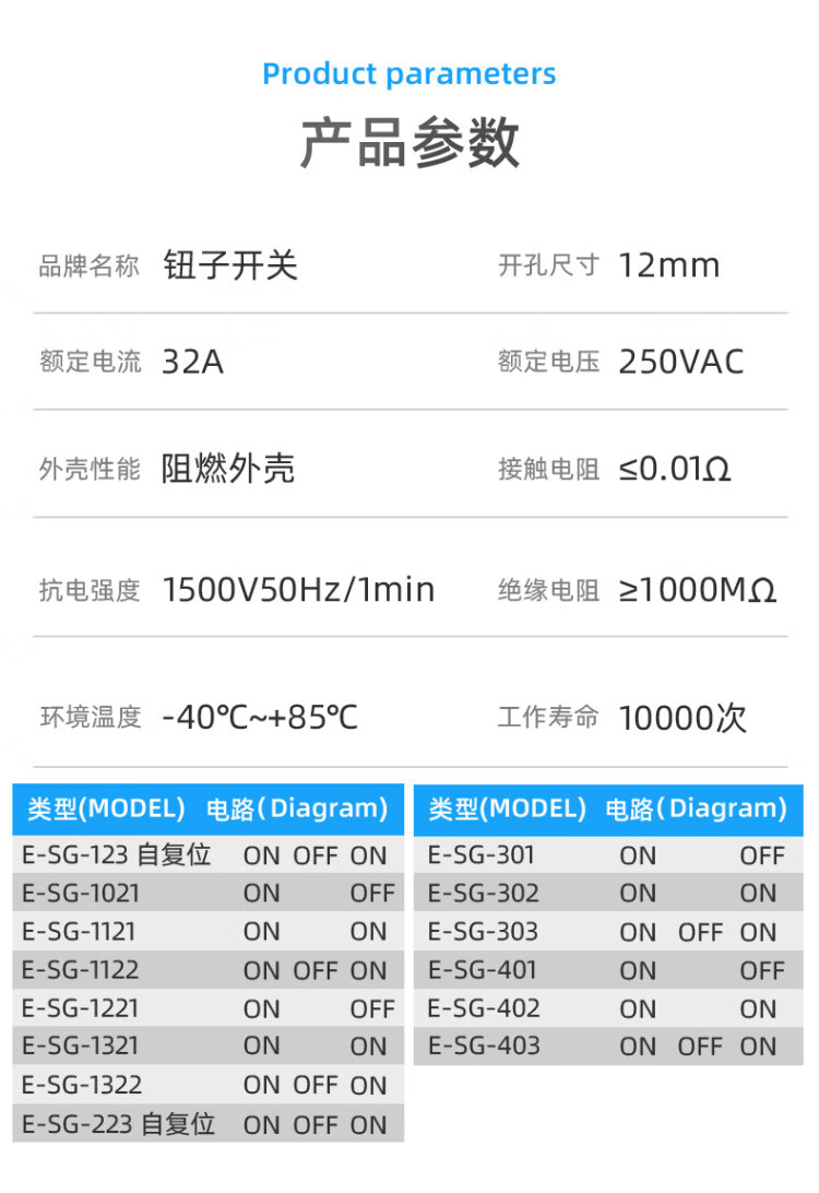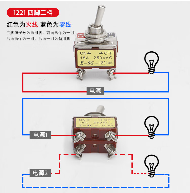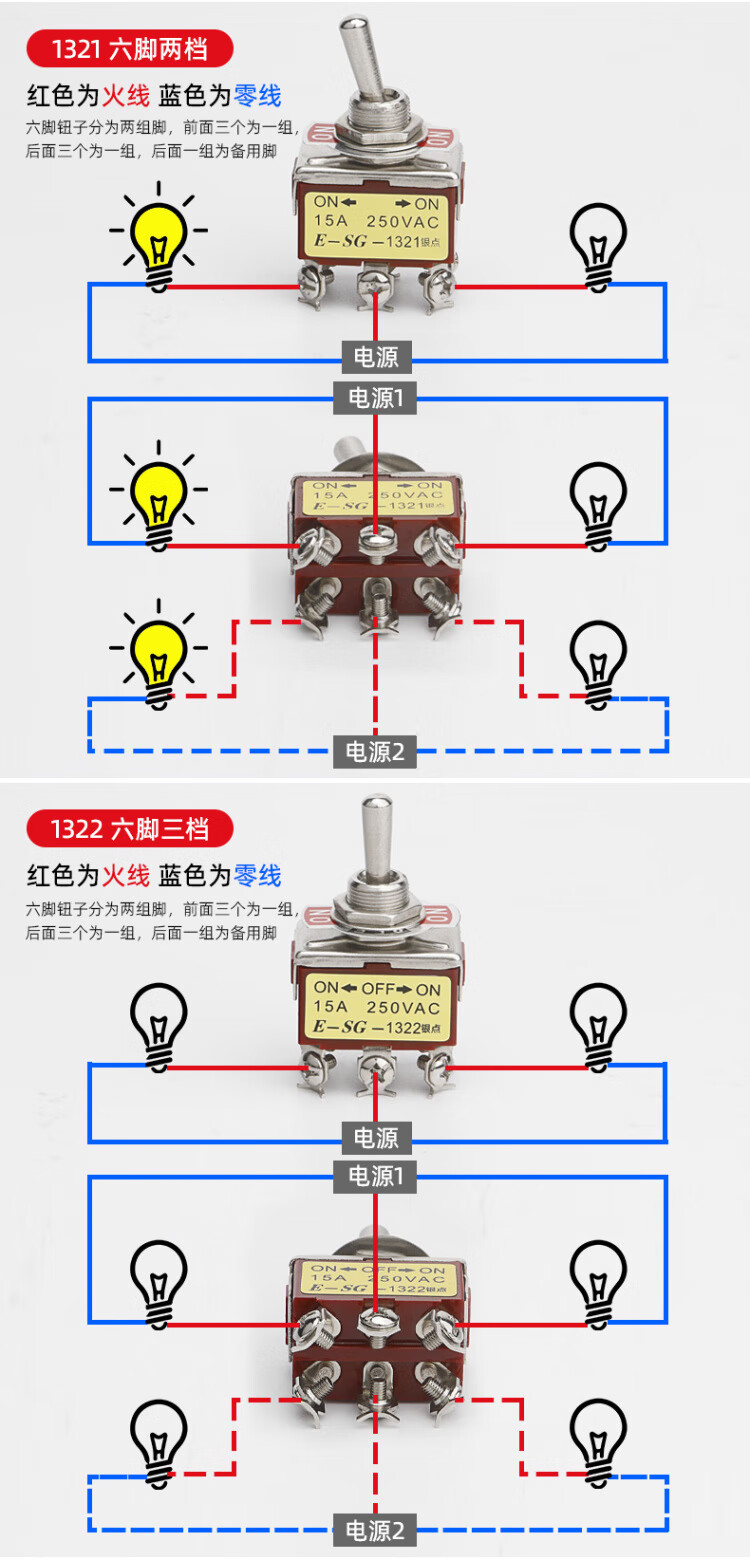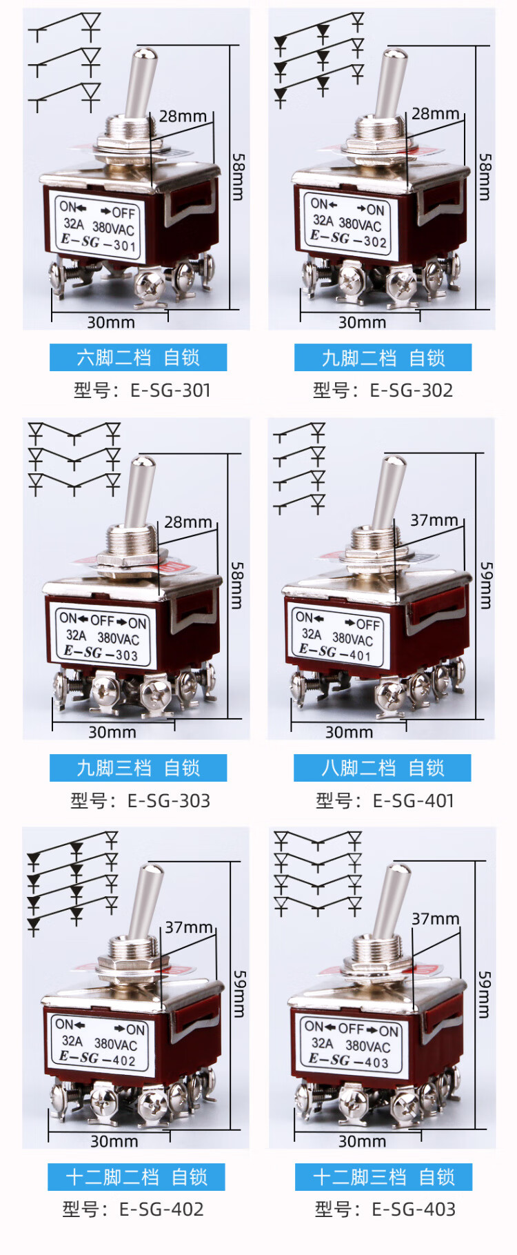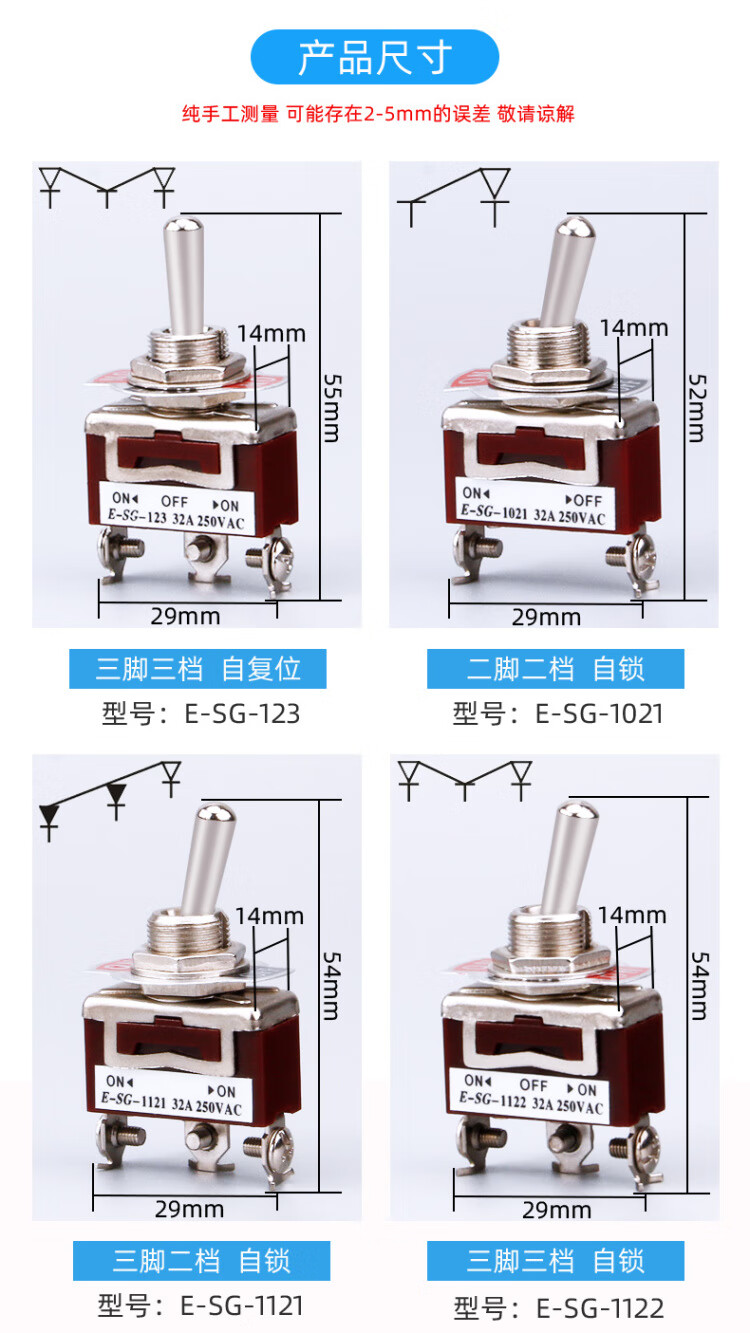 Toggle switch 32A silver point high current rocker switch 1322 two-speed 6-pin 3-speed twist switch toggle switch 1021A (2-pin 2-speed) copper silver point