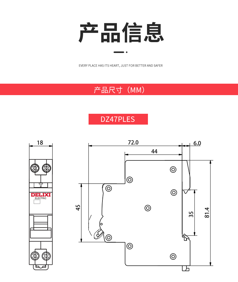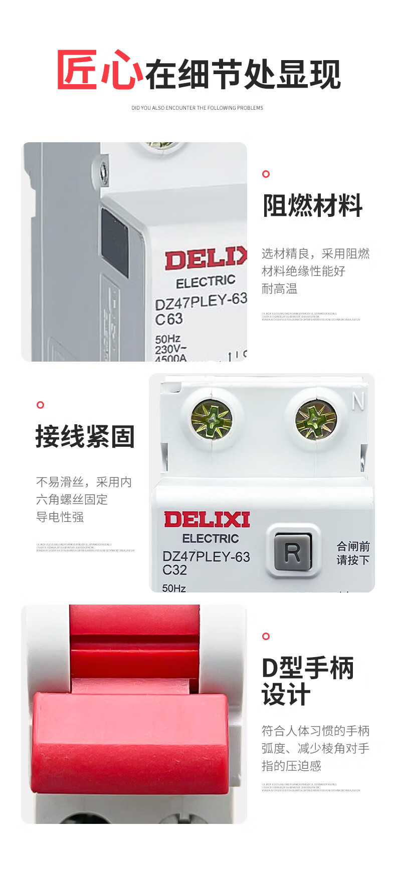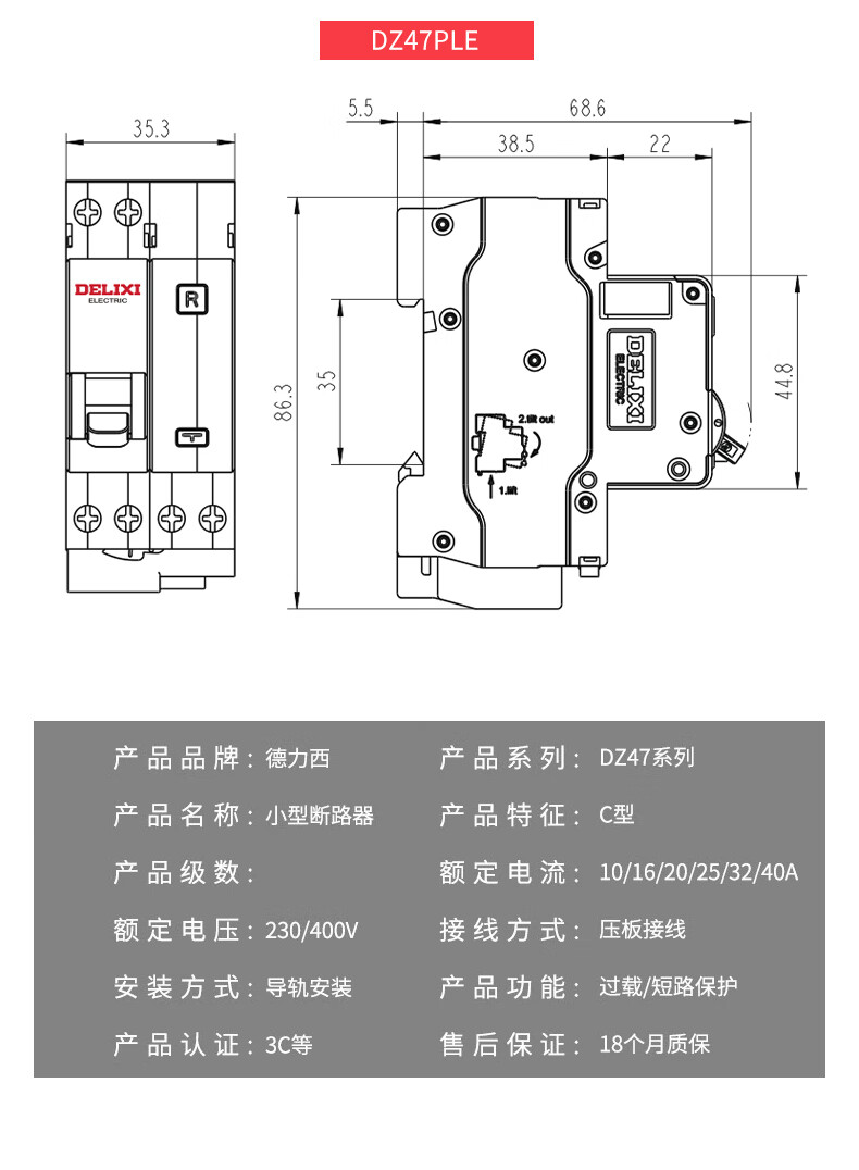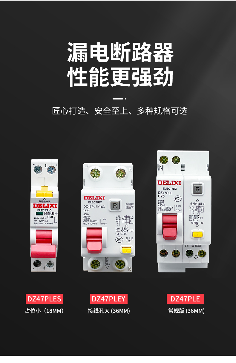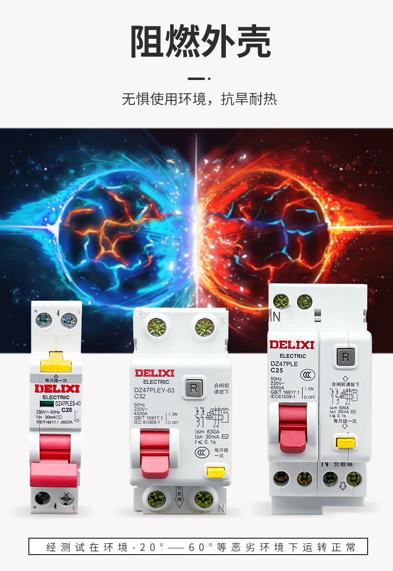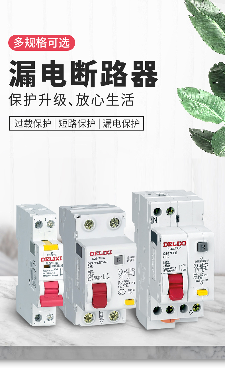 Deli leakage protection DZ47PLES single chip single hole circuit breaker 1p air switch with leakage protection 63A 1P